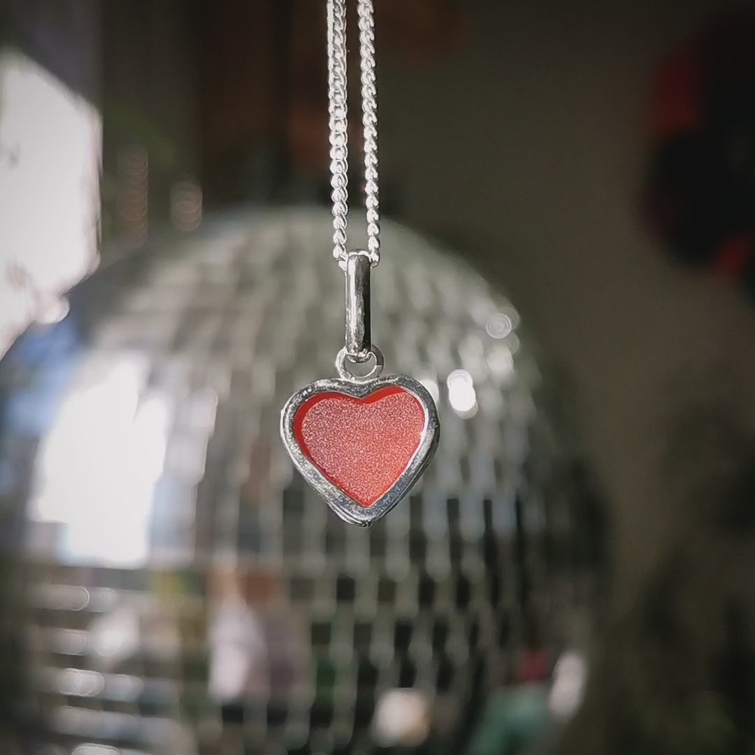 Scottish red sea glass heart & sterling silver pendant.