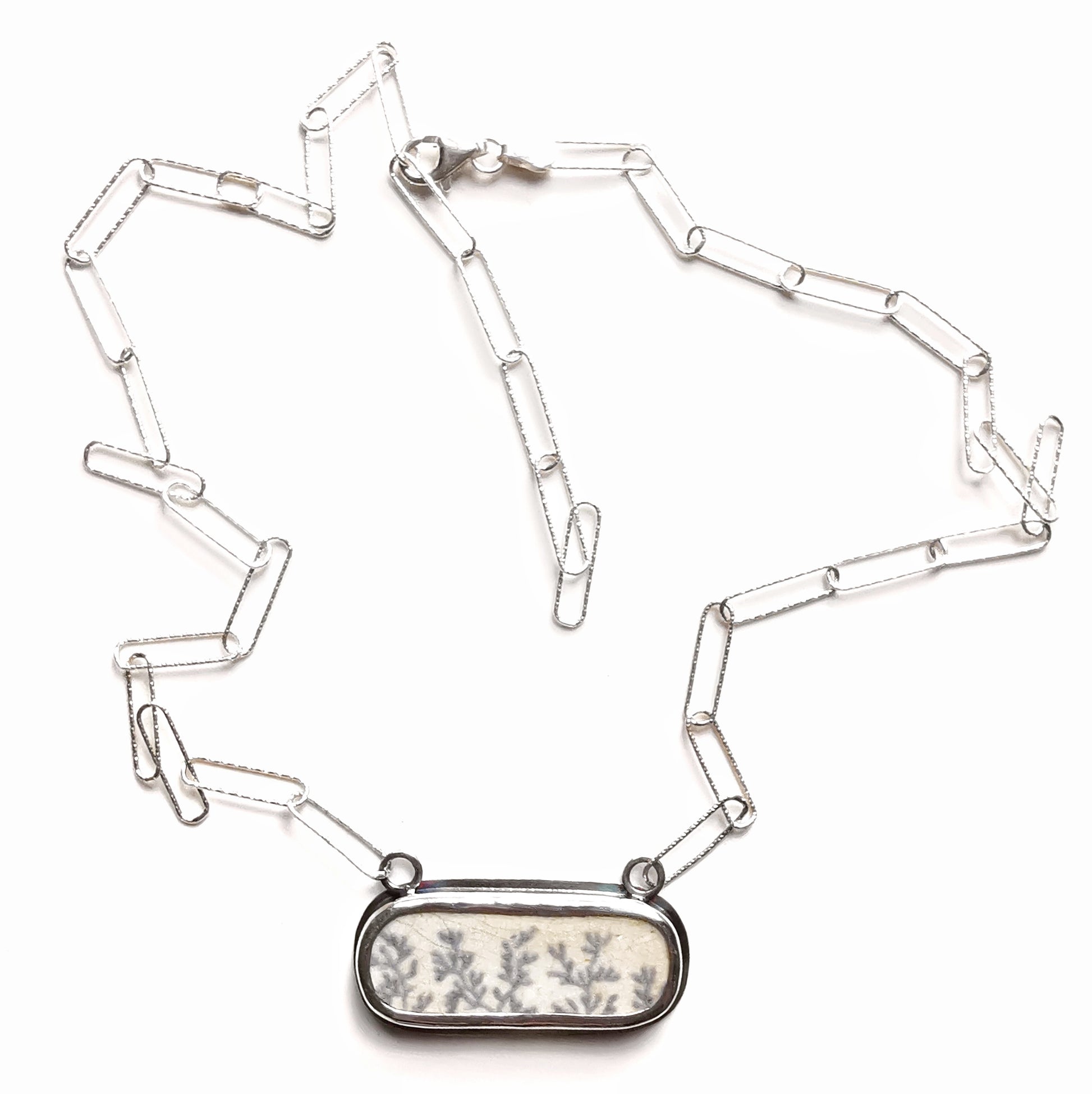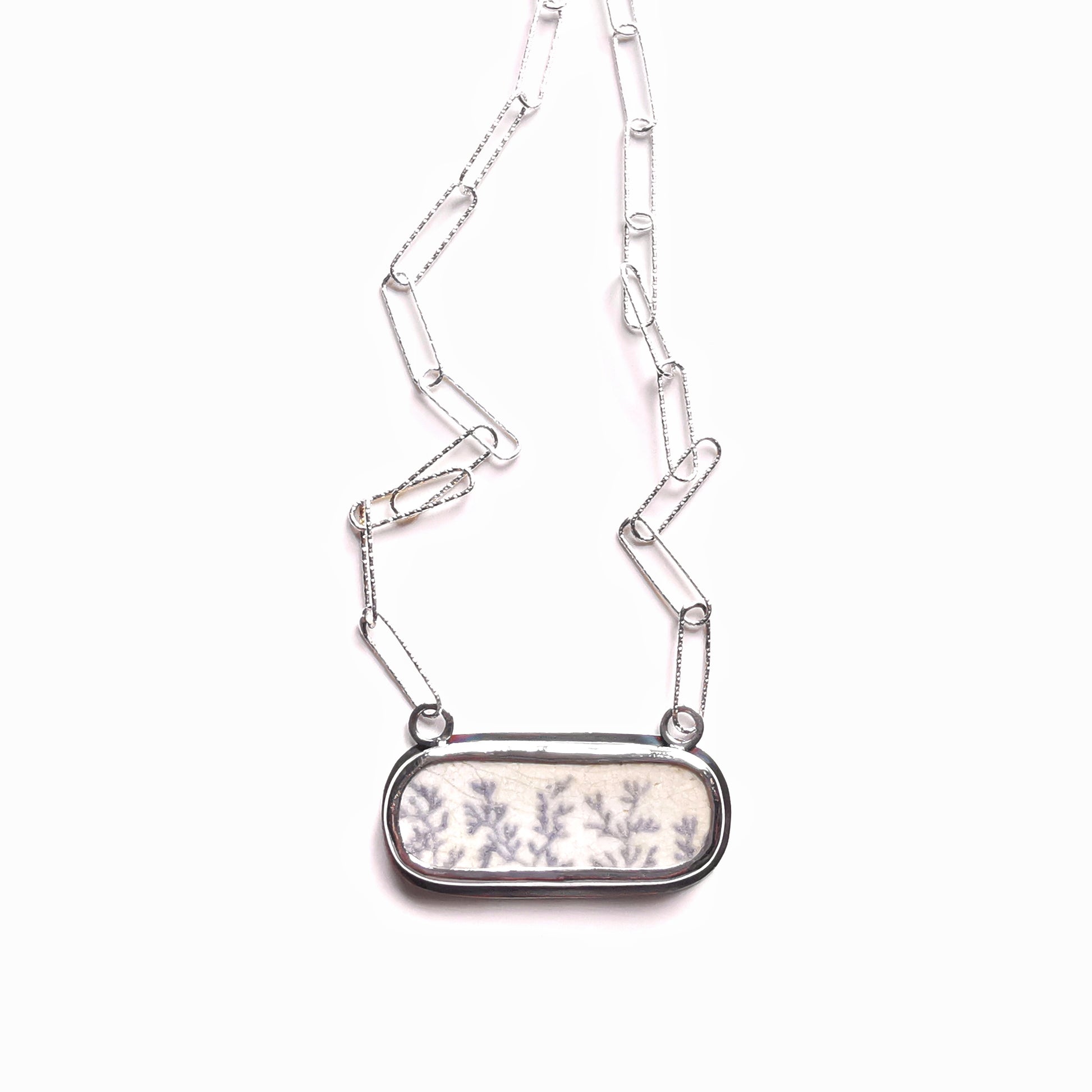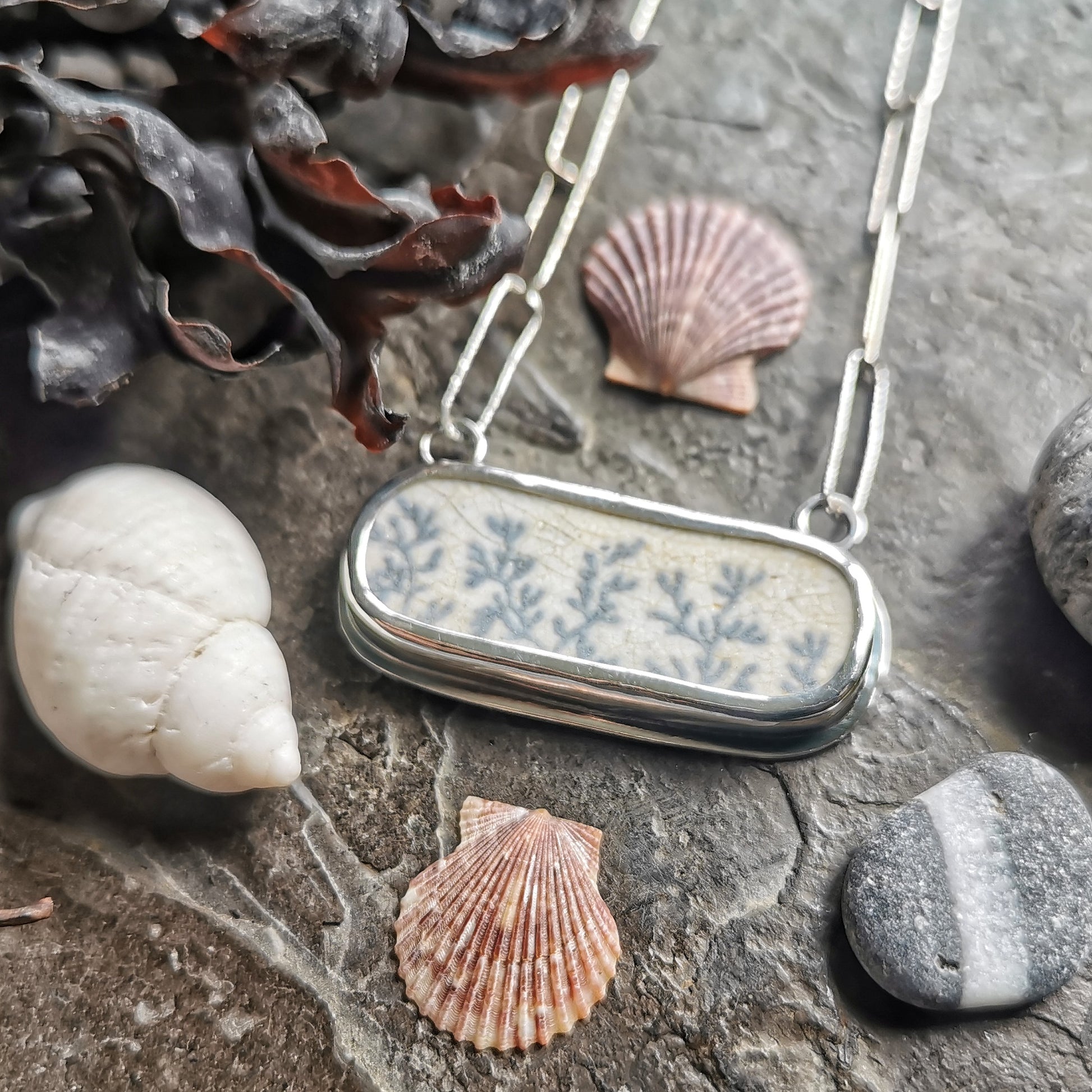 Scottish seaweed pattern sea pottery & sterling silver pendant.