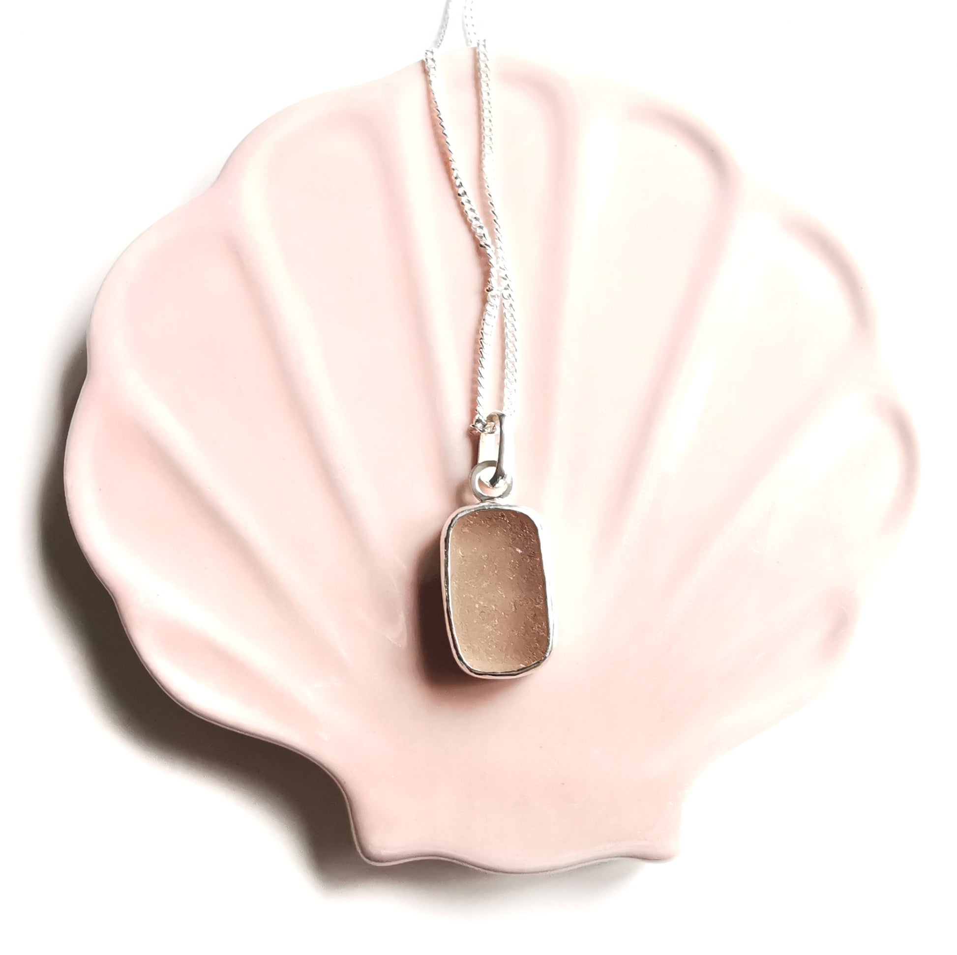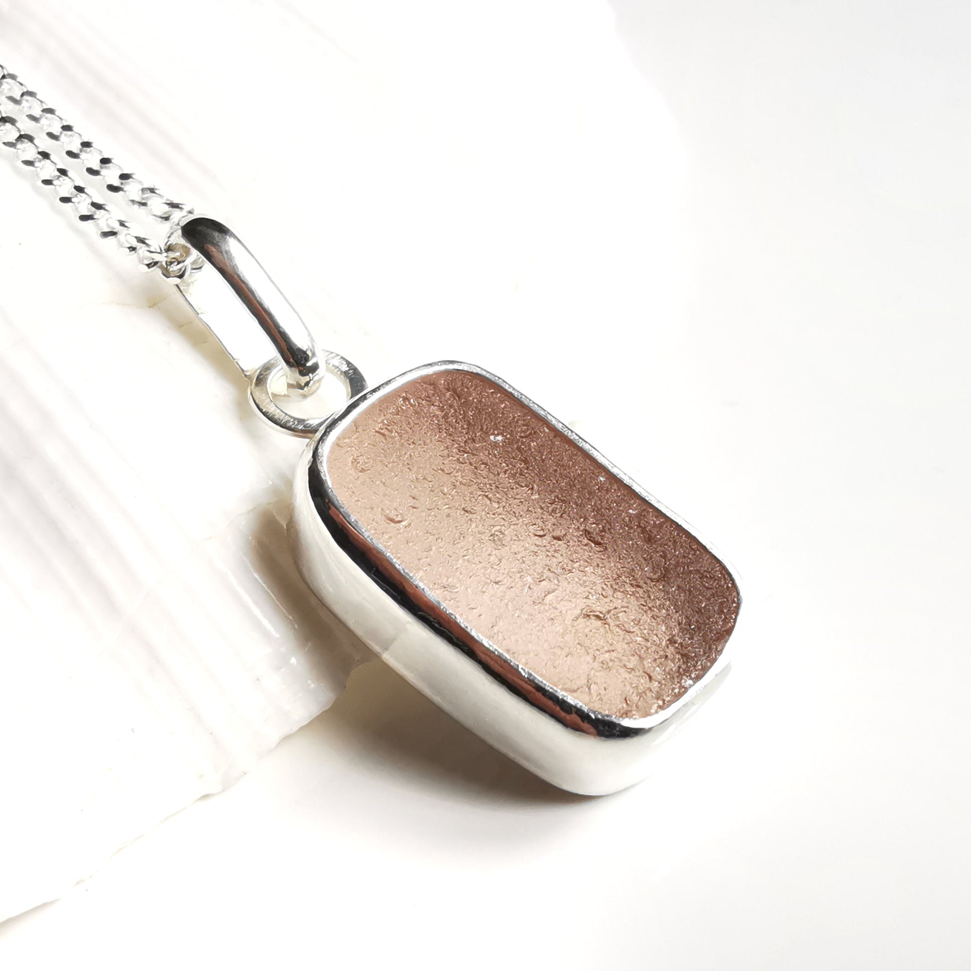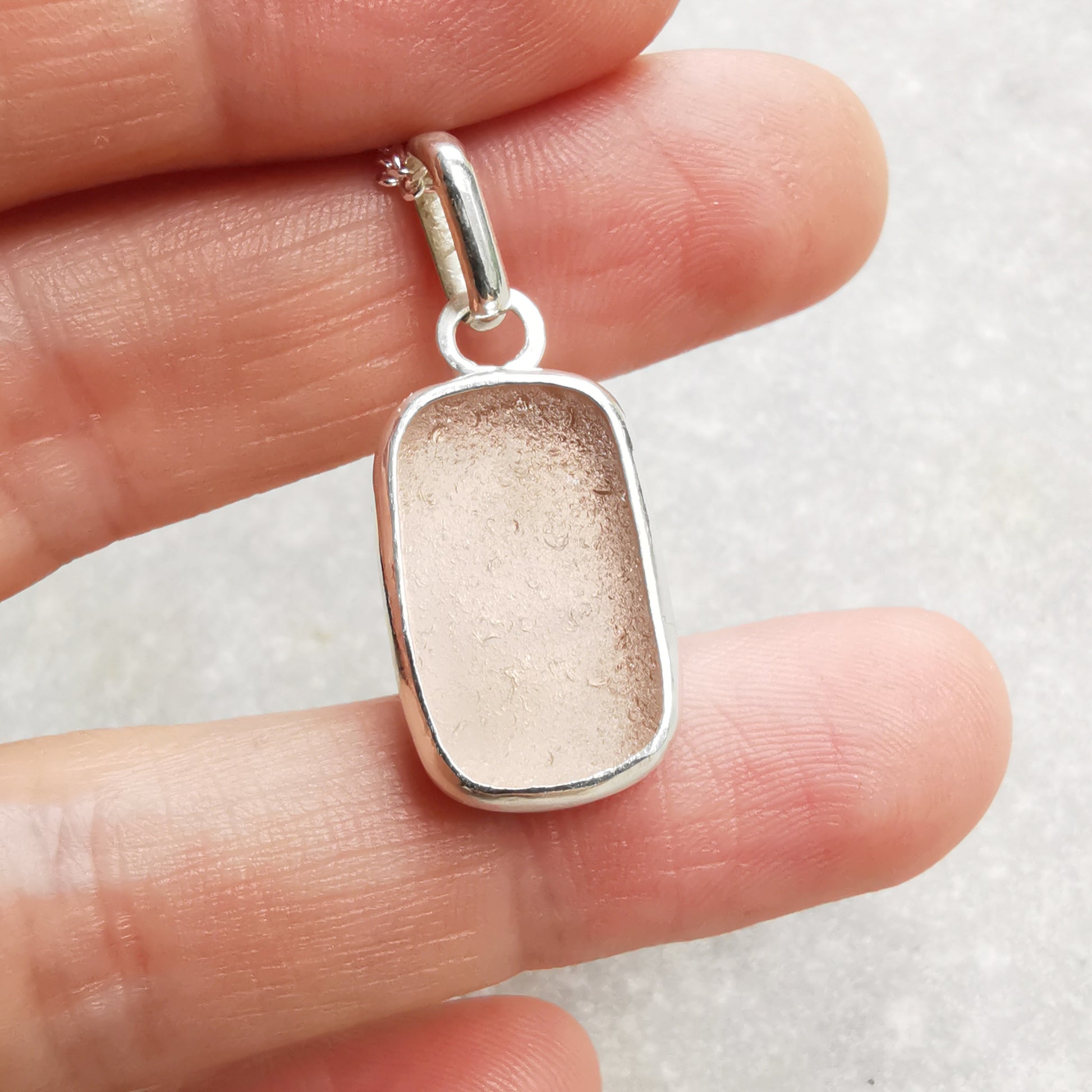 Scottish soft pink sea glass & sterling silver pendant.