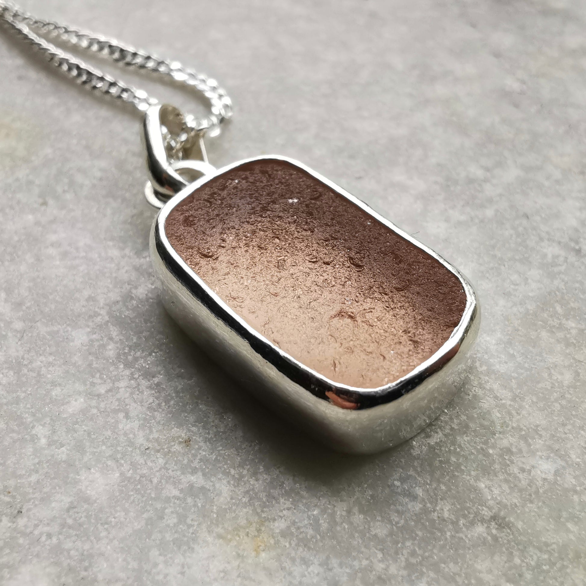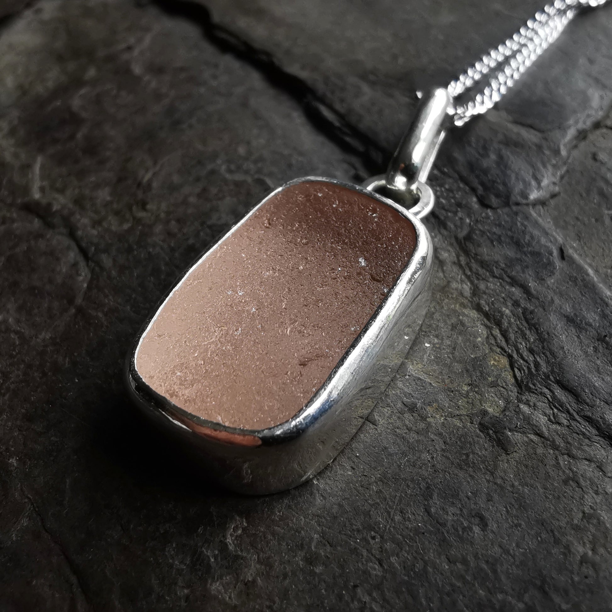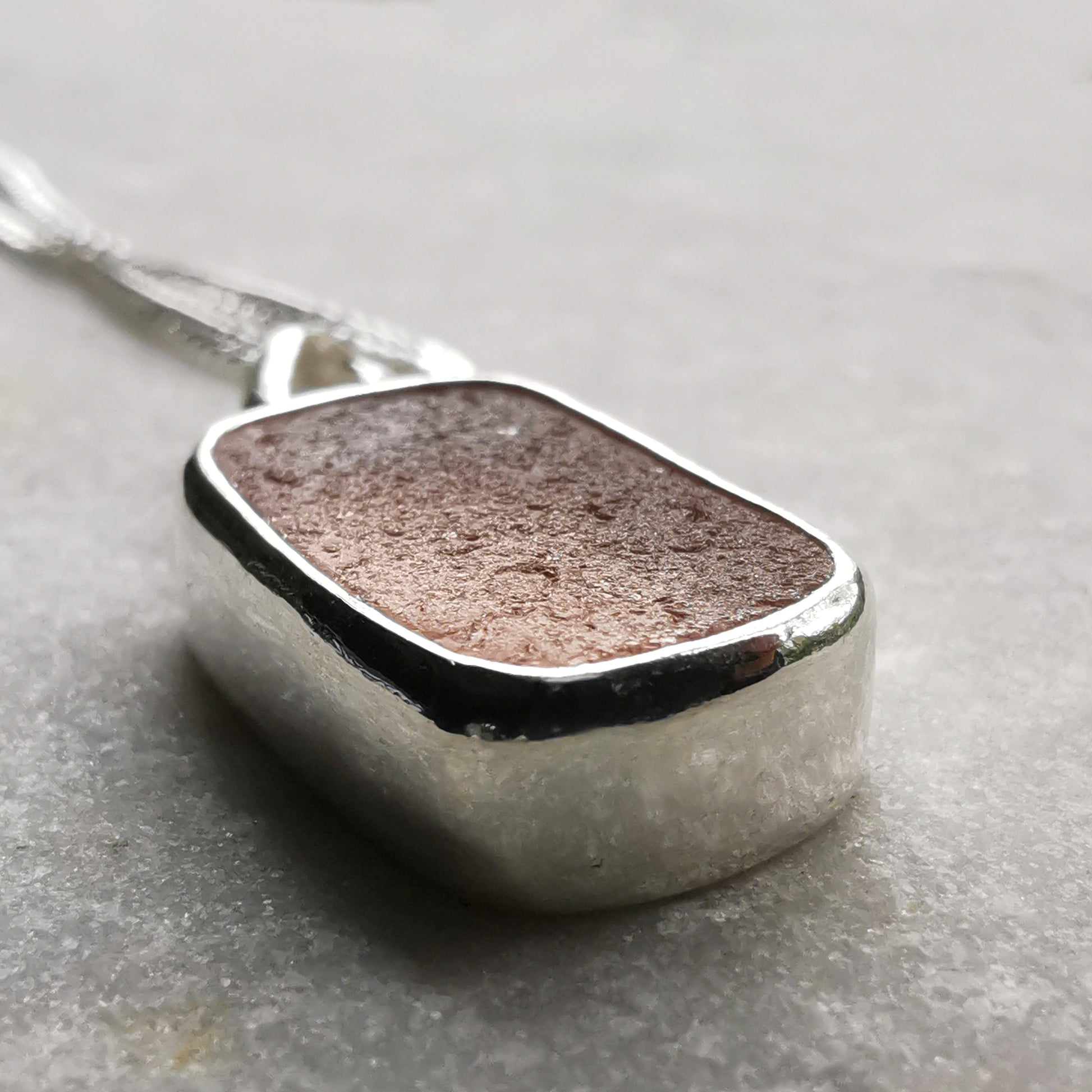 Scottish soft pink sea glass & sterling silver pendant.
