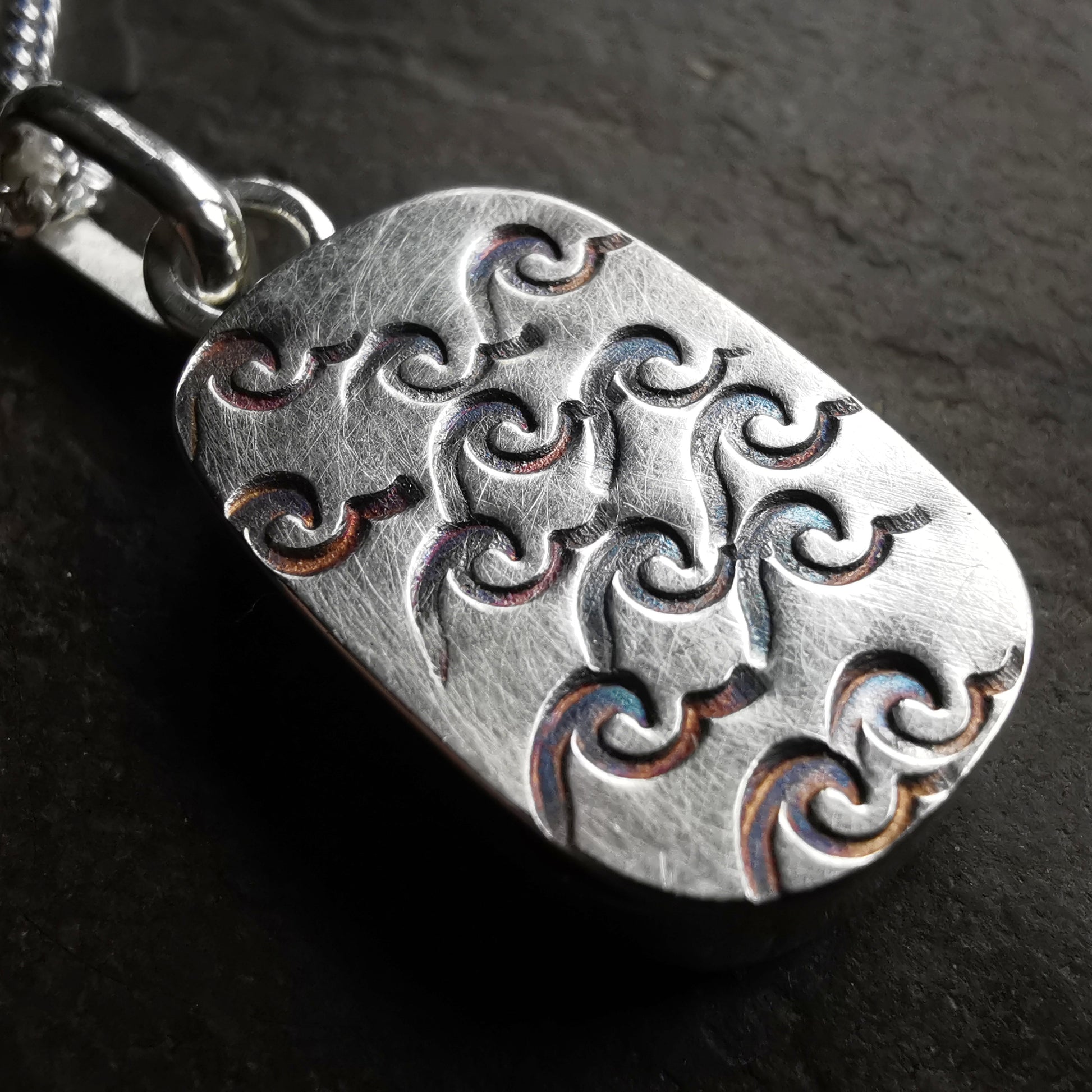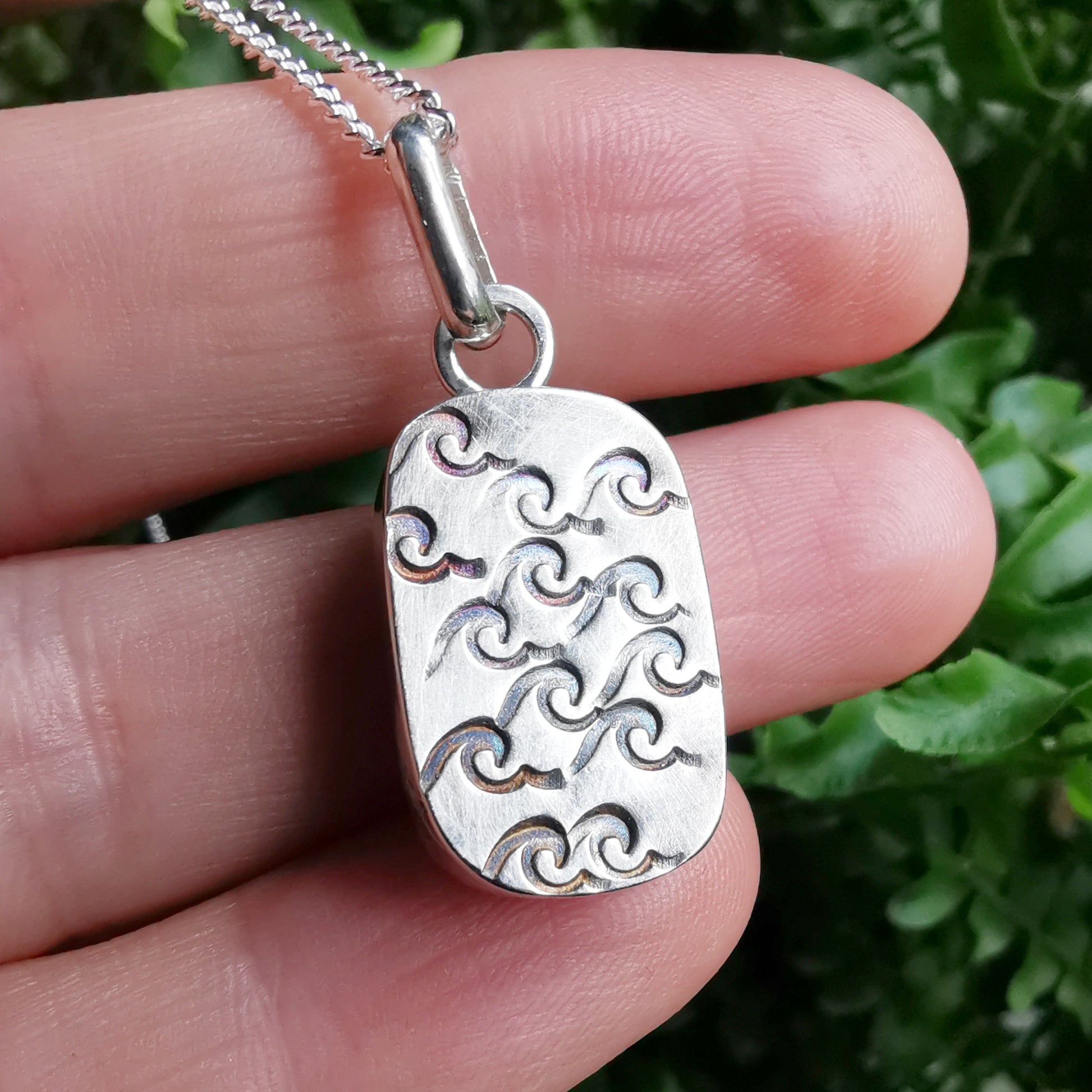Bezel is made of fine silver, chain is sterling silver.
