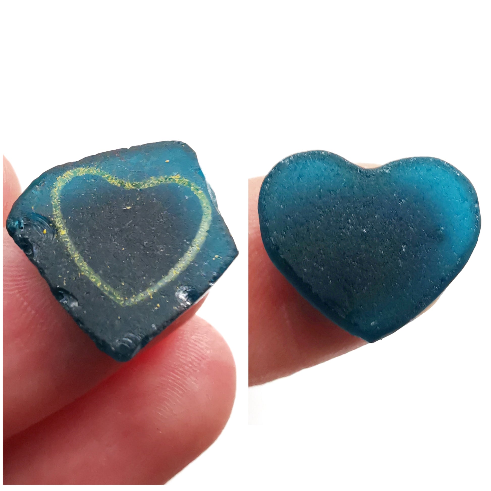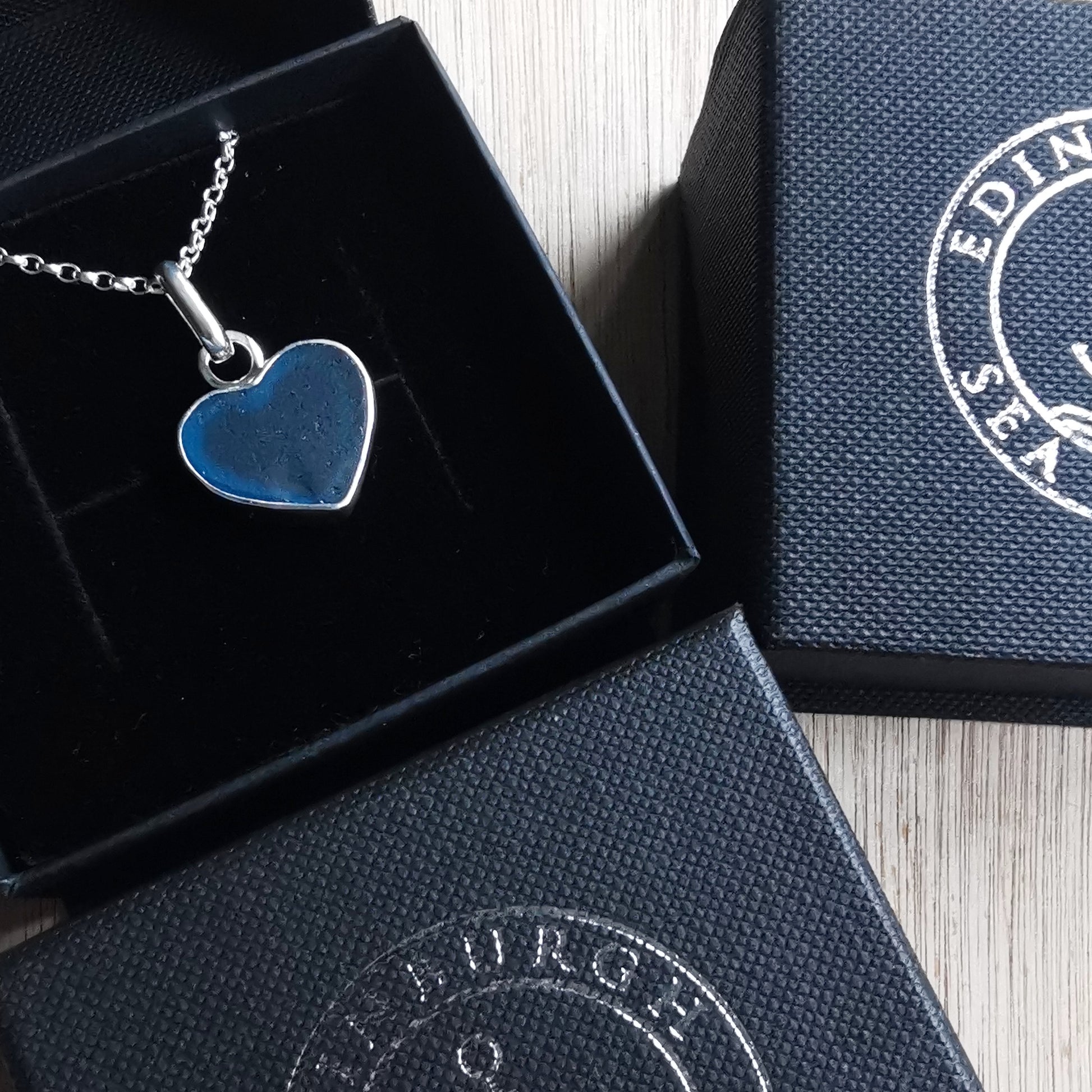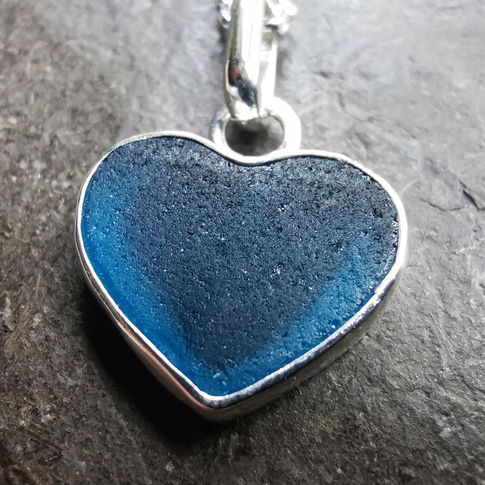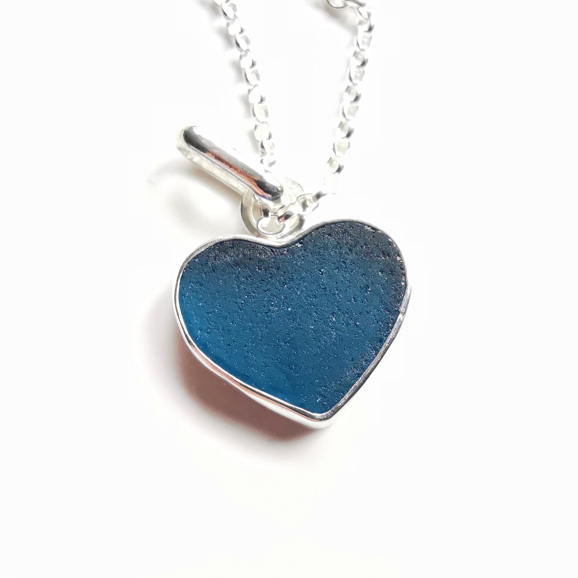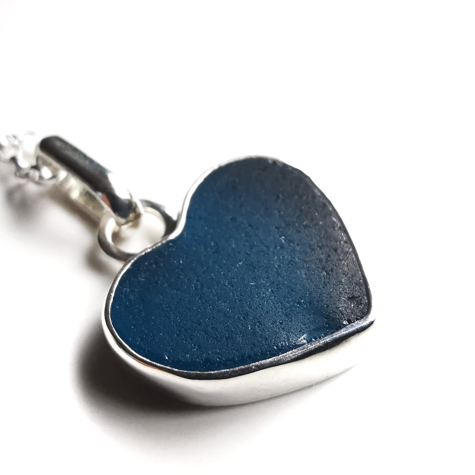 One of a kind pendant composed with Scottish teal blue sea glass heart. The sea glass is set in backless silver bezel, the chain is sterling silver. I've shaped this piece of sea glass myself.