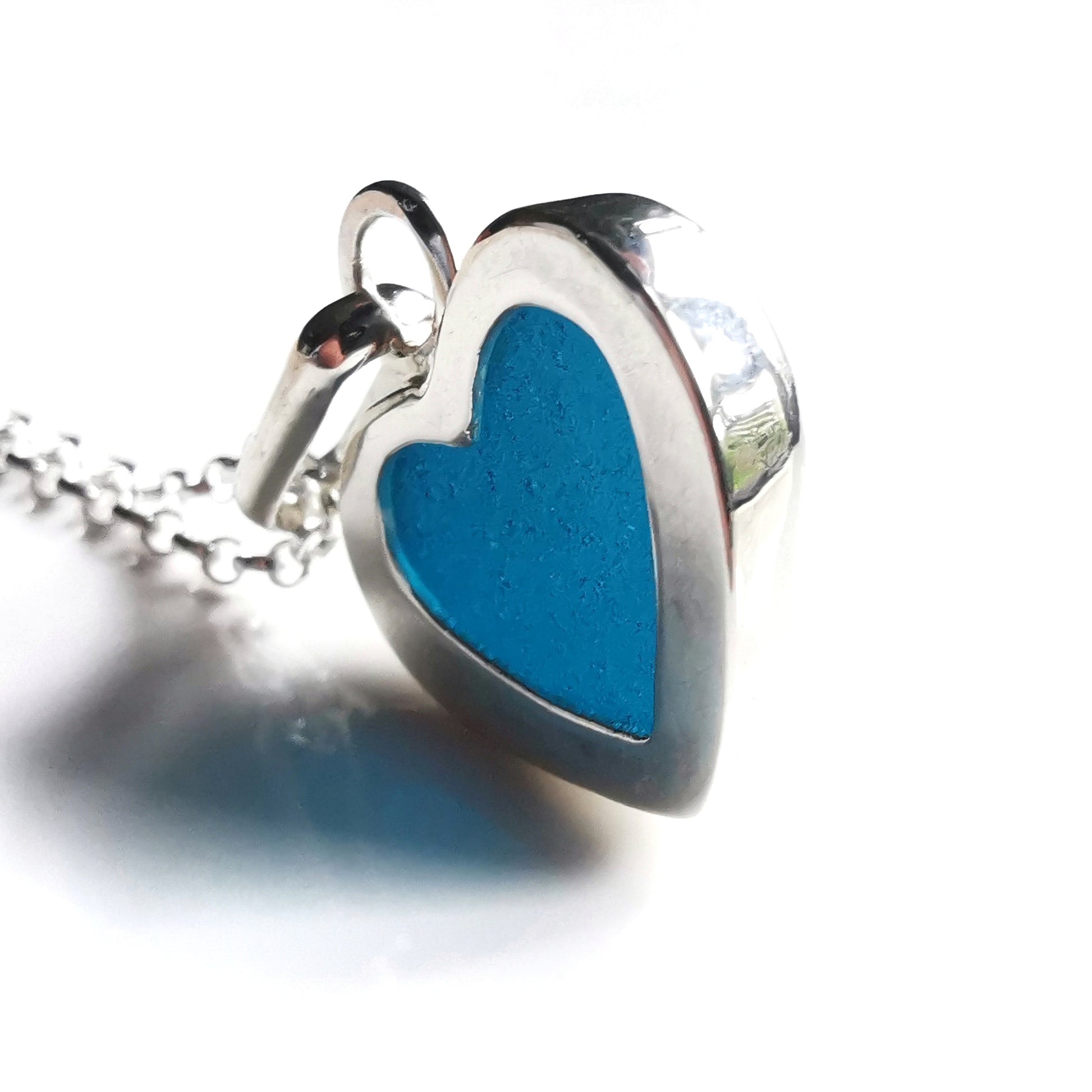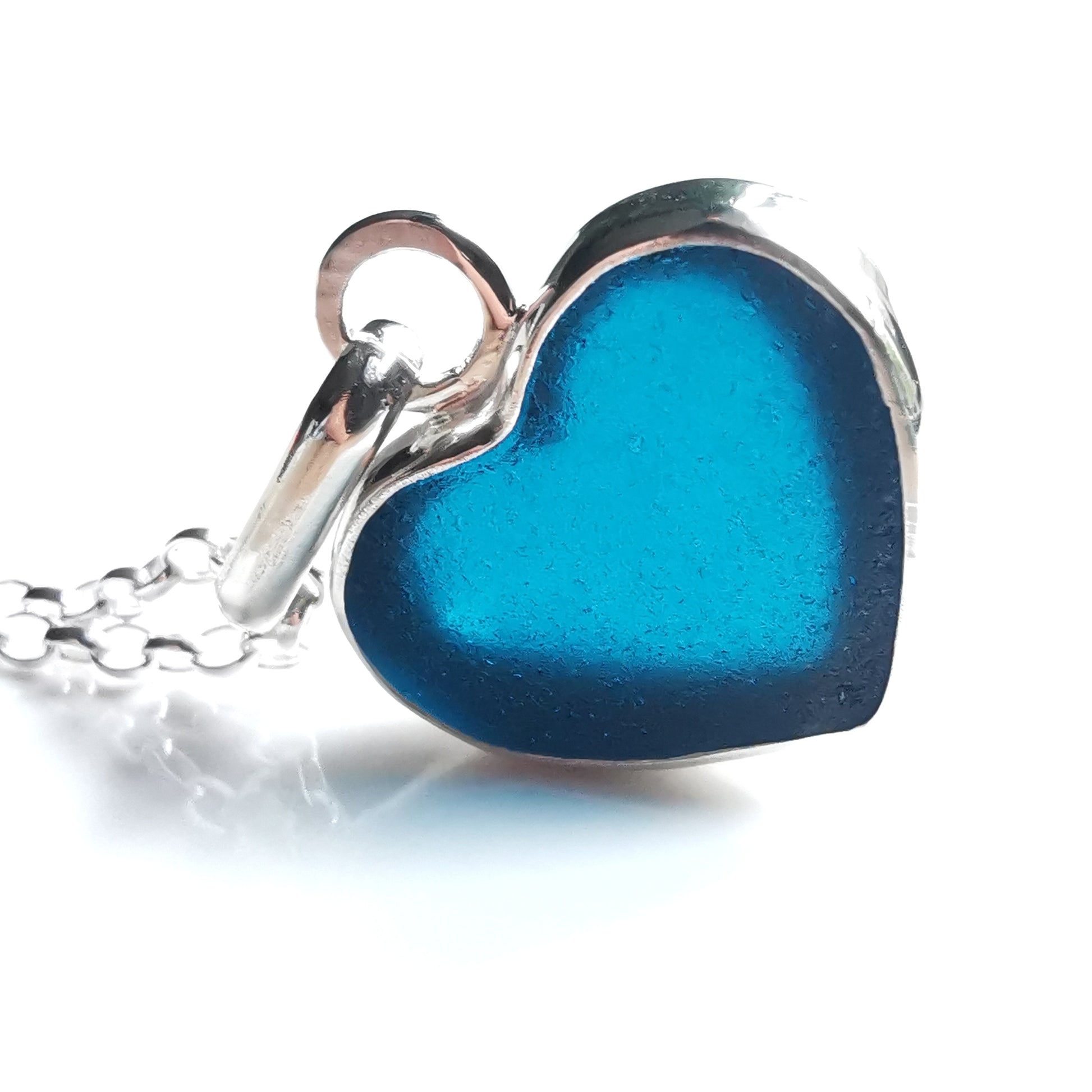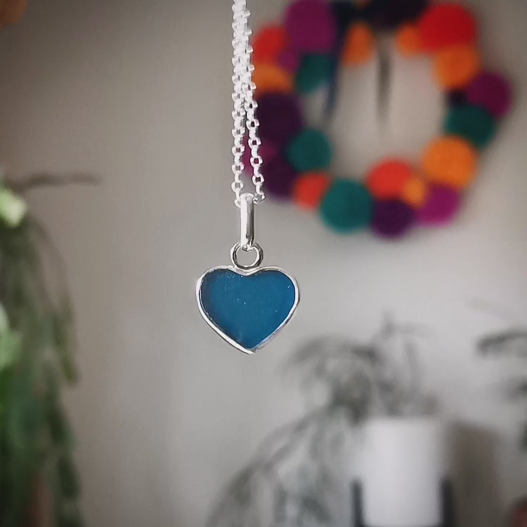 Reserved. Scottish teal blue sea glass heart & sterling silver pendant.