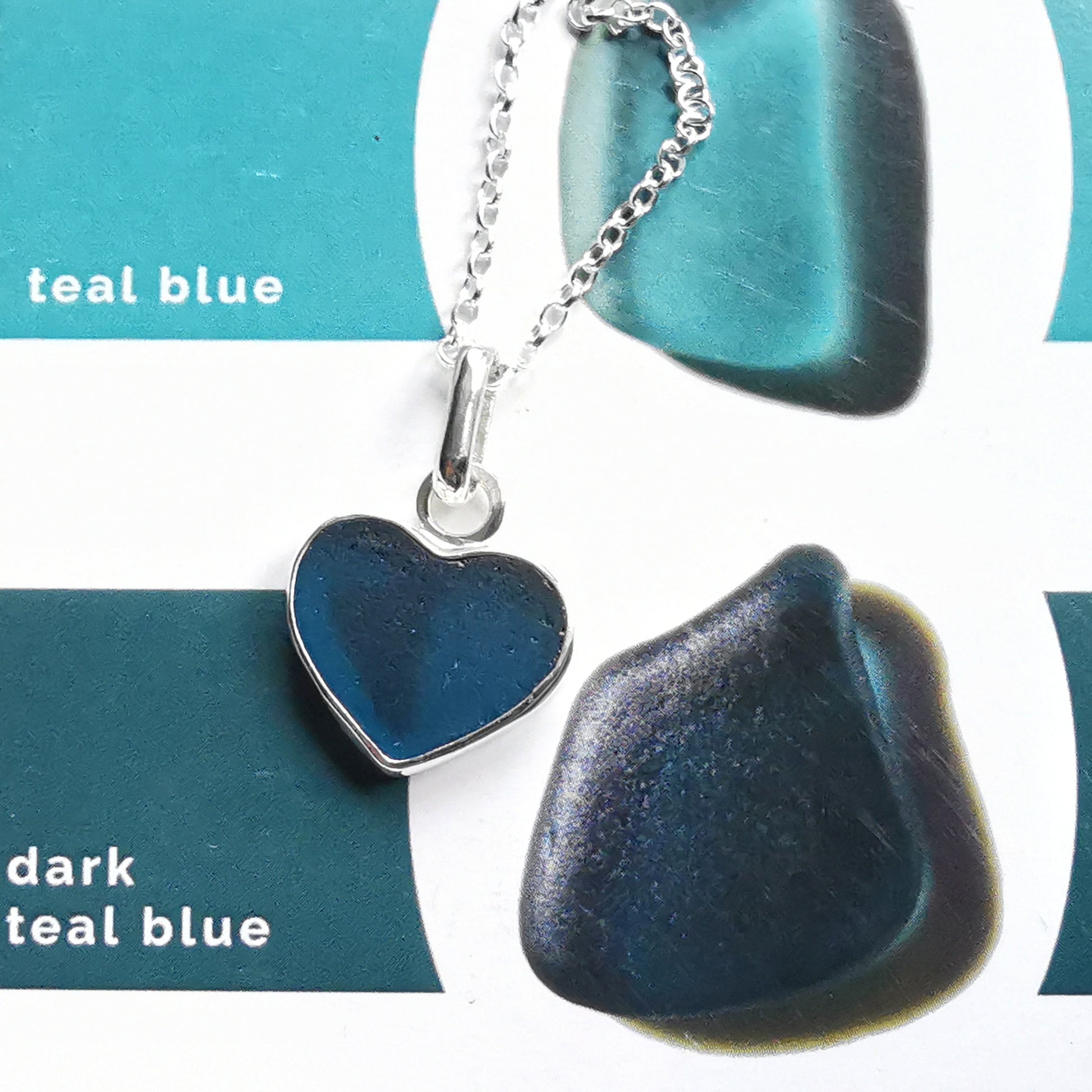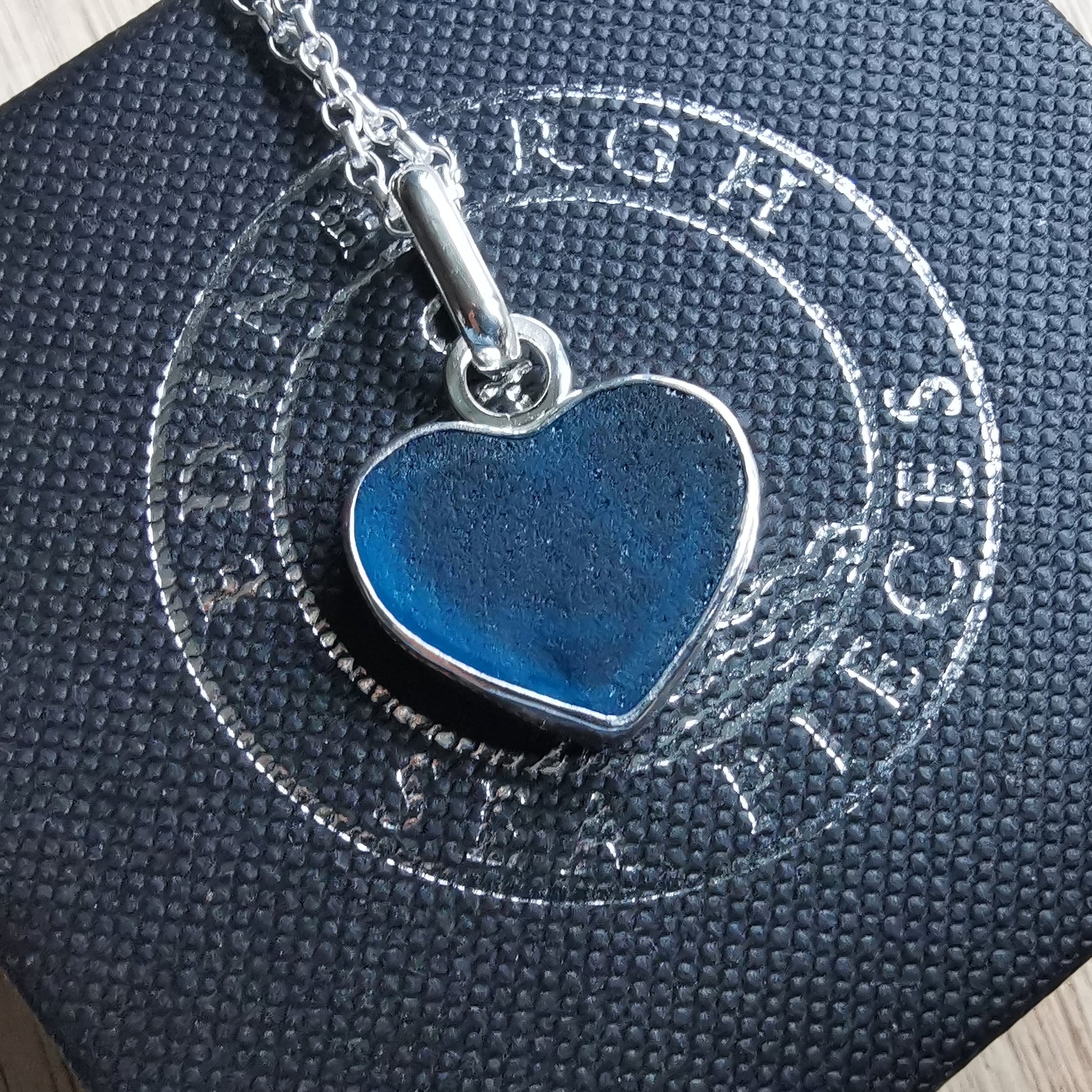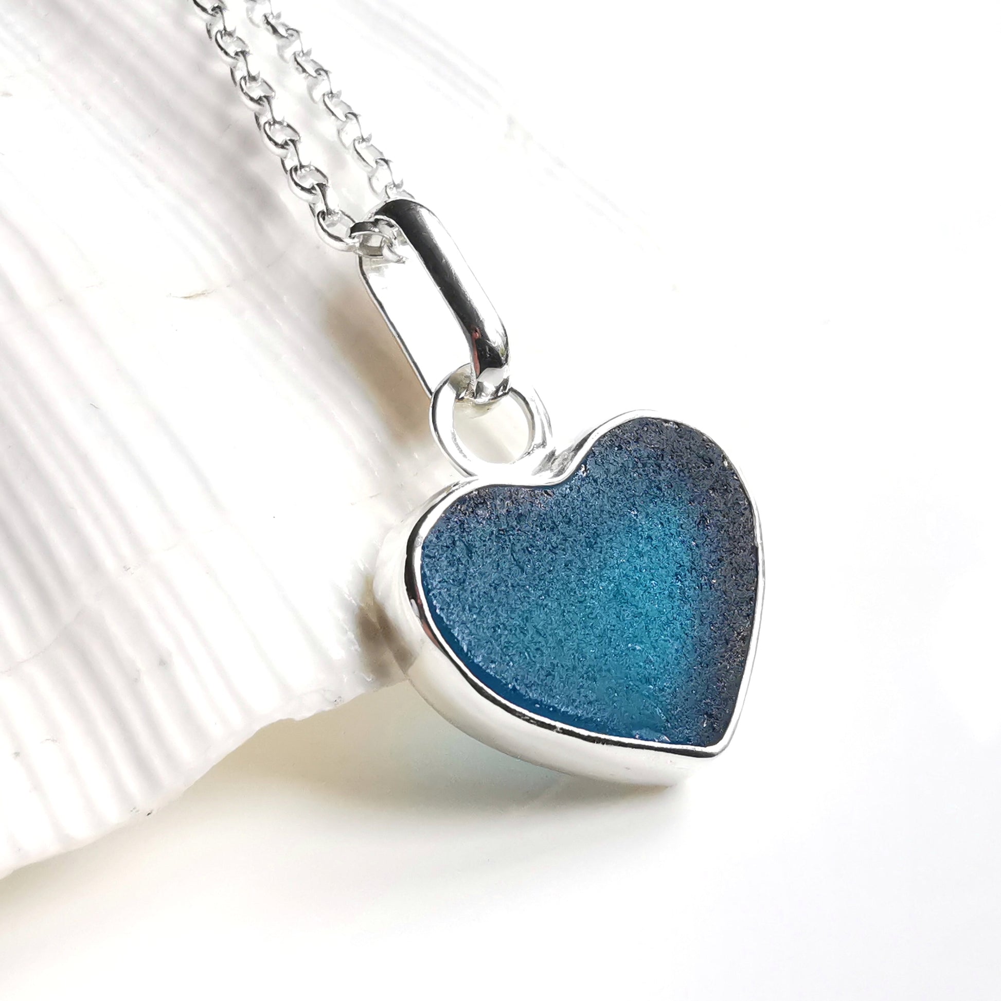 Reserved. Scottish teal blue sea glass heart & sterling silver pendant.