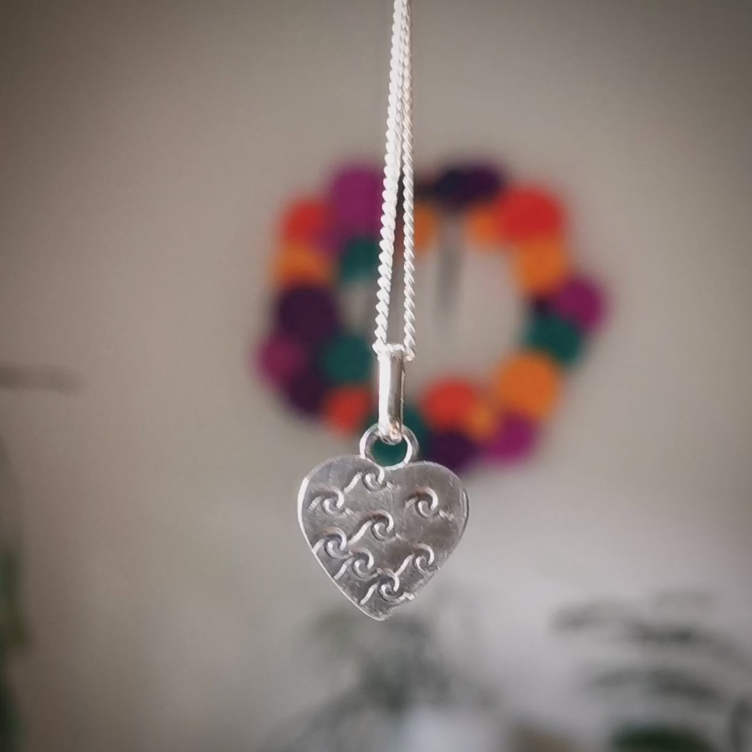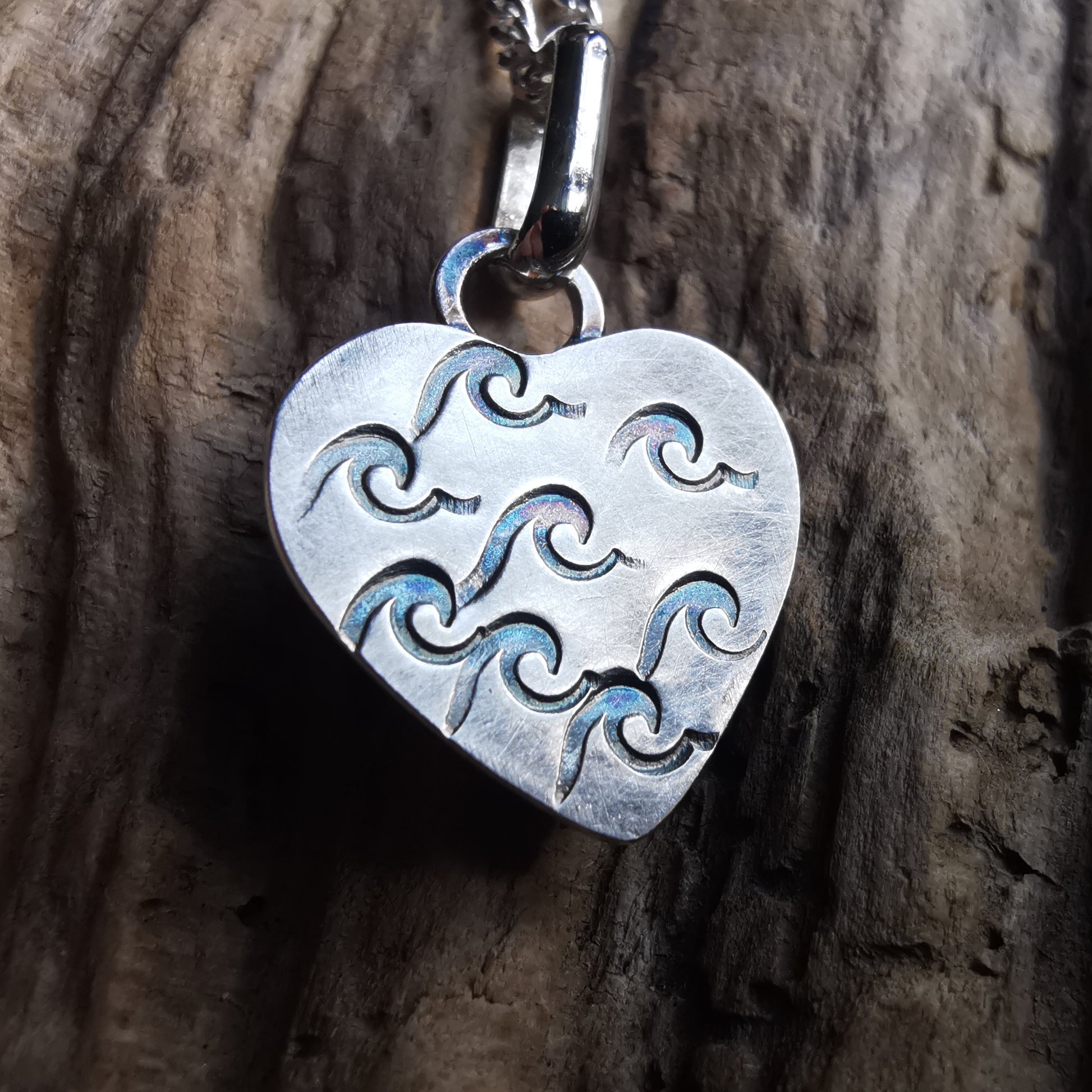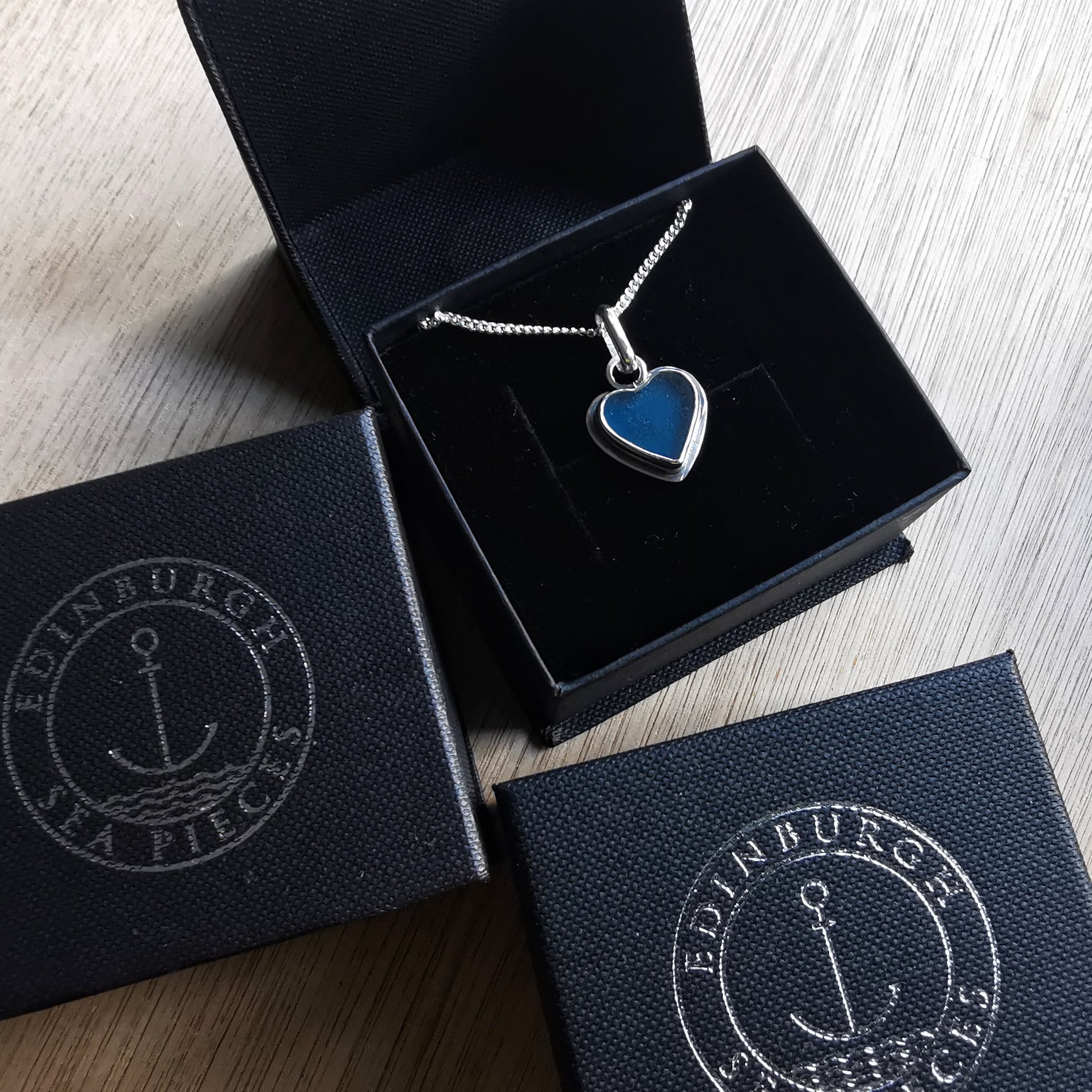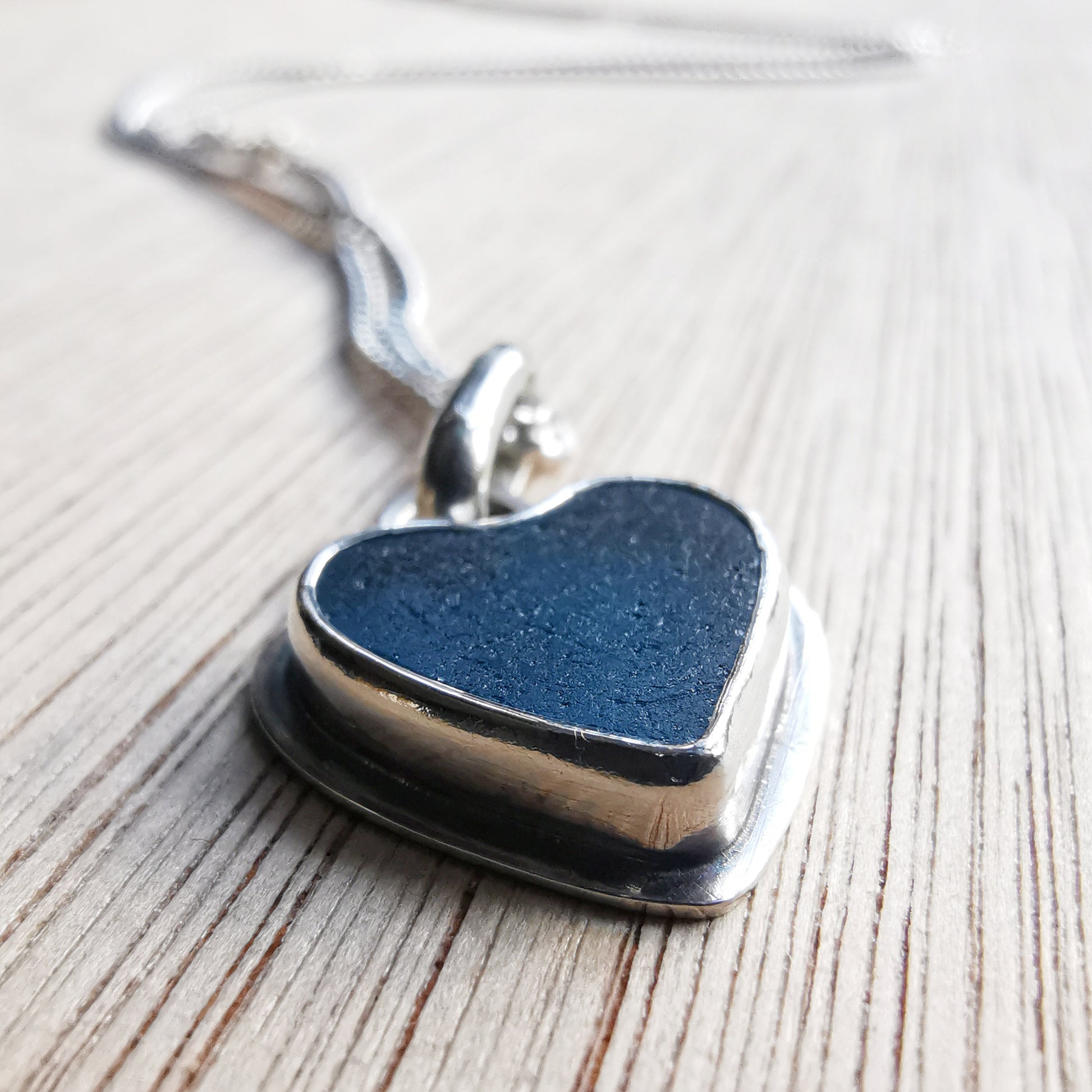 Scottish teal blue sea glass heart & sterling silver pendant.