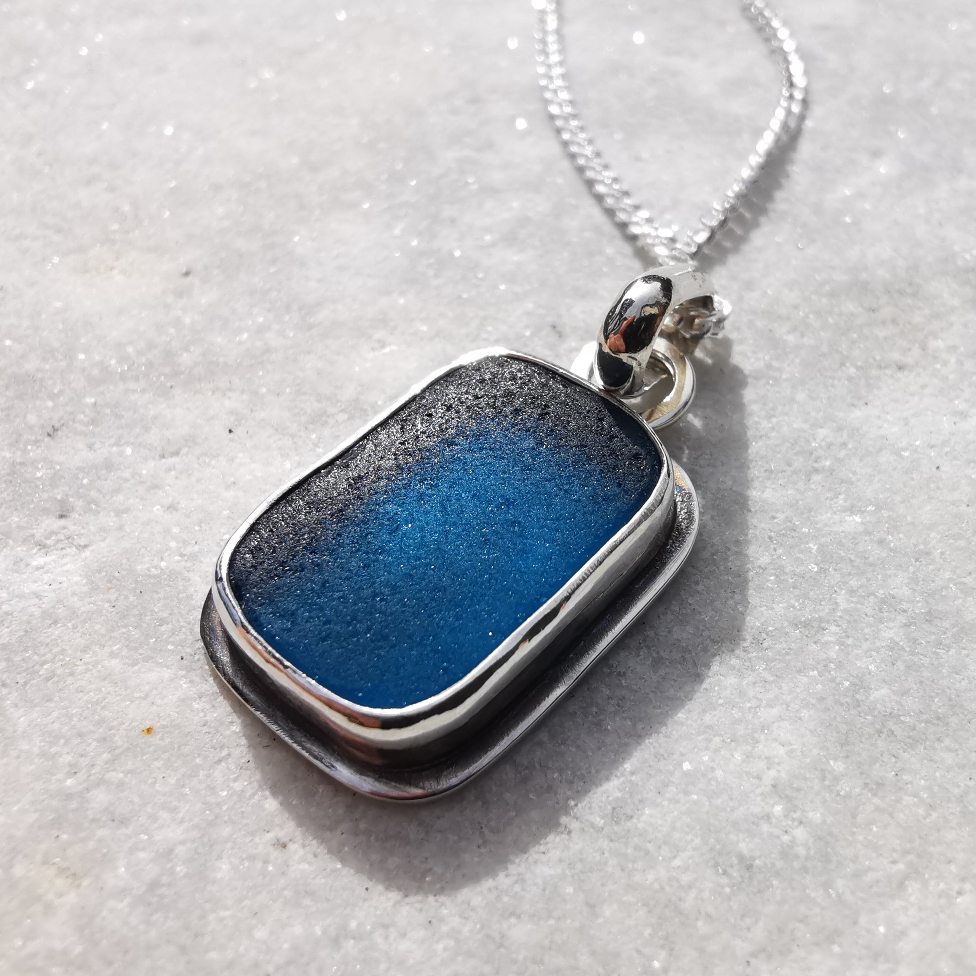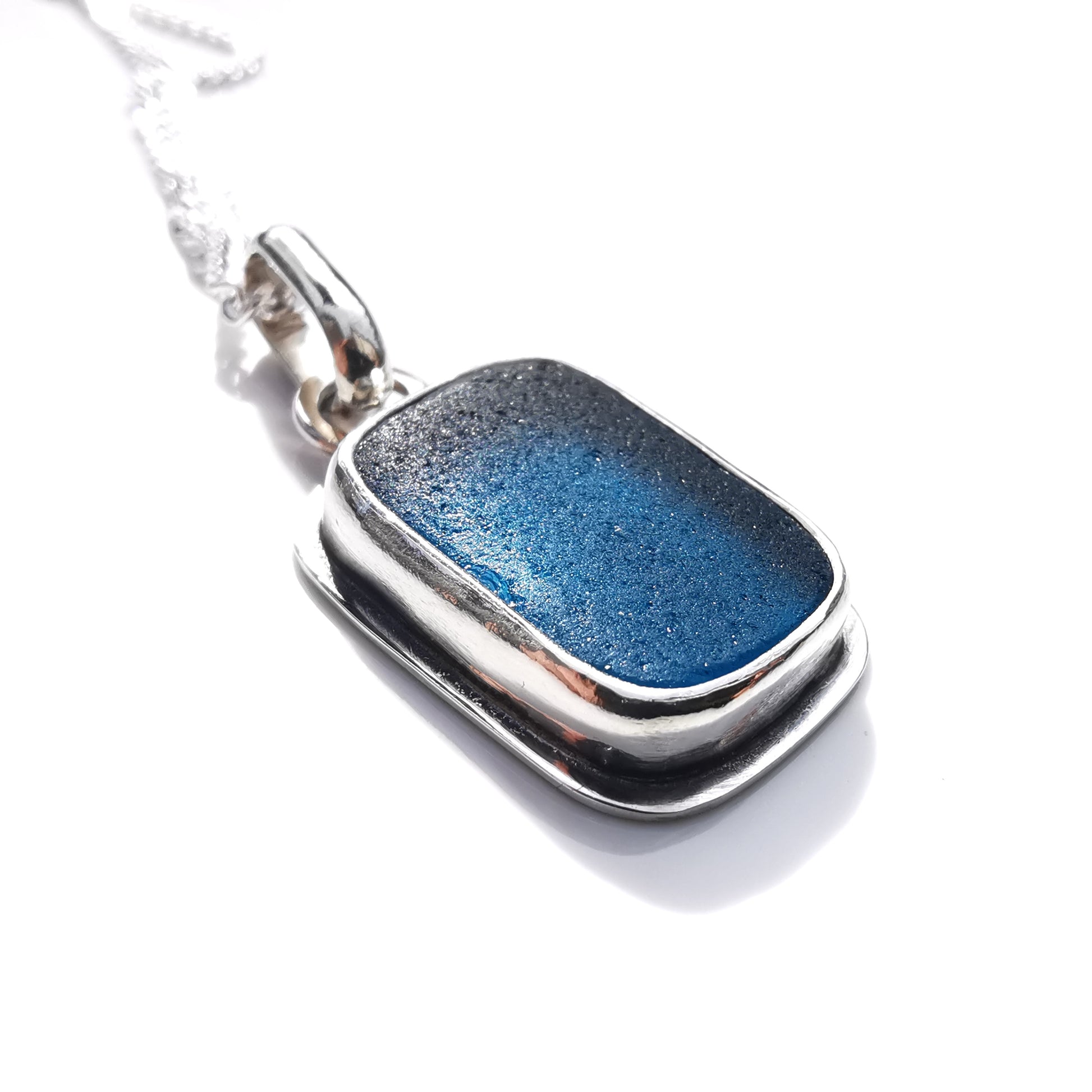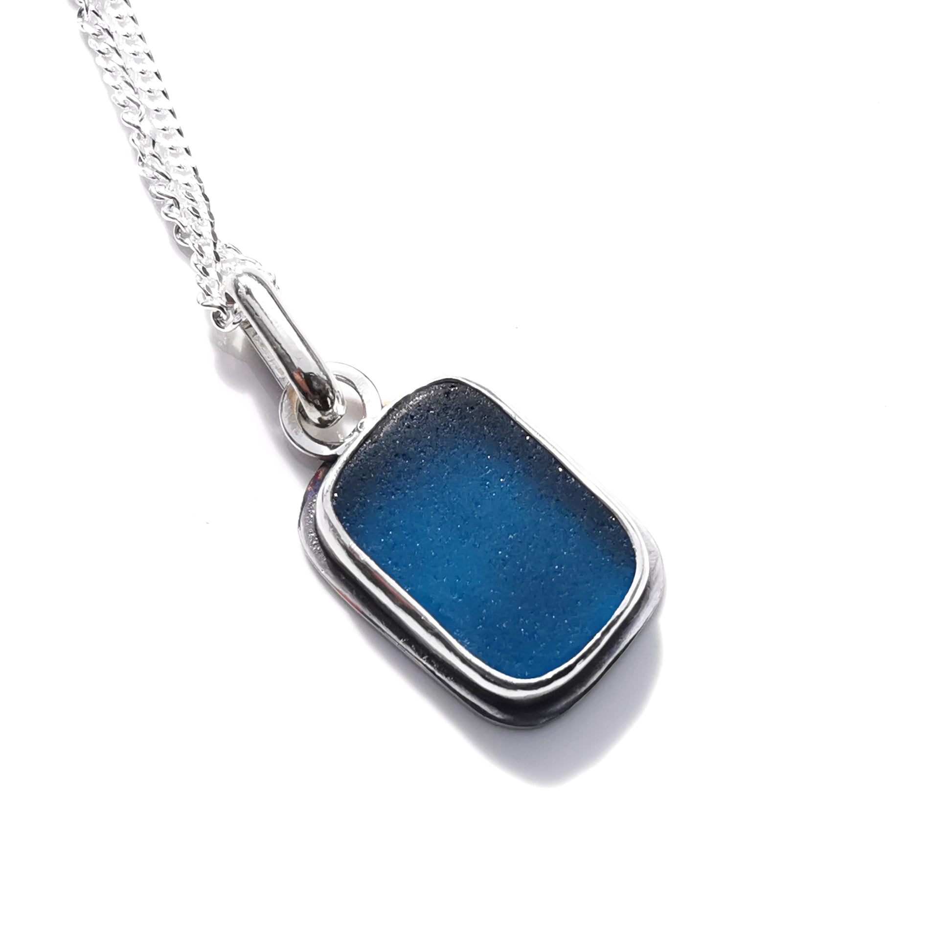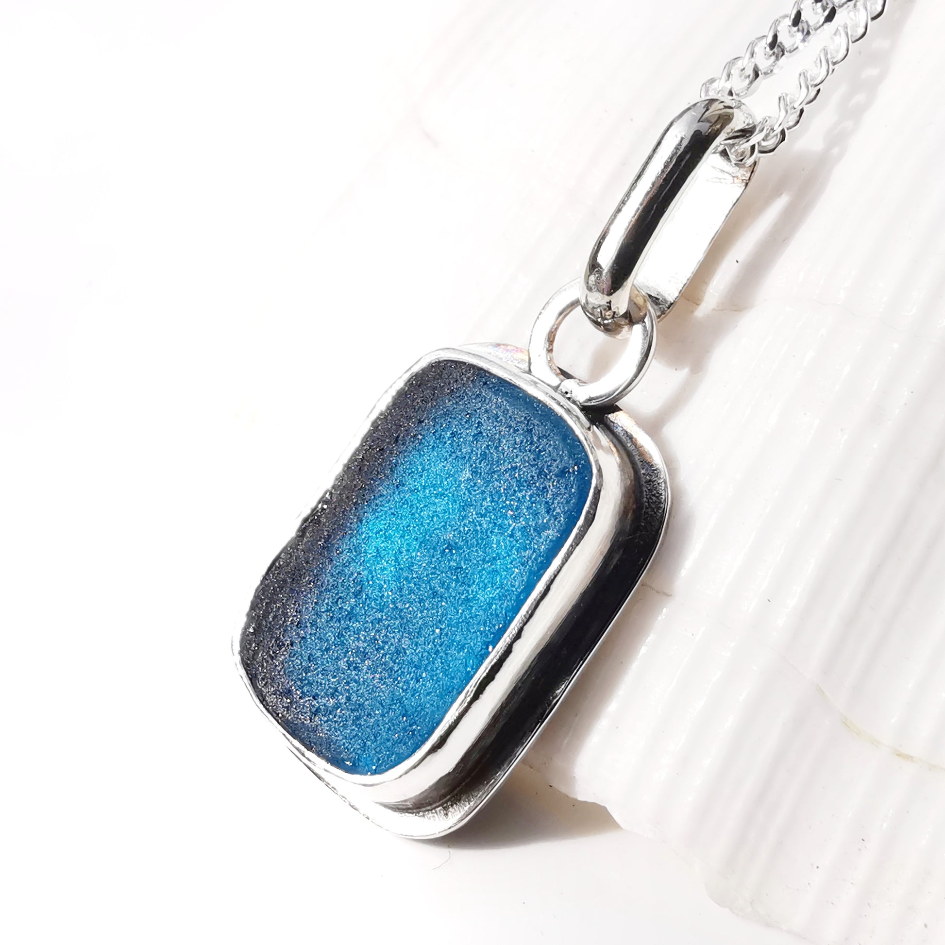 Scottish teal blue 'vitamin sea' sea glass & sterling silver pendant.