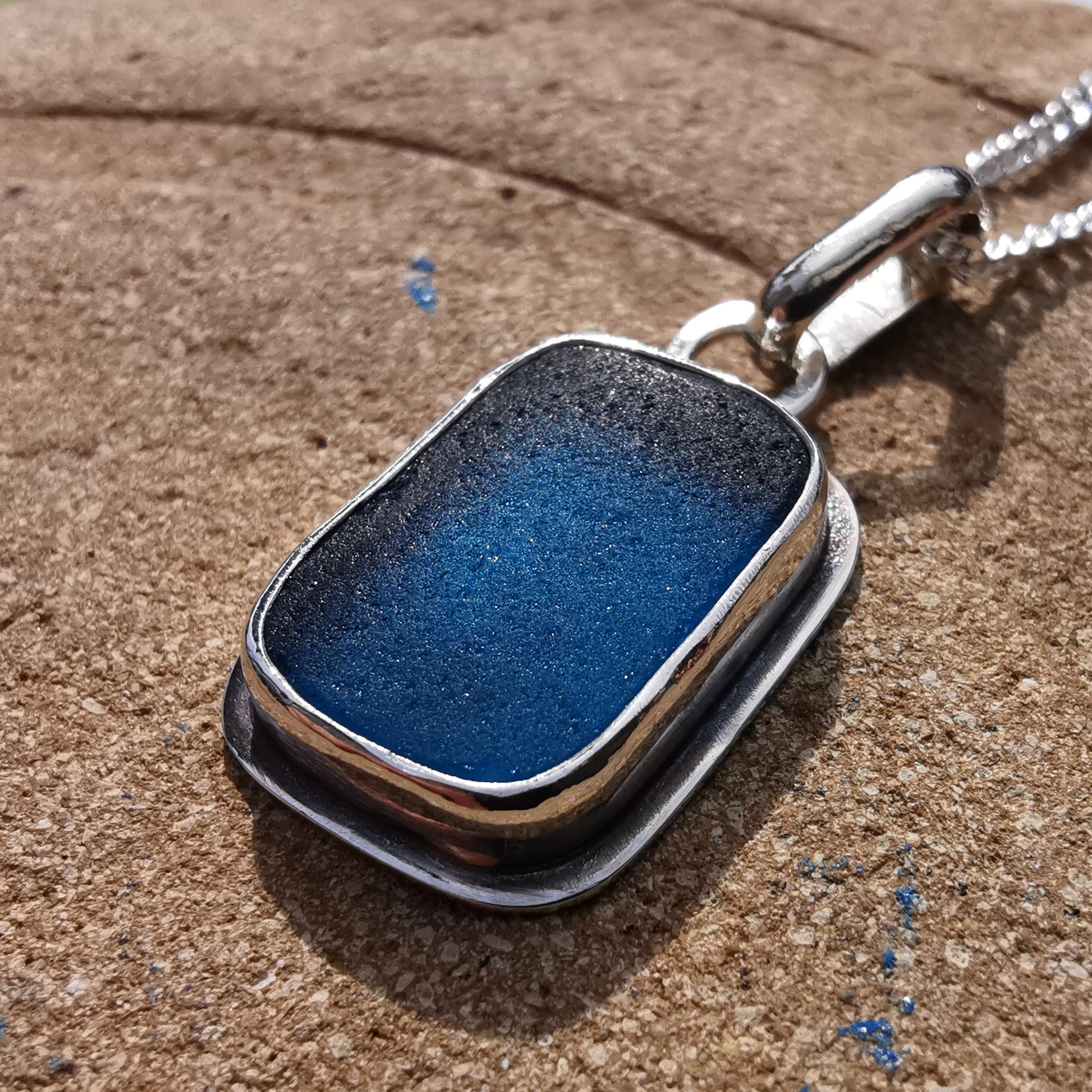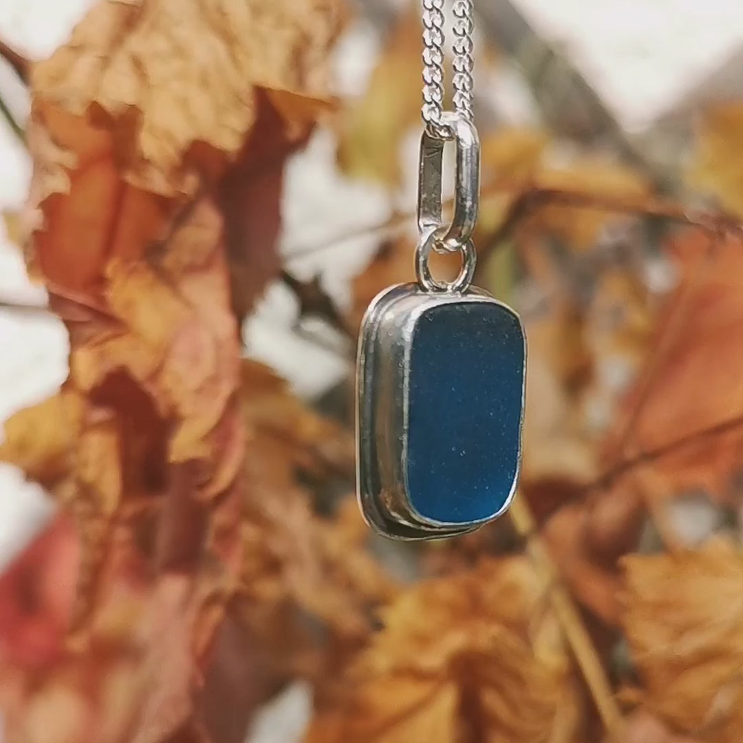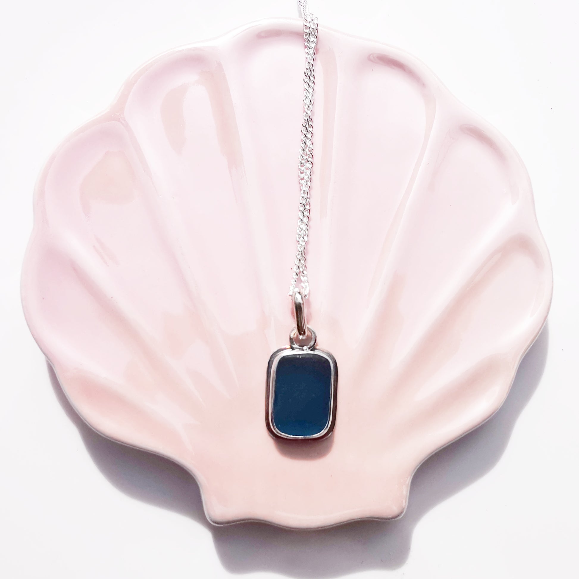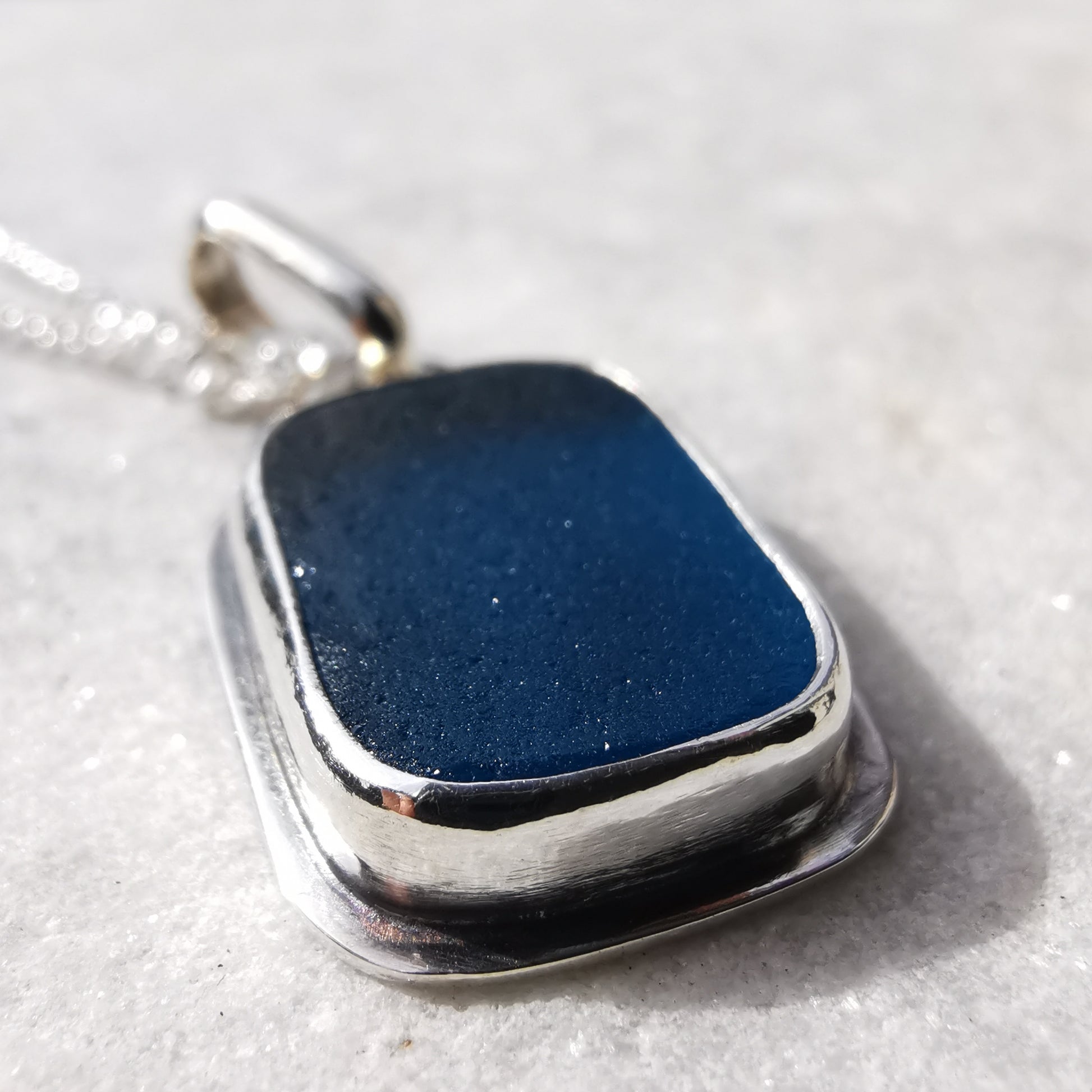 Scottish teal blue 'vitamin sea' sea glass & sterling silver pendant.