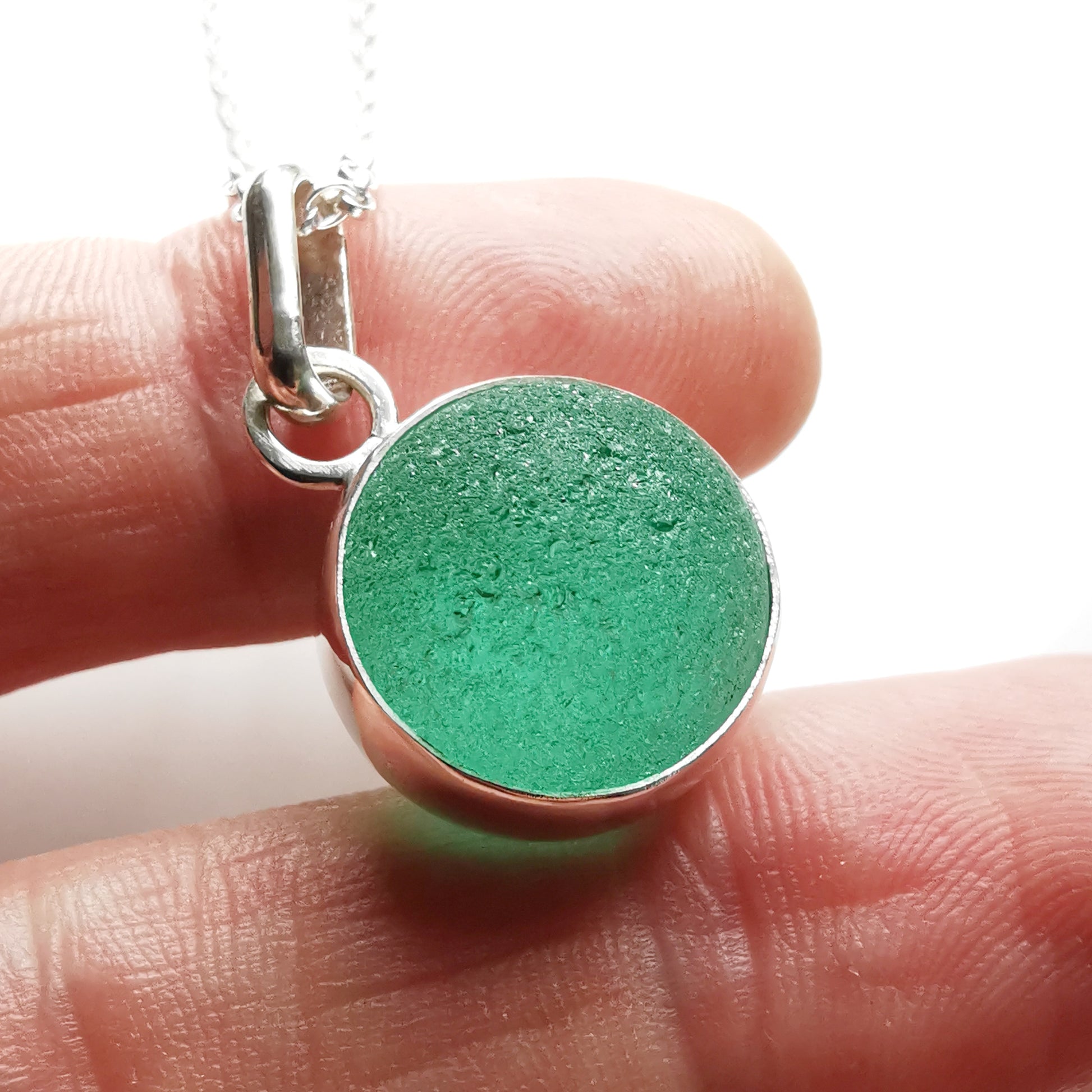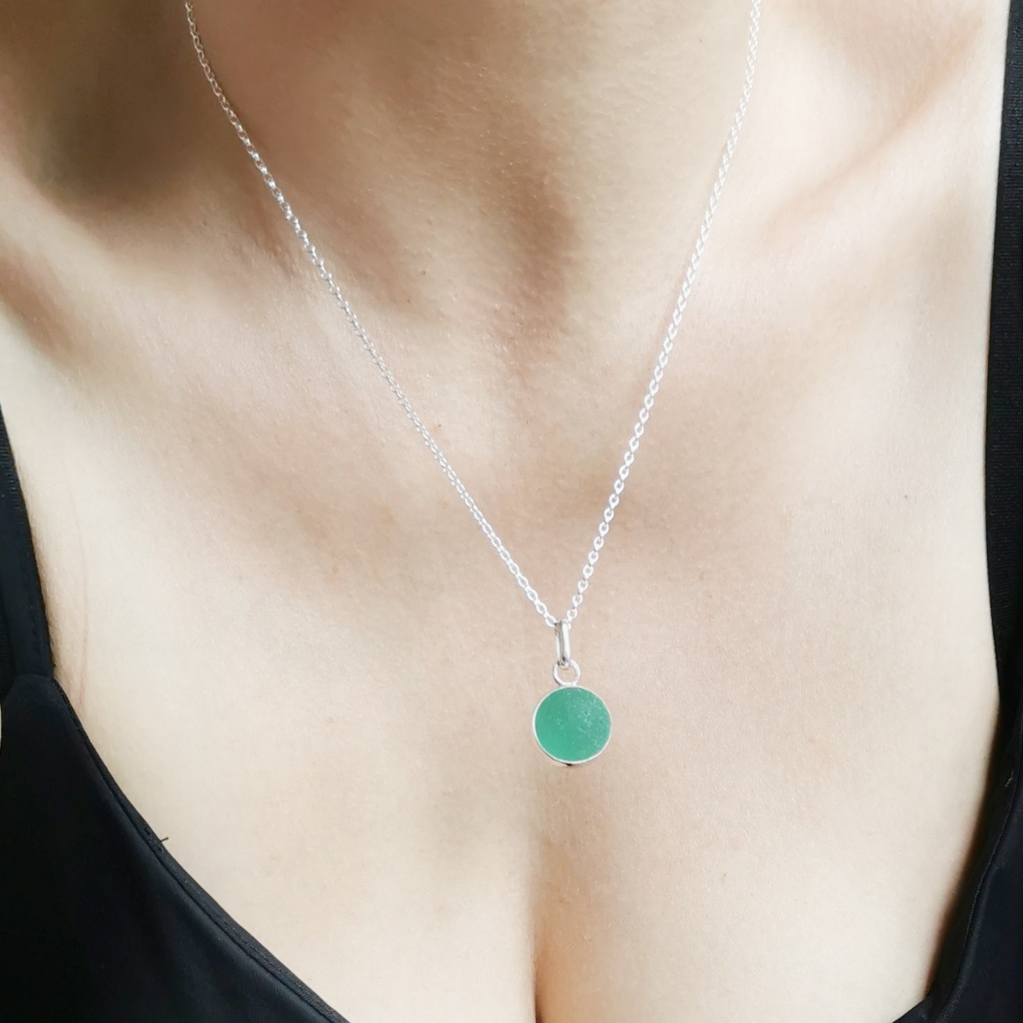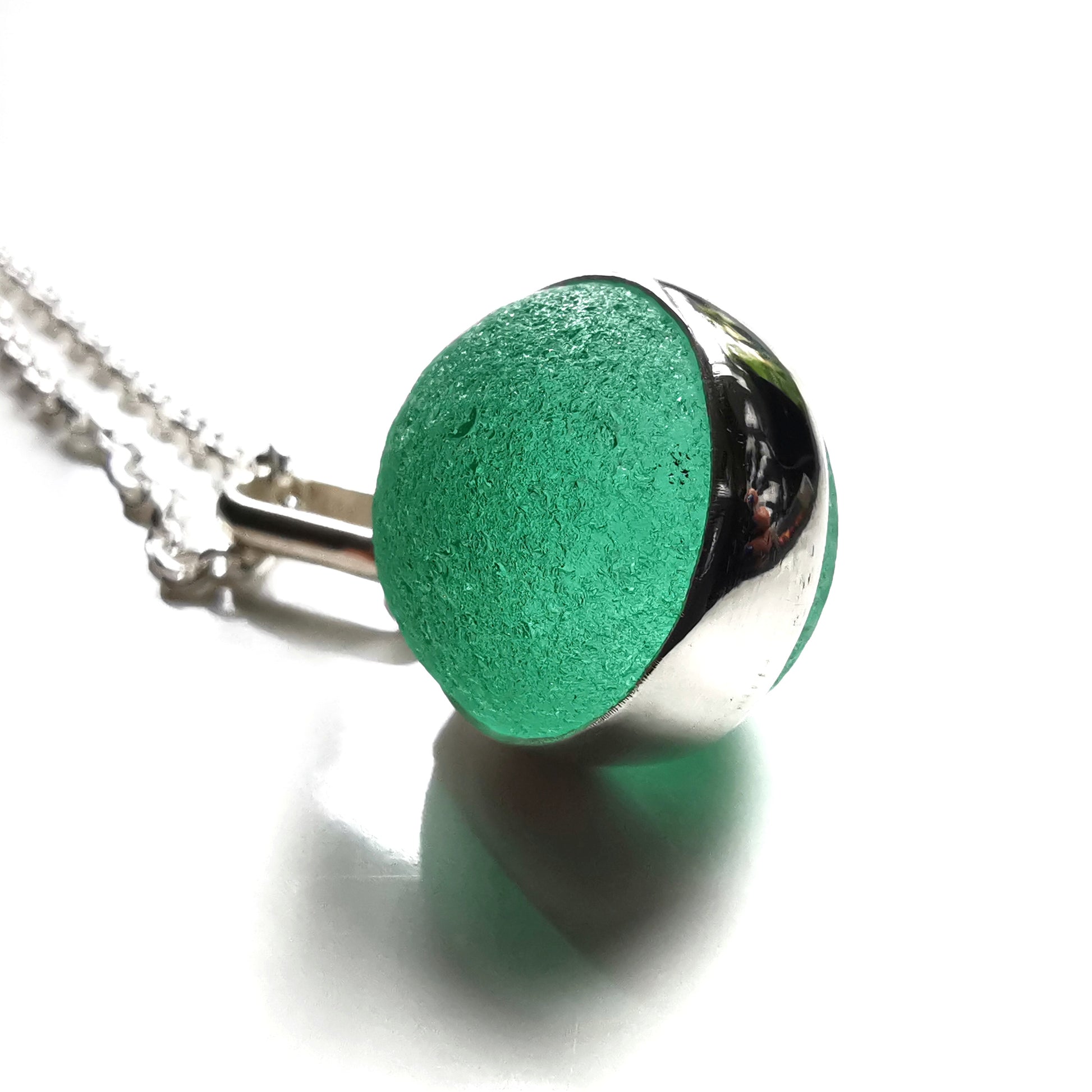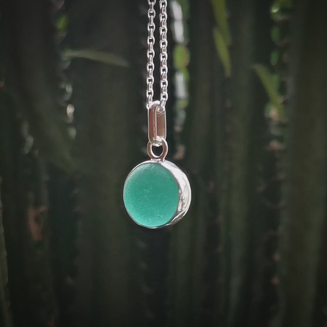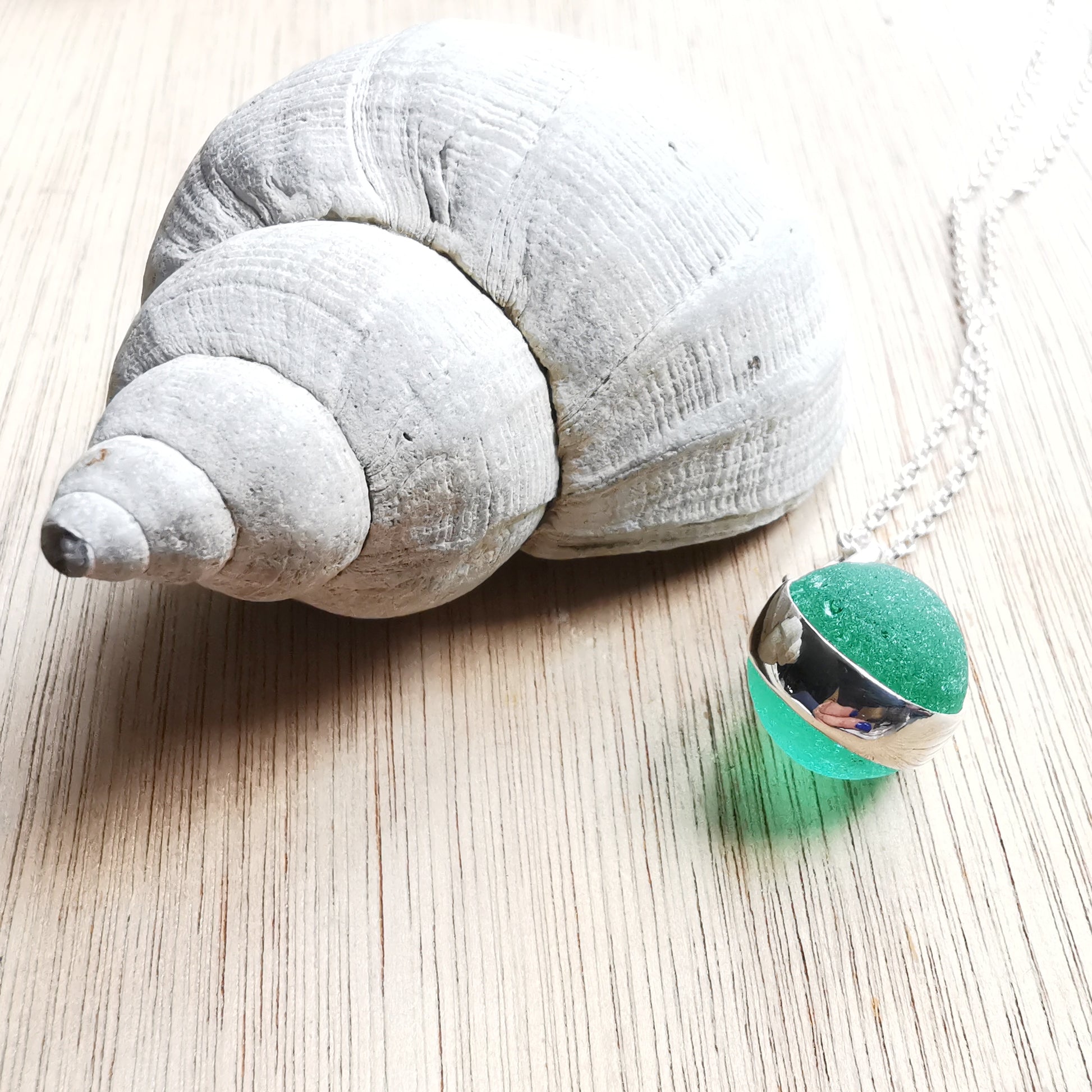 One of a kind pendant composed with genuine frosted teal sea glass marble, found in Edinburgh in January 2024. The marble is set in fine silver bezel, the chain is sterling silver. The marble can spin in the bezel, this is normal and it is not a fault, marble is secure and is not going to fall of the bezel.