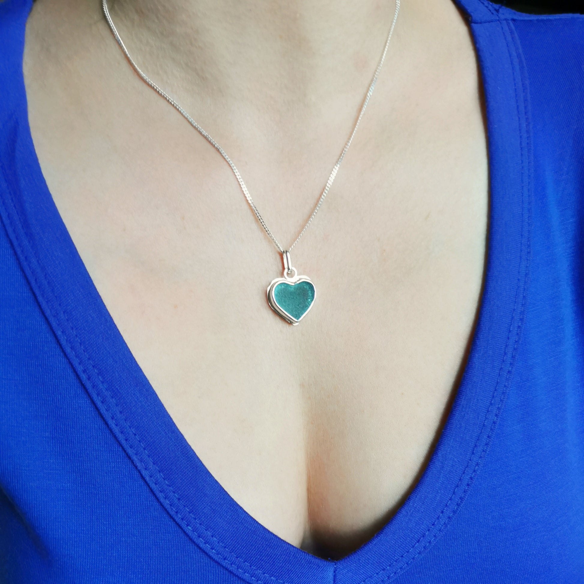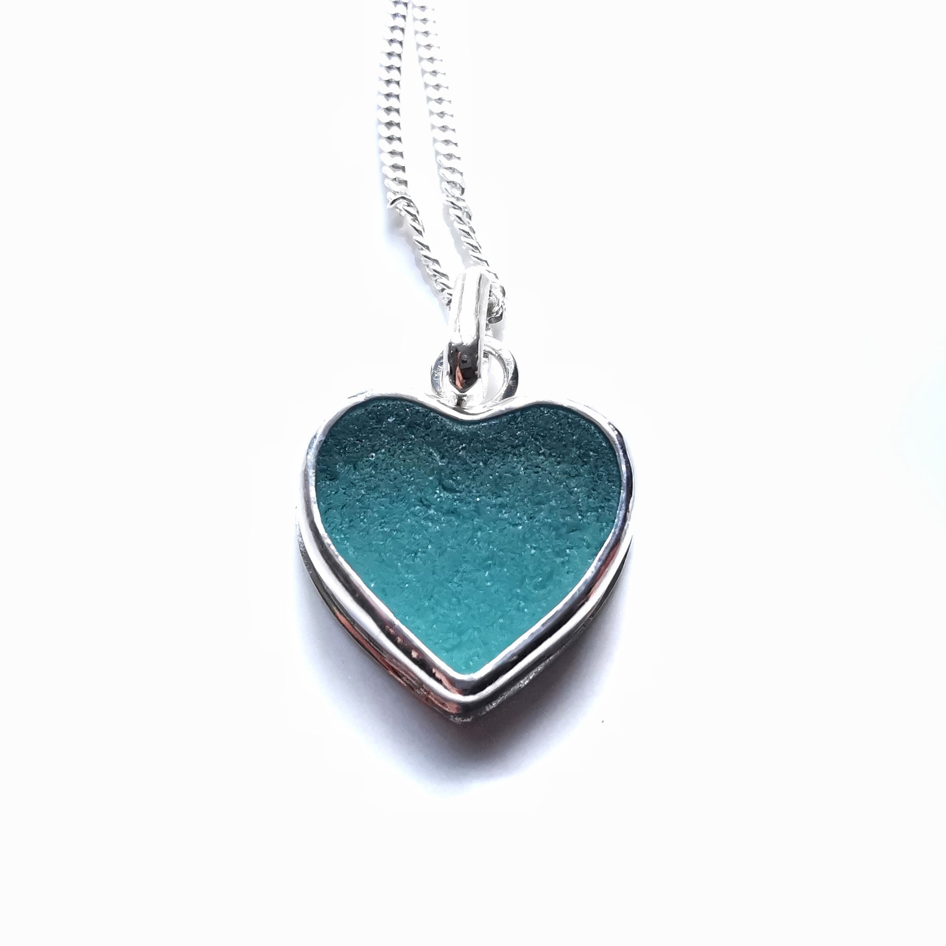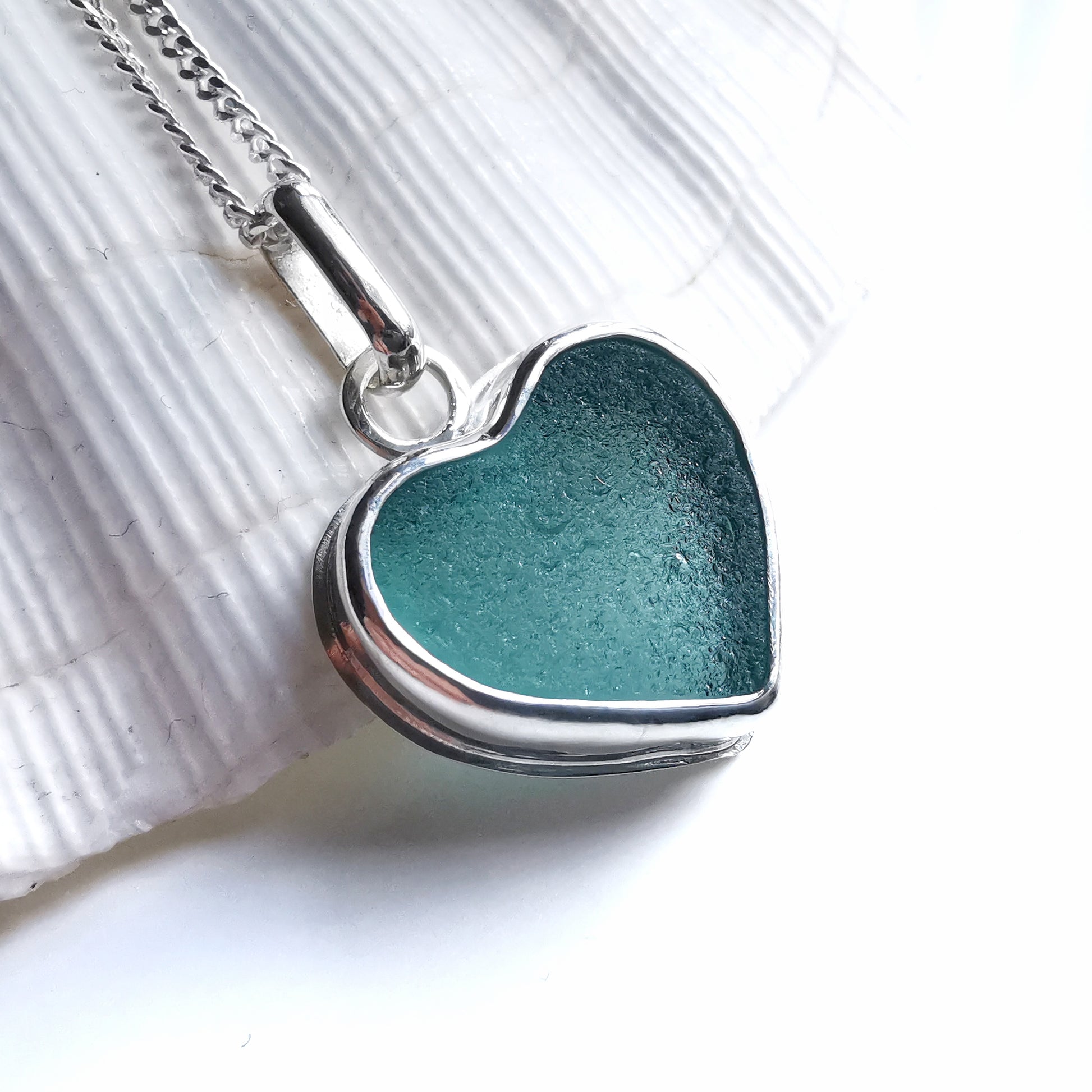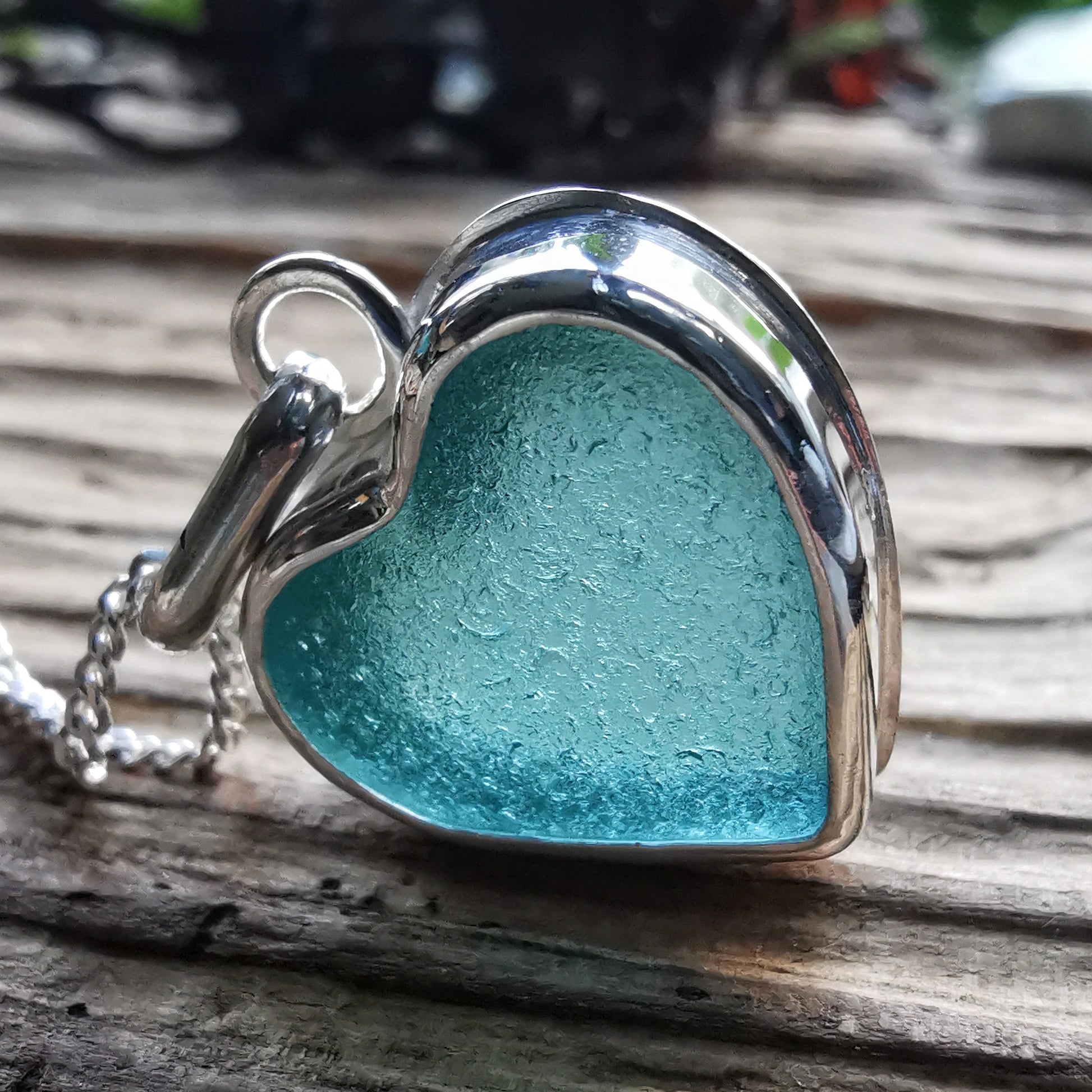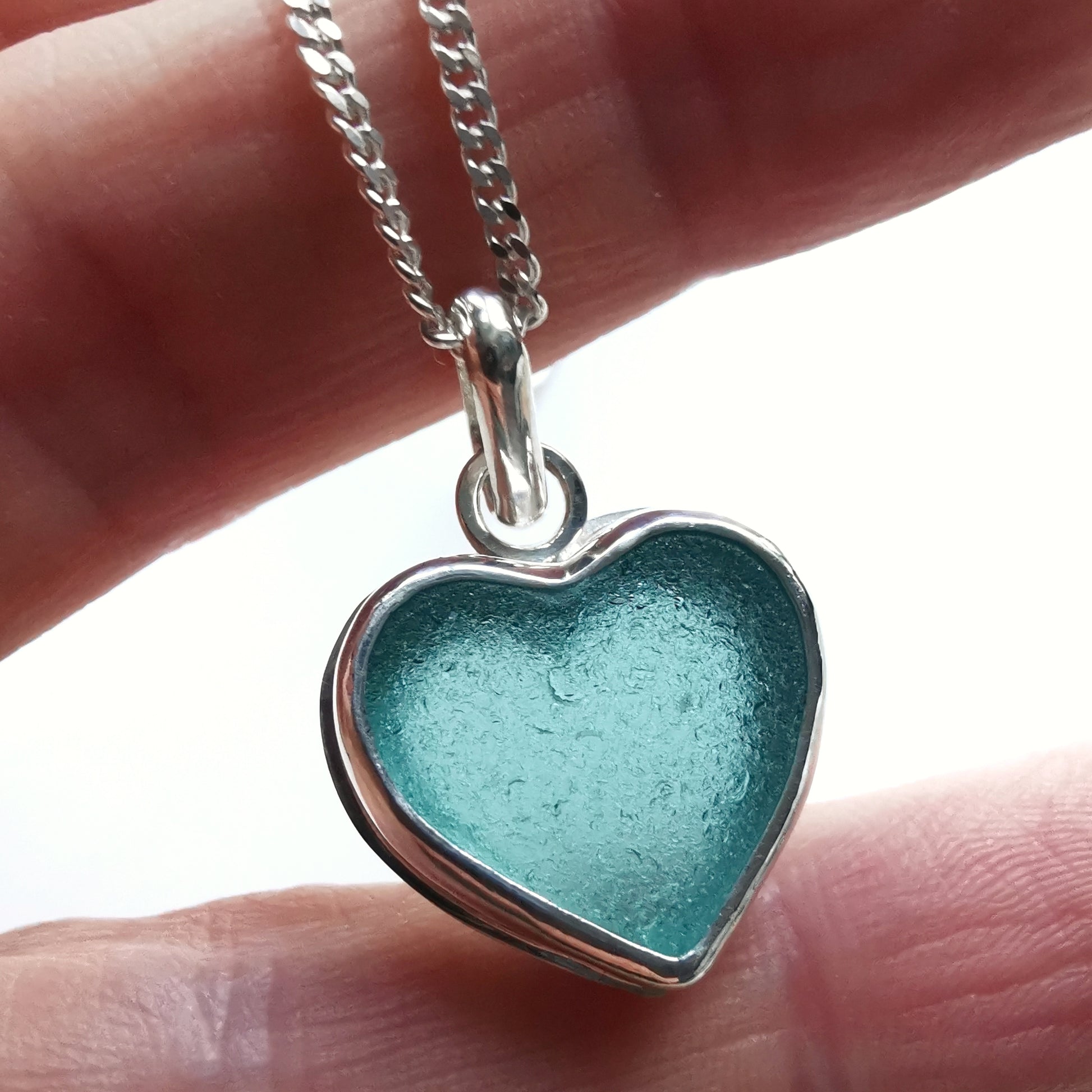 One of a kind pendant composed with genuine Scottish teal sea glass found by me on Edinburgh's beach. The sea glass is set in fine silver bezel, the chain is sterling silver. I've shaped this piece myself, you can see the original sea glass in the last photo.