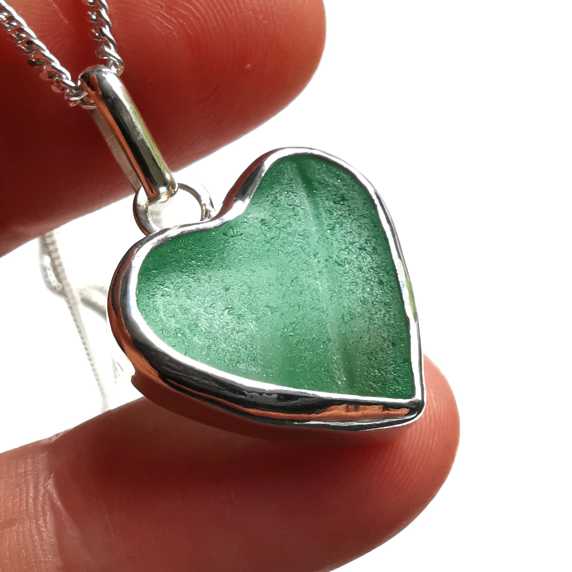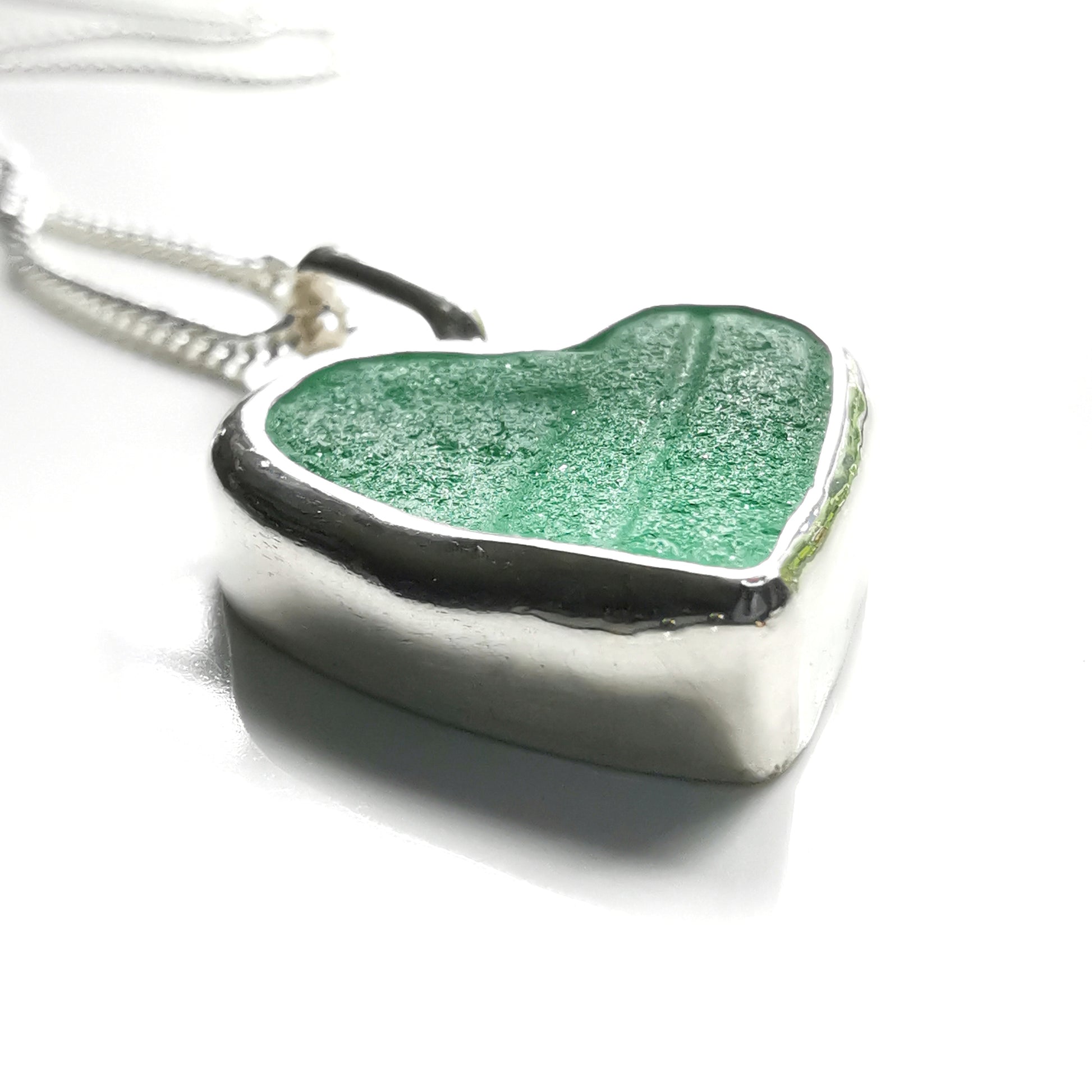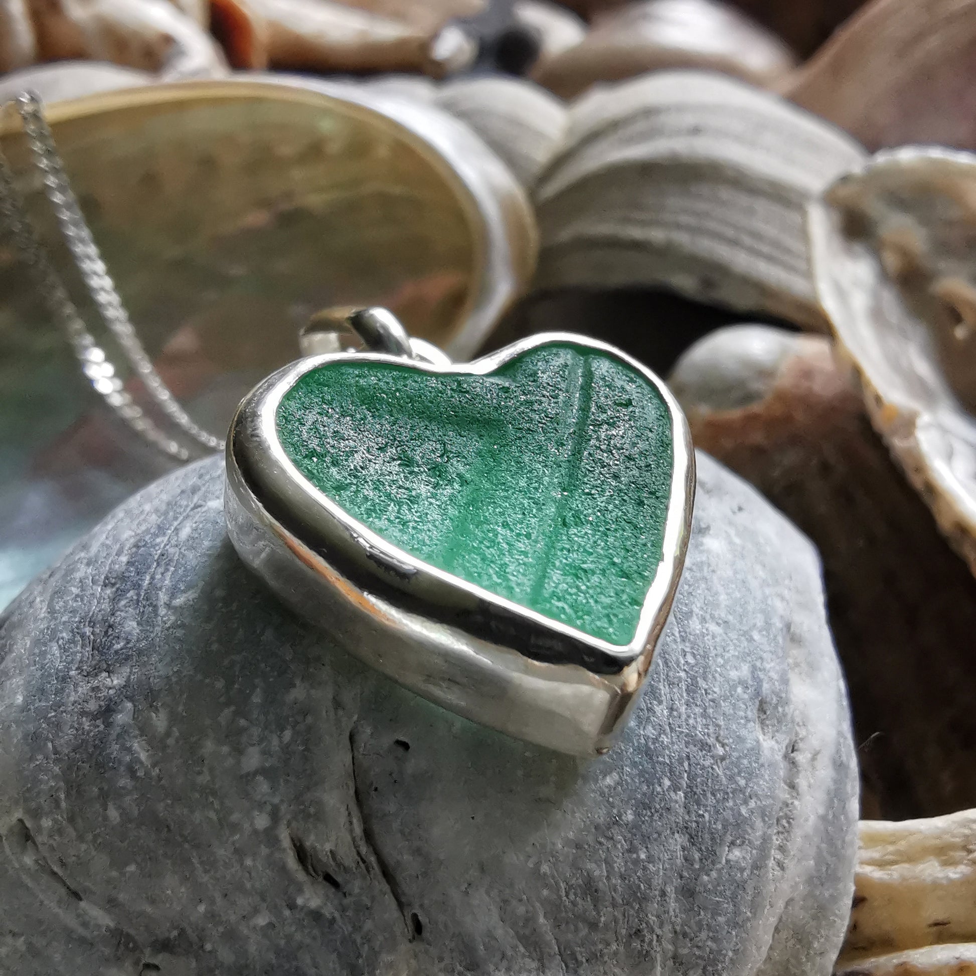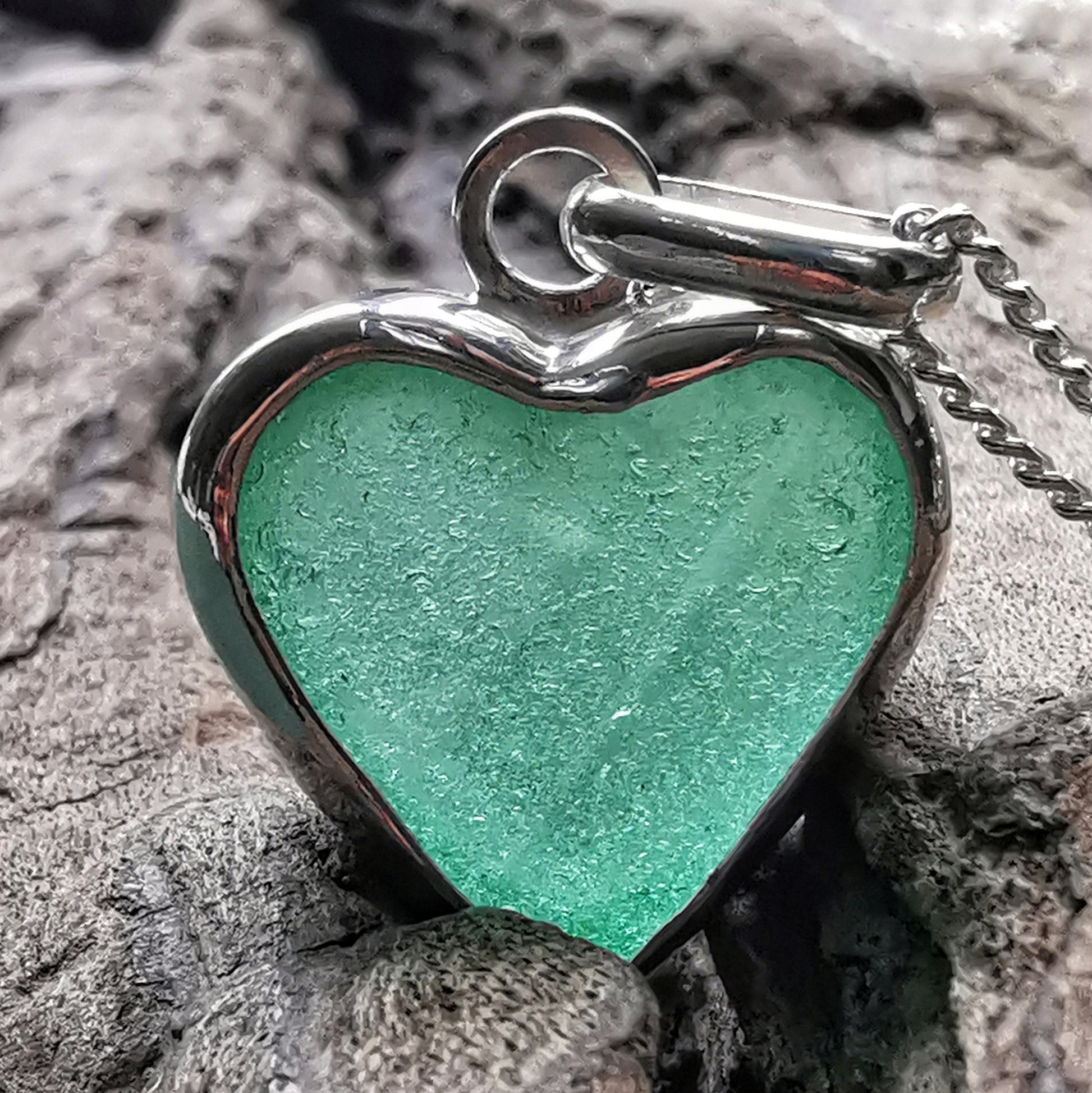 One of a kind pendant composed with genuine Scottish teal sea glass found by me on Edinburgh's beach. The sea glass is set in open back fine silver bezel, the chain is sterling silver. I've shaped this piece myself, you can see the original sea glass in the last photo.