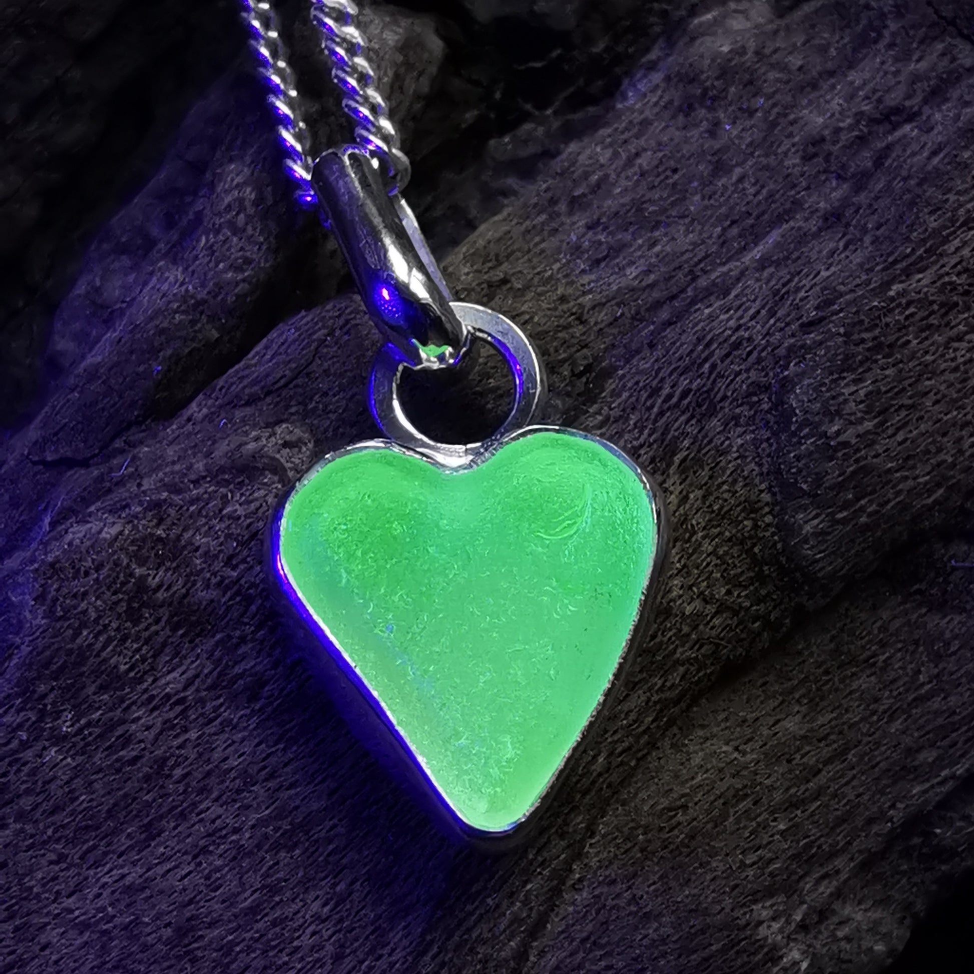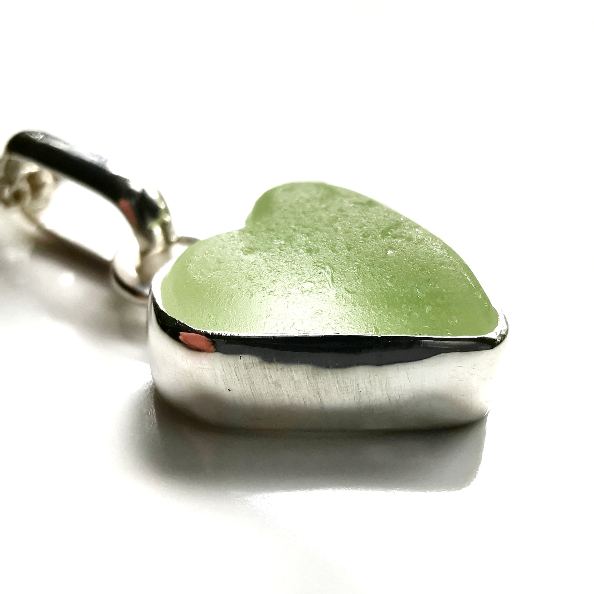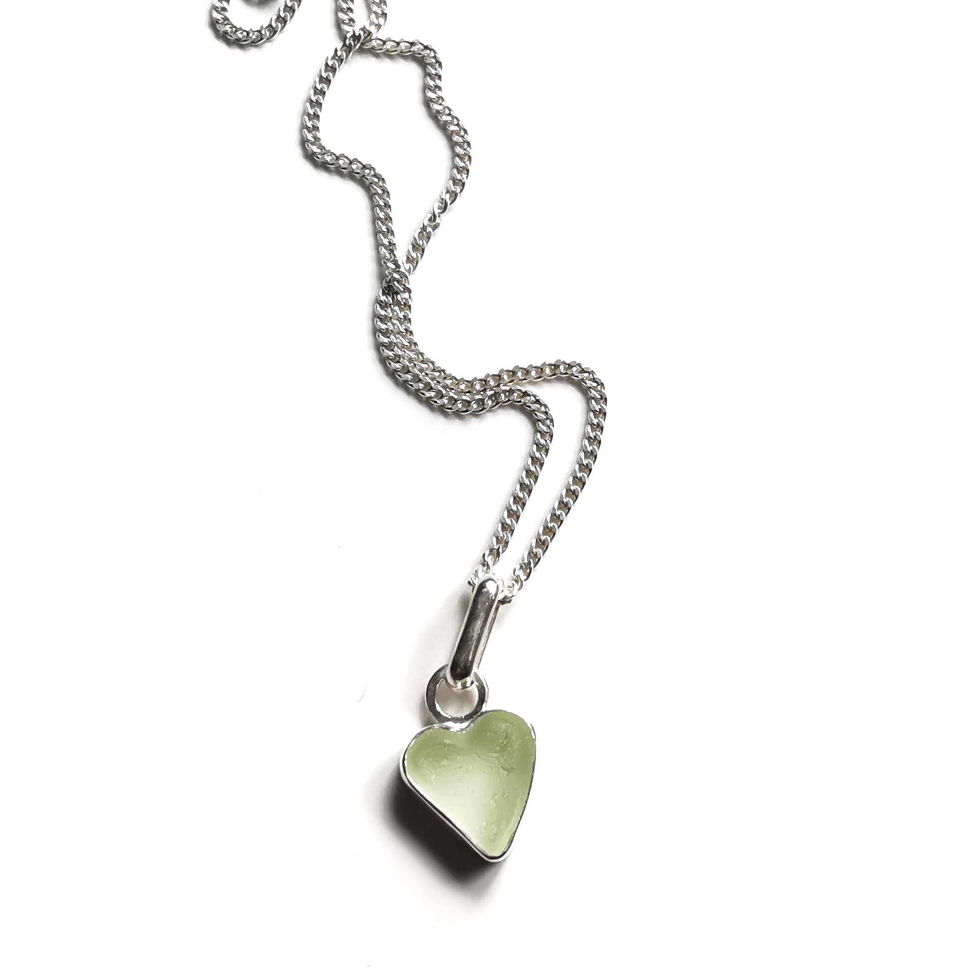 Scottish UV sea glass heart & sterling silver pendant.