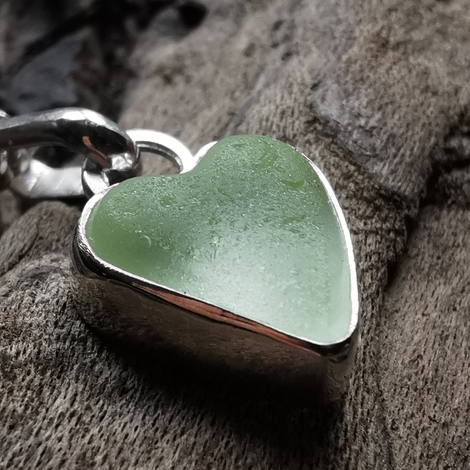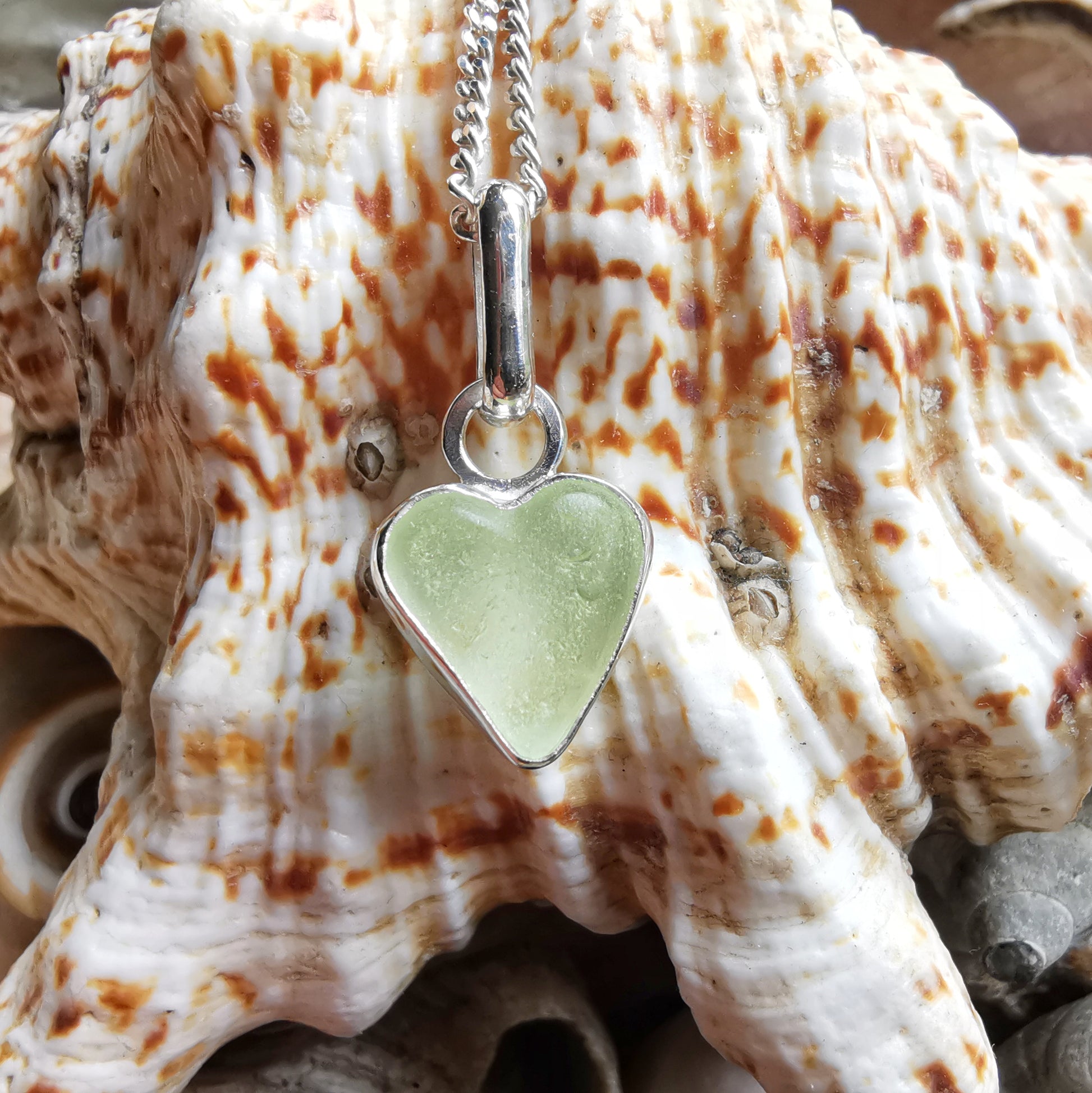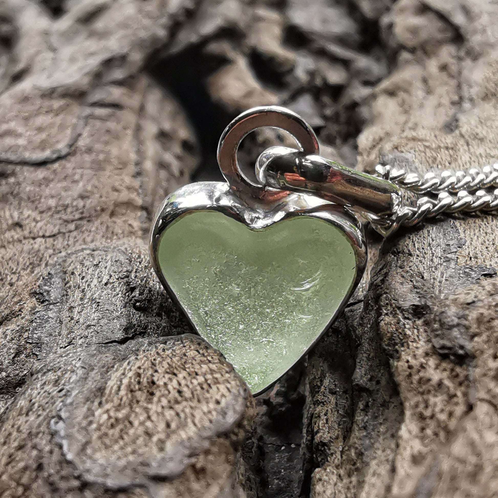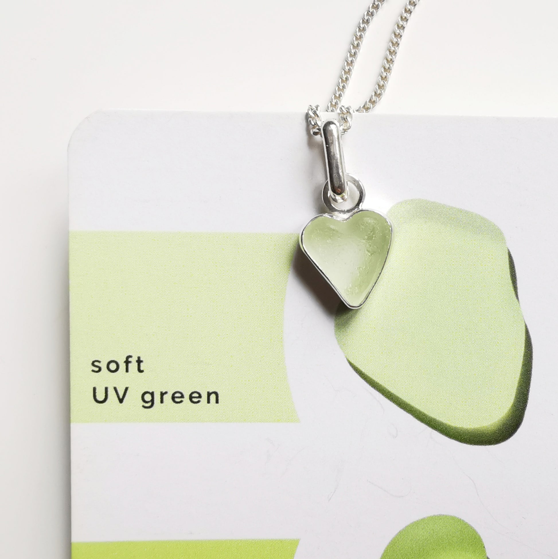 Scottish UV sea glass heart & sterling silver pendant.