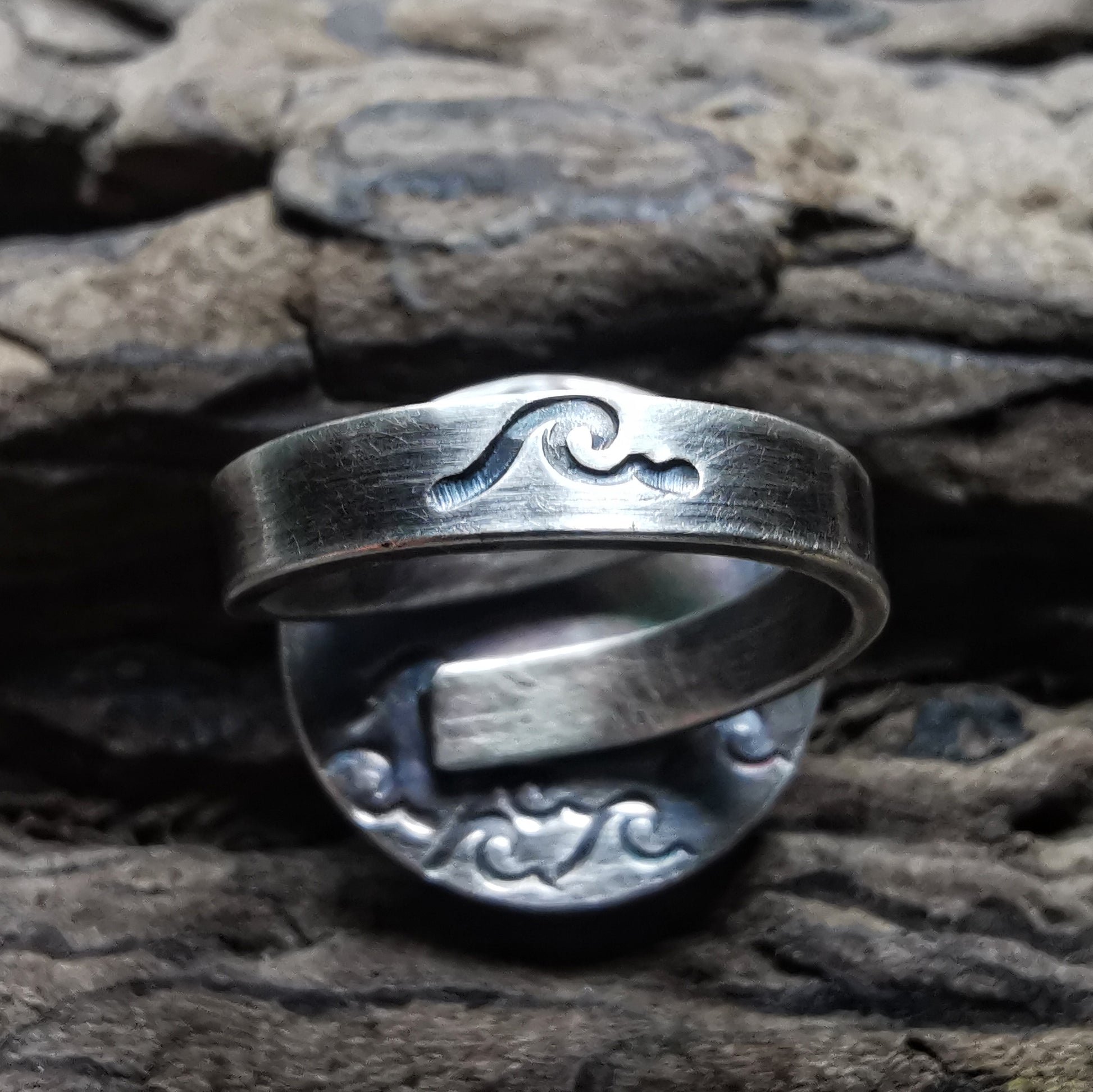 Scottish white and red wave sea glass & sterling silver ring.