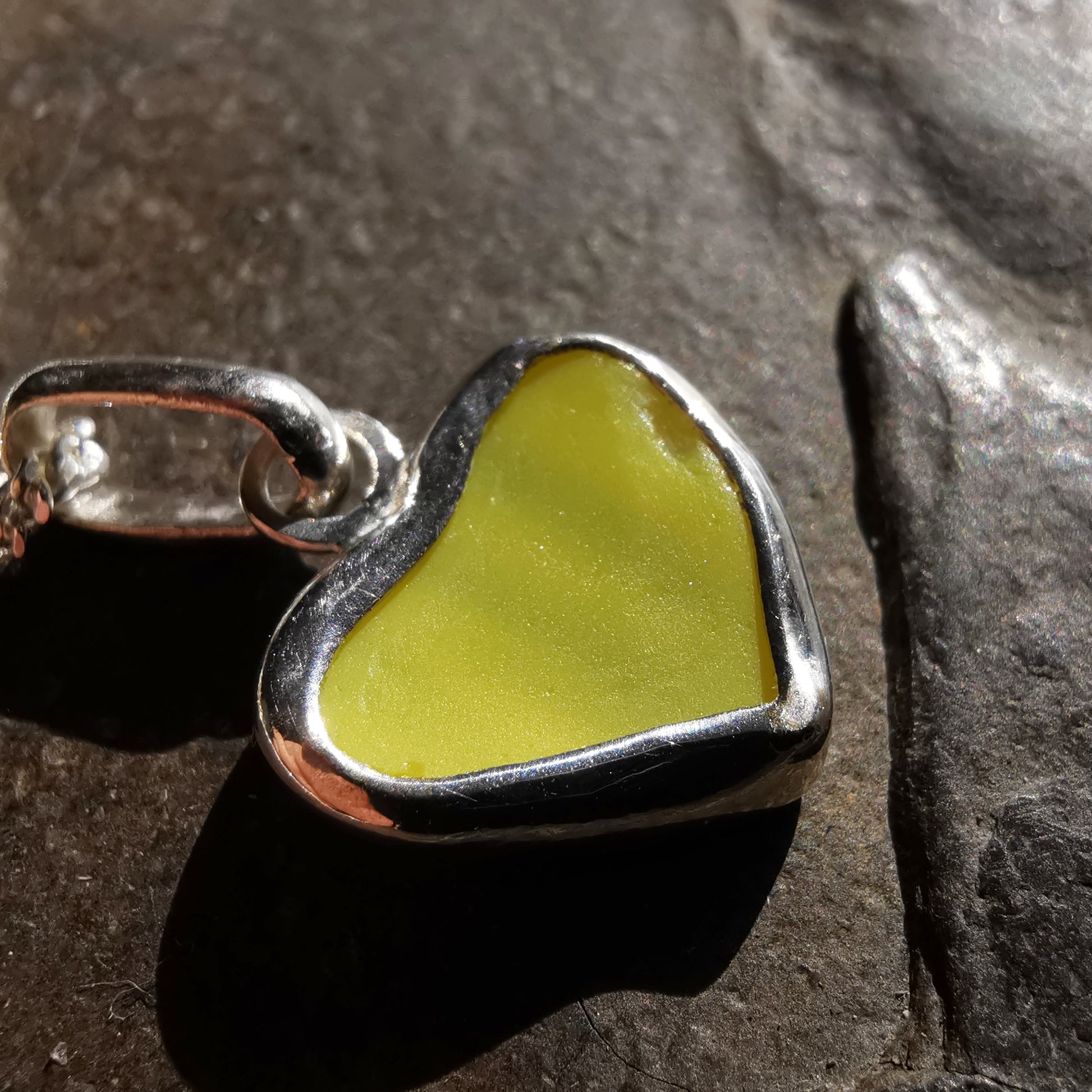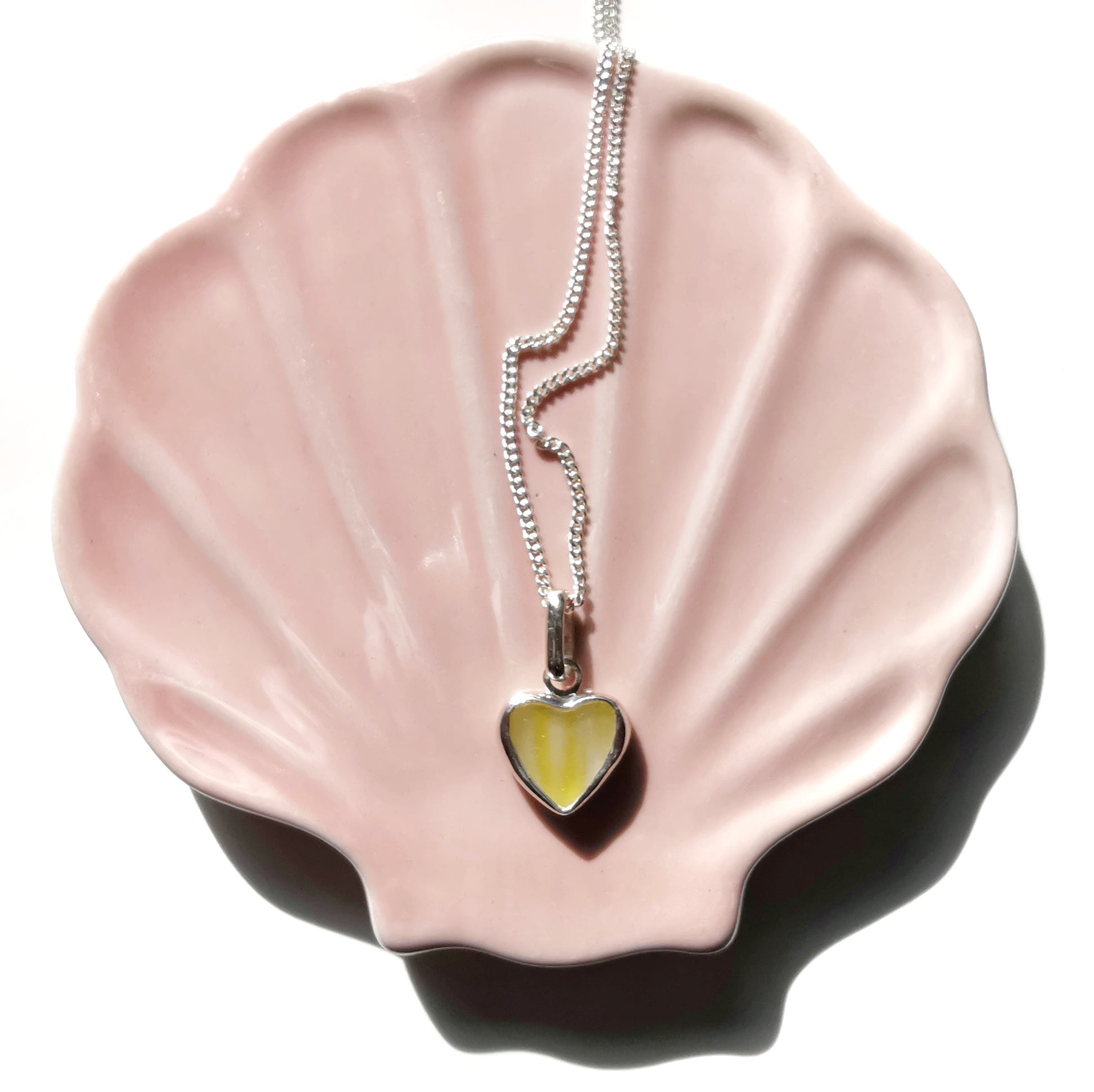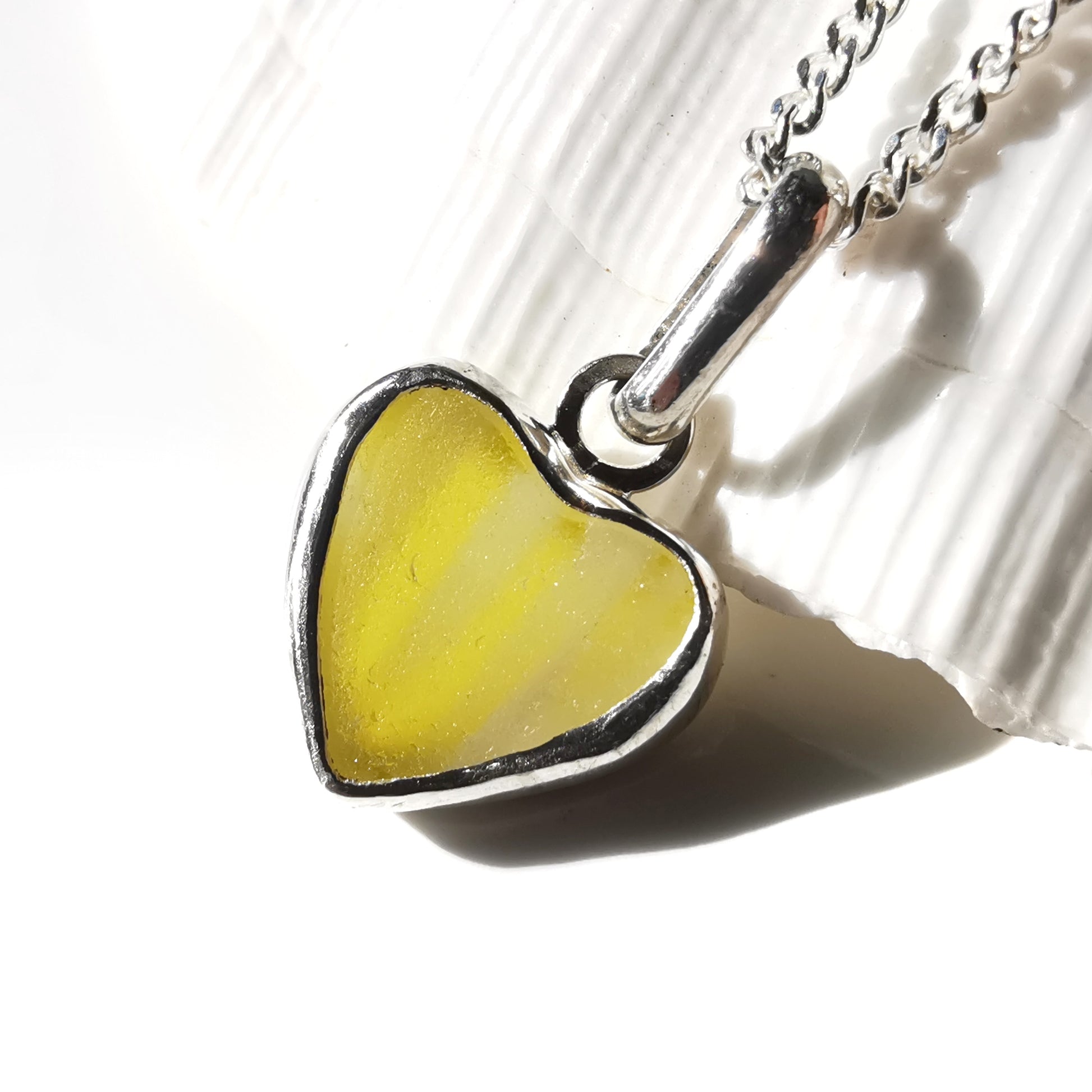 Scottish yellow and white sea glass heart & sterling silver pendant.