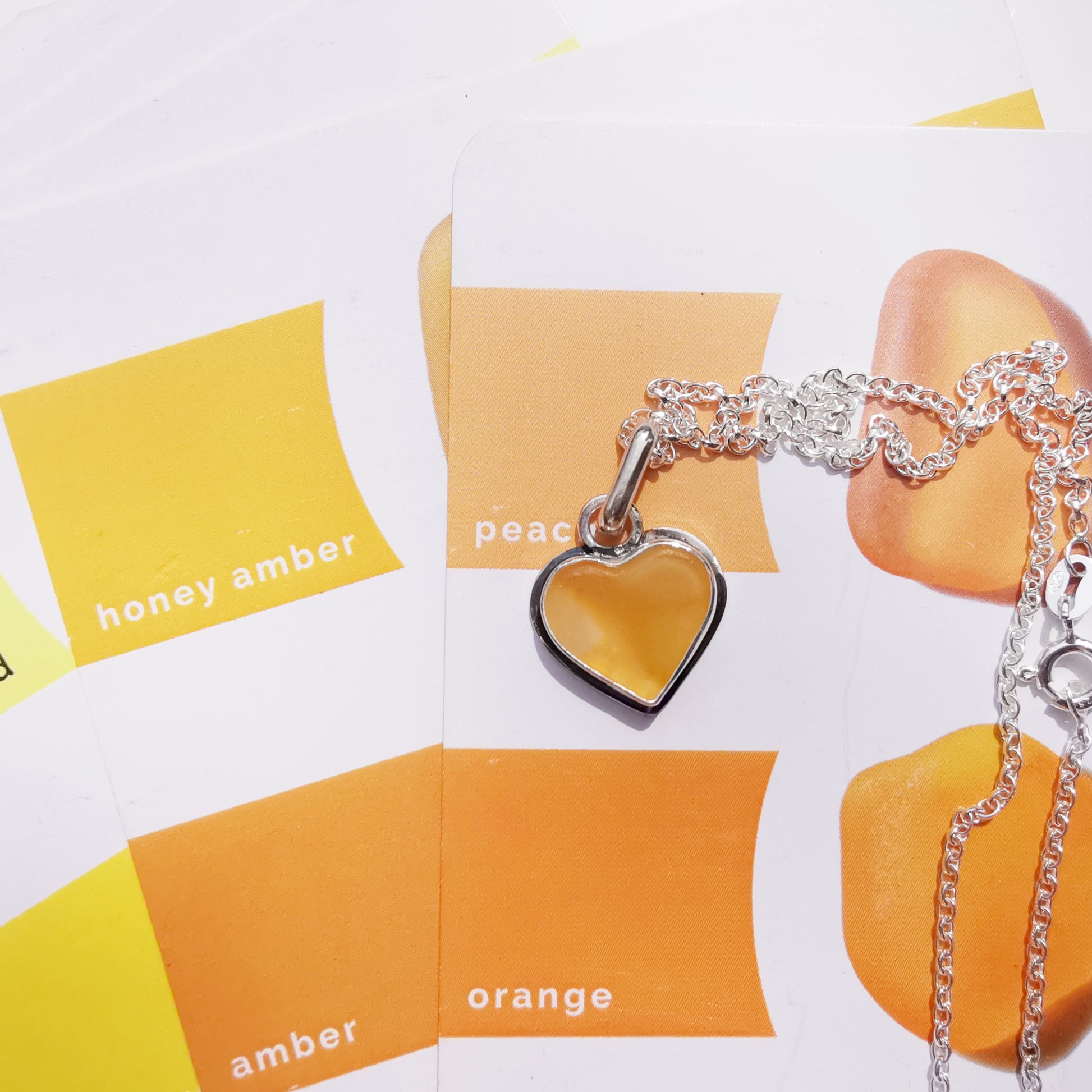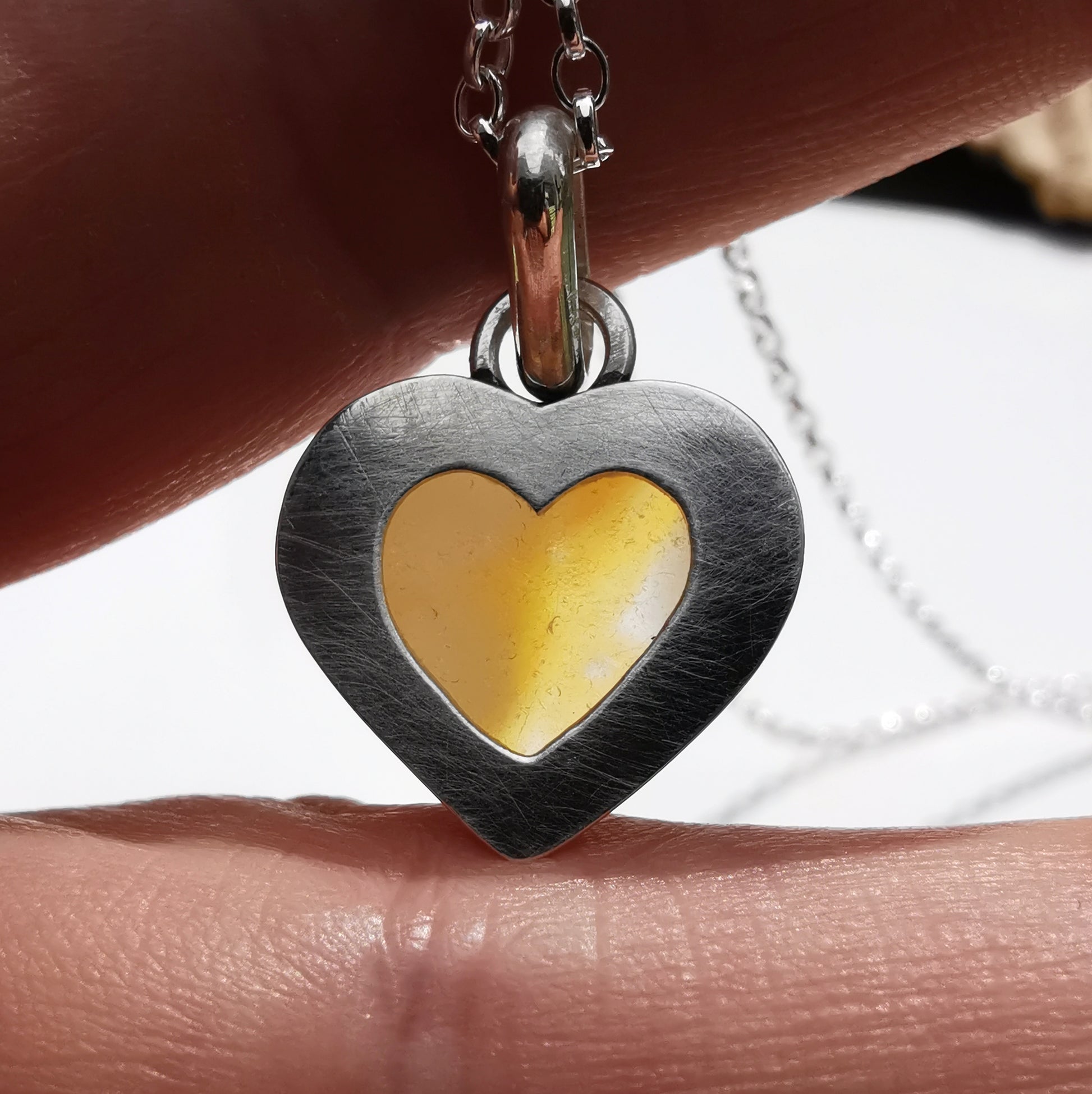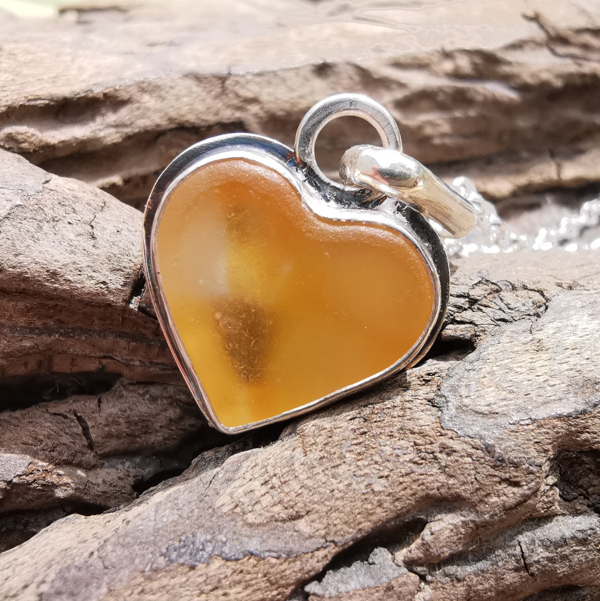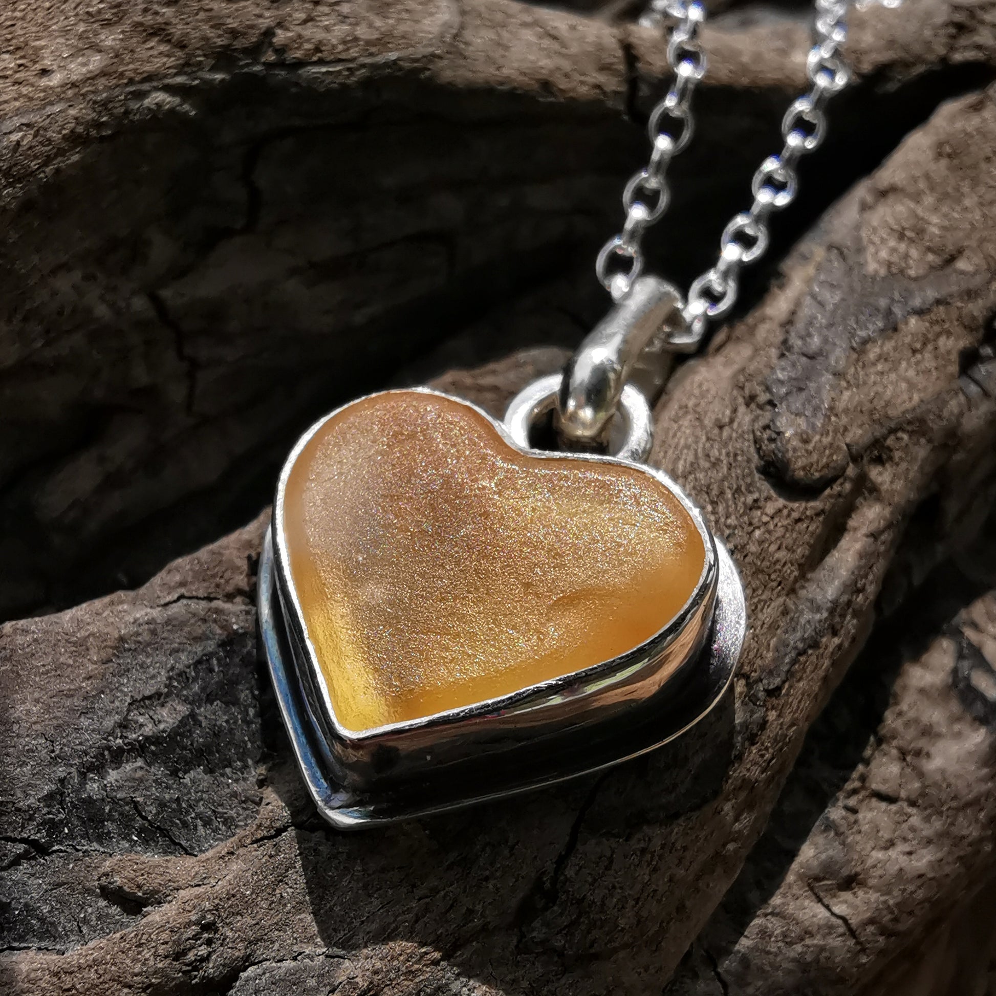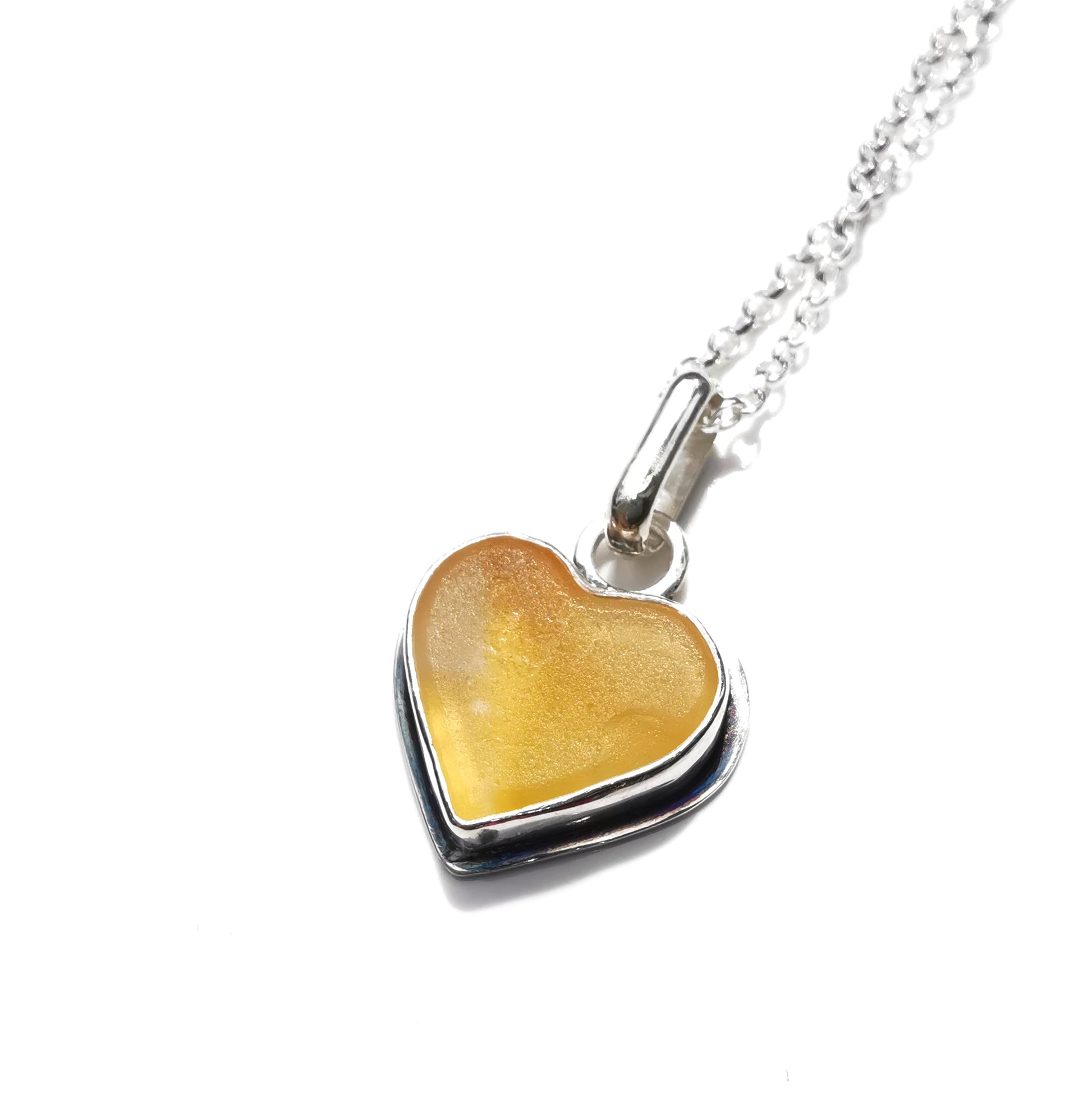 Scottish yellow sea glass heart pendant, sterling silver necklace.