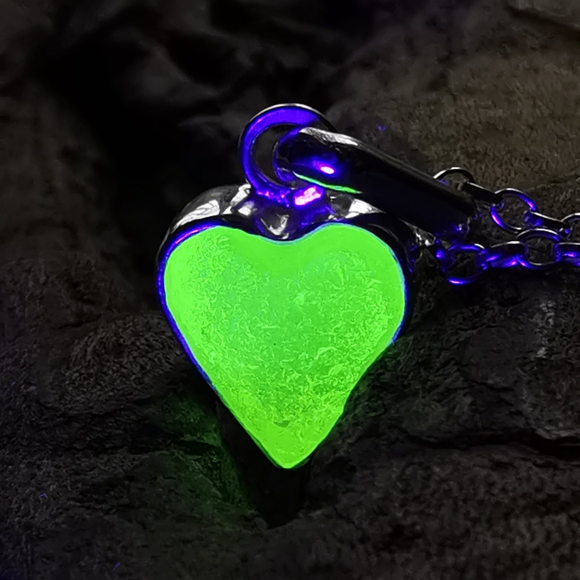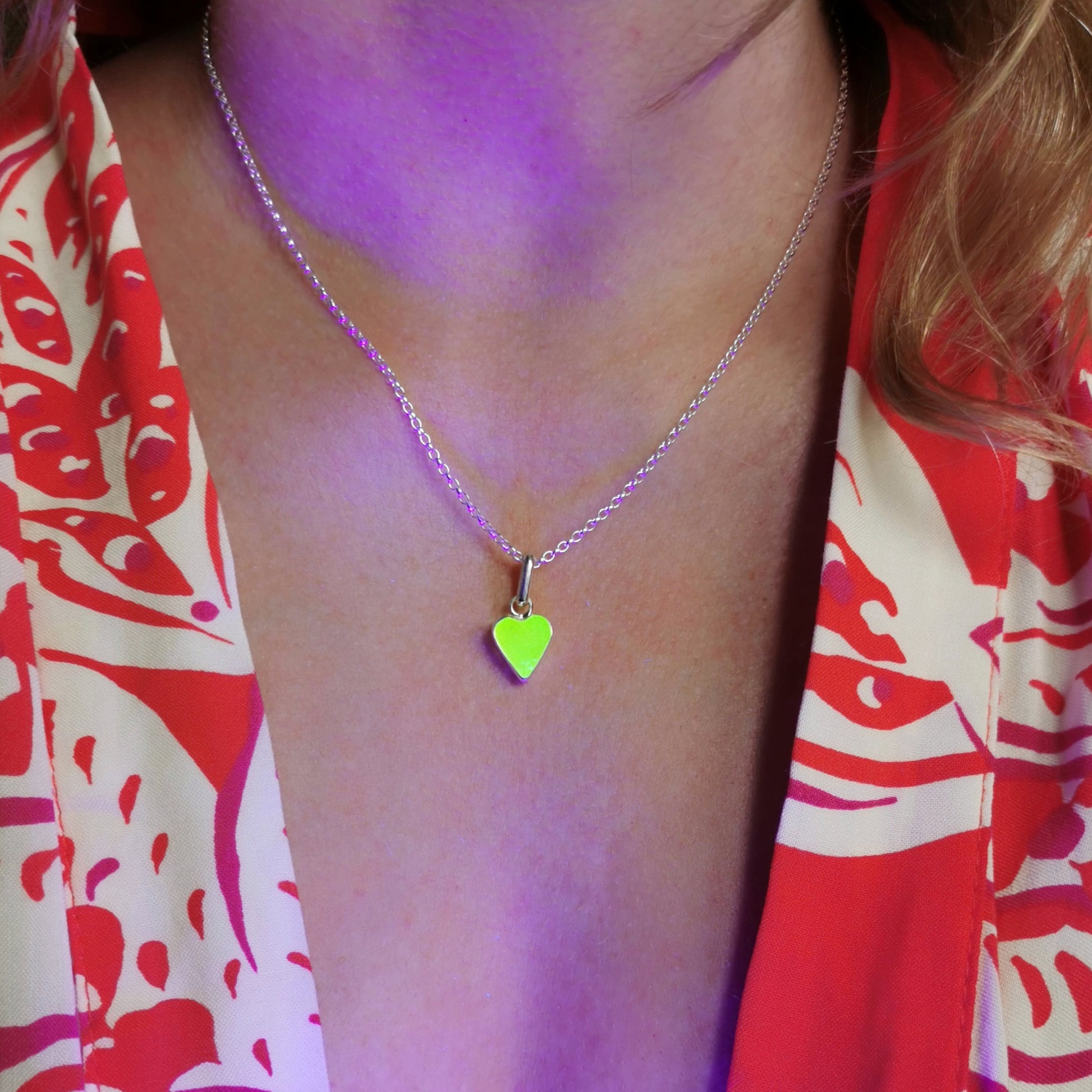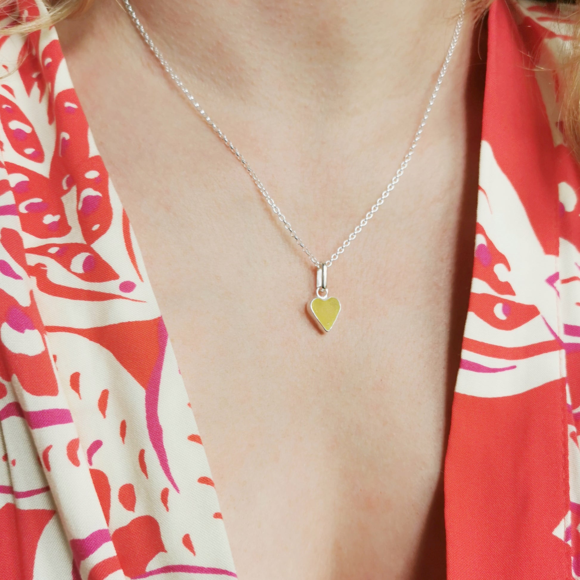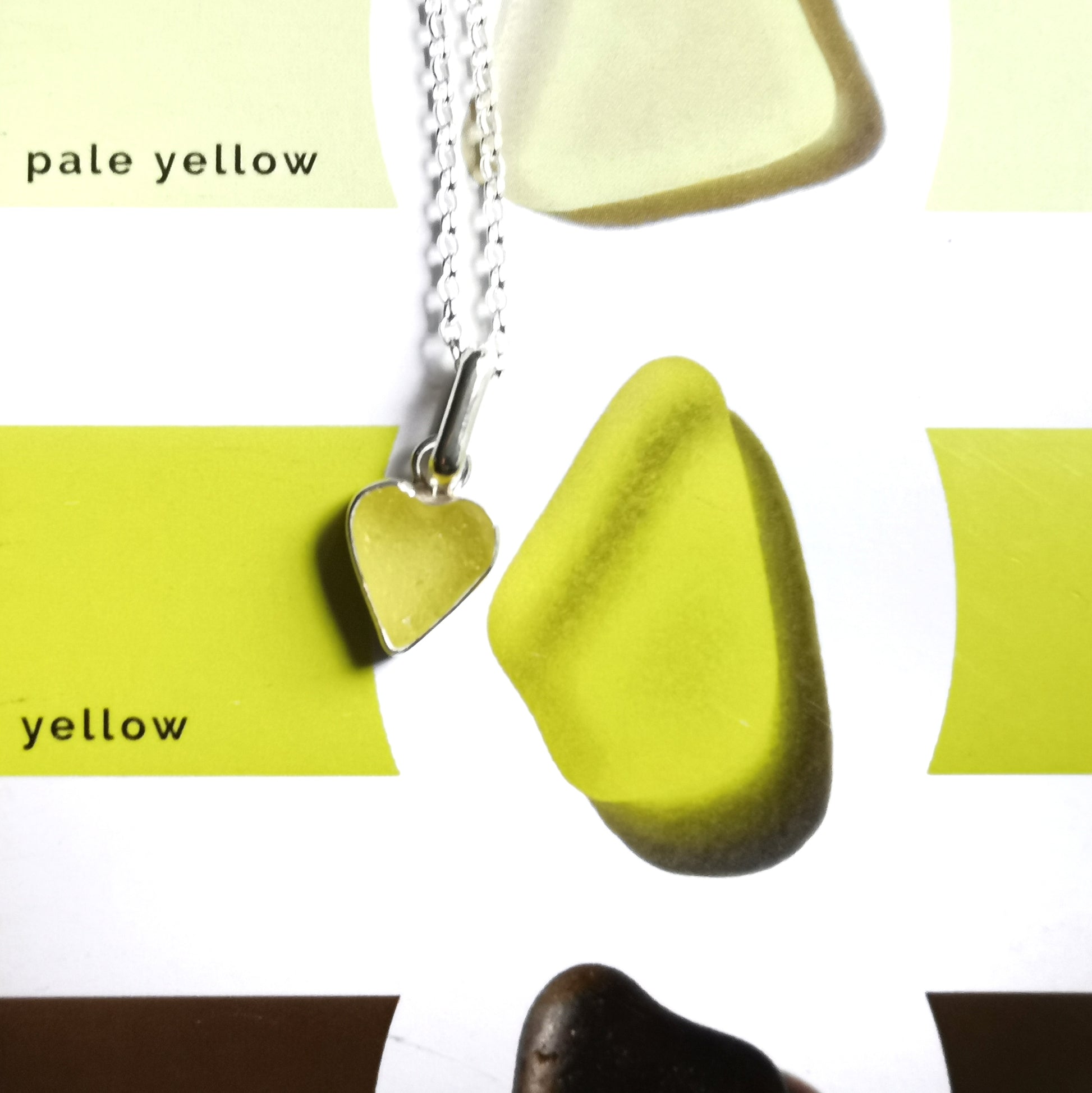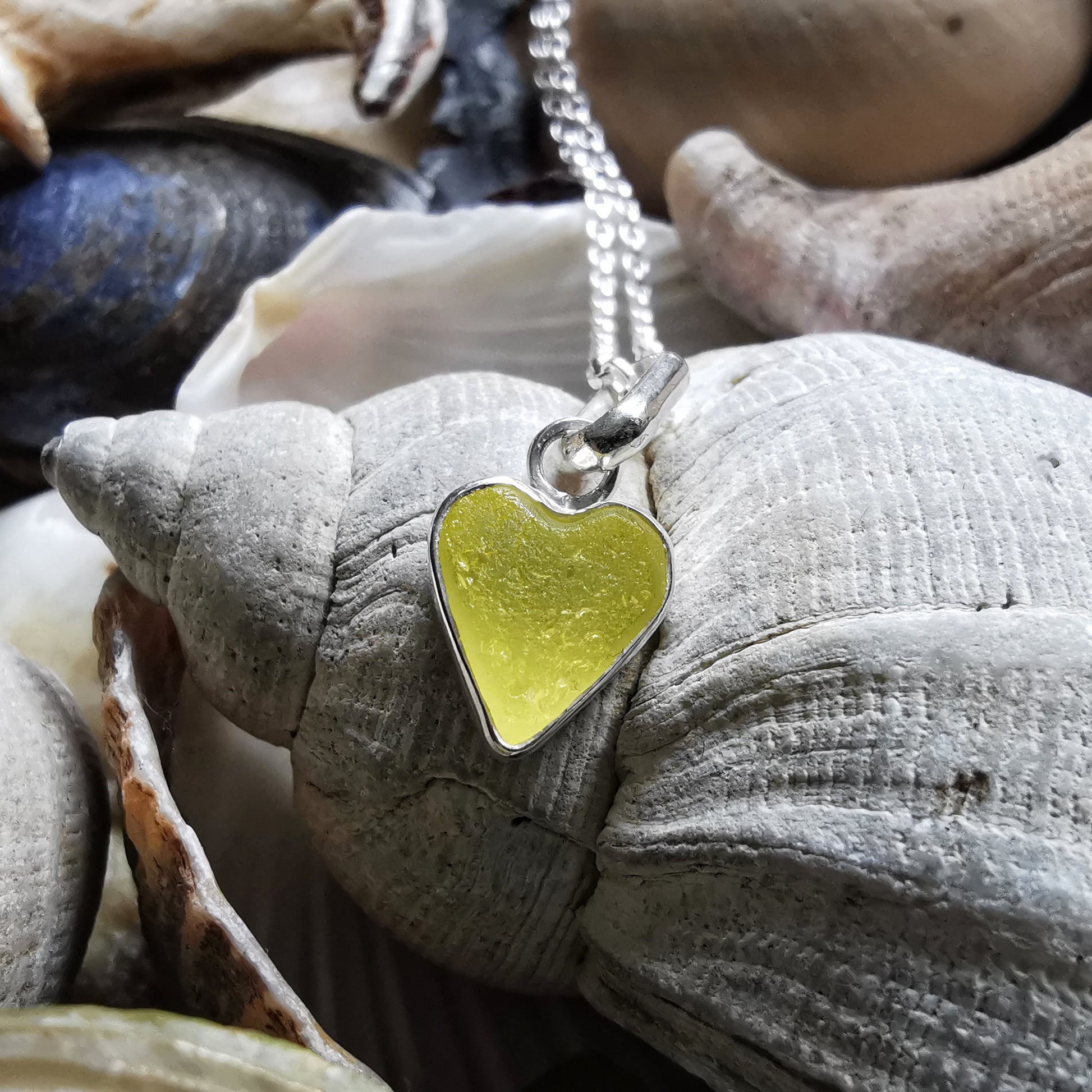 Scottish yellow UV sea glass & sterling silver heart pendant.