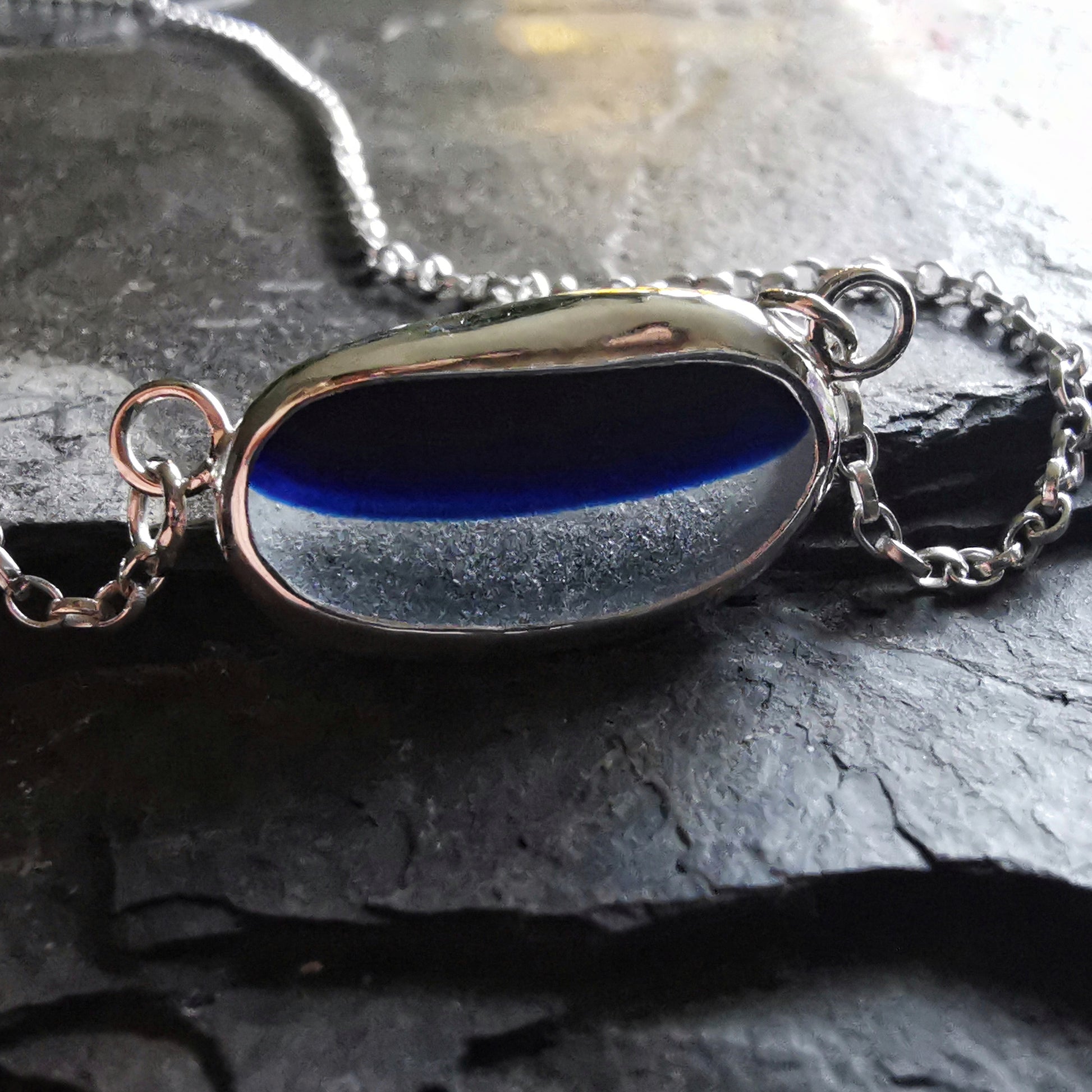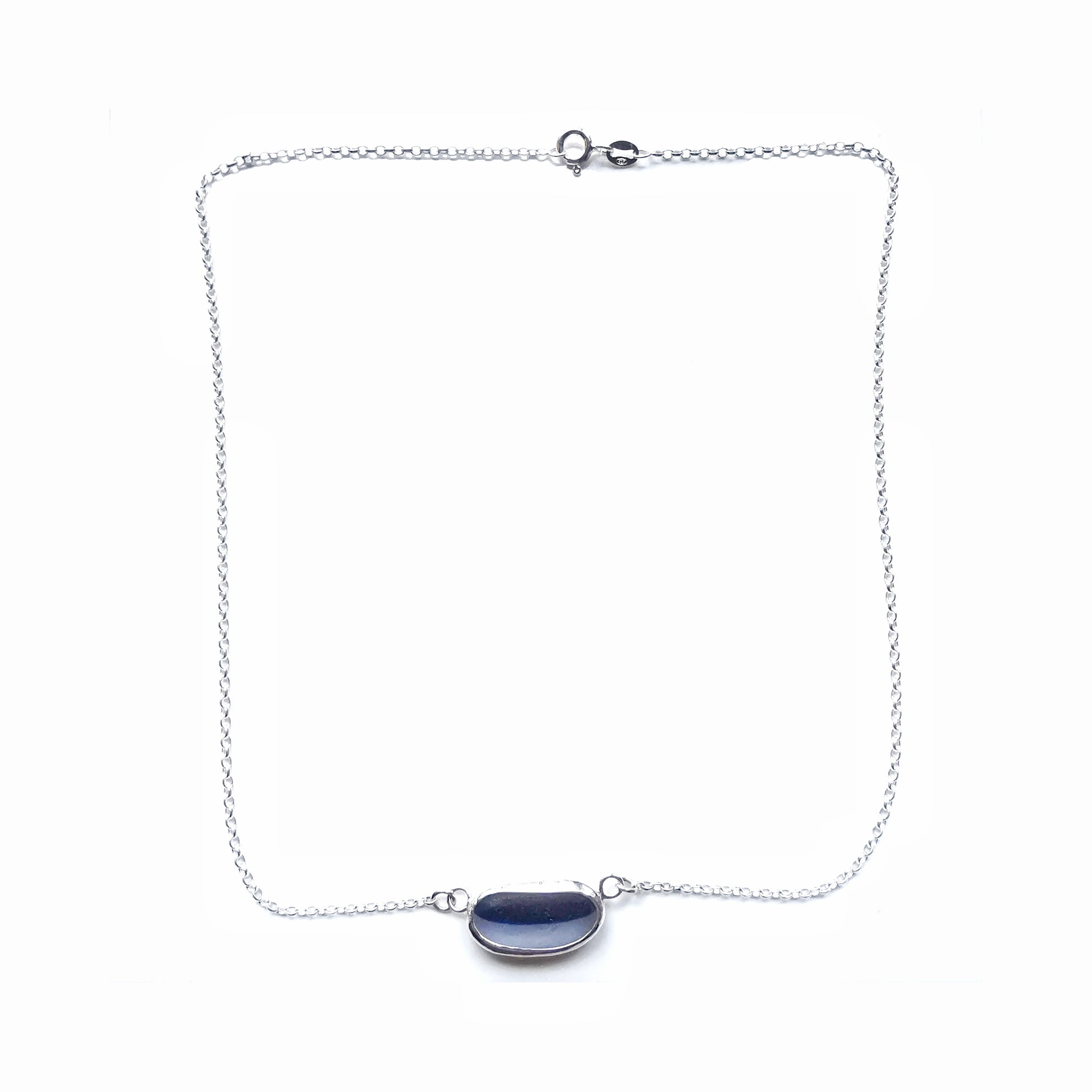 Seaham blue and clear multi sea glass & sterling silver necklace.
