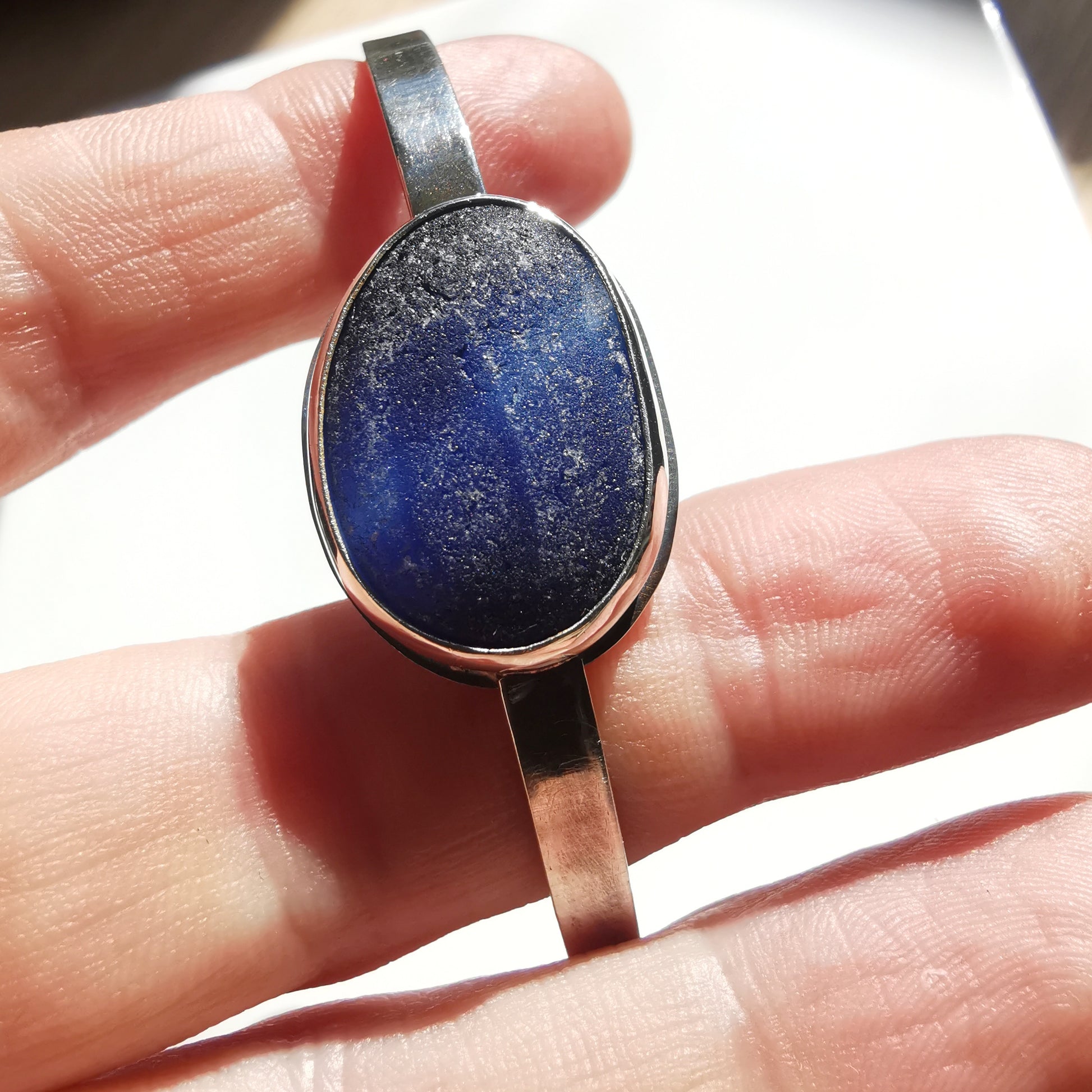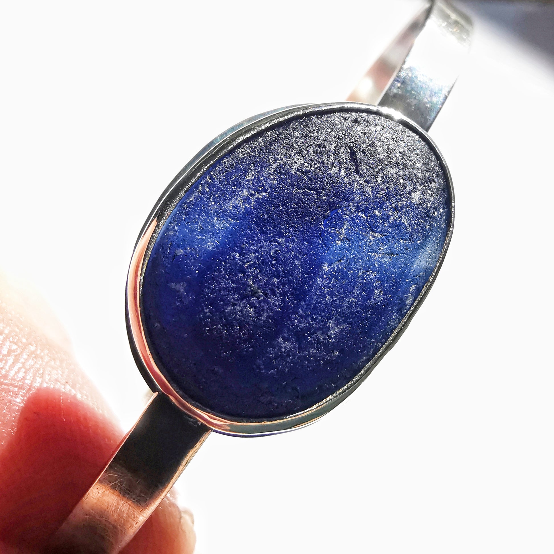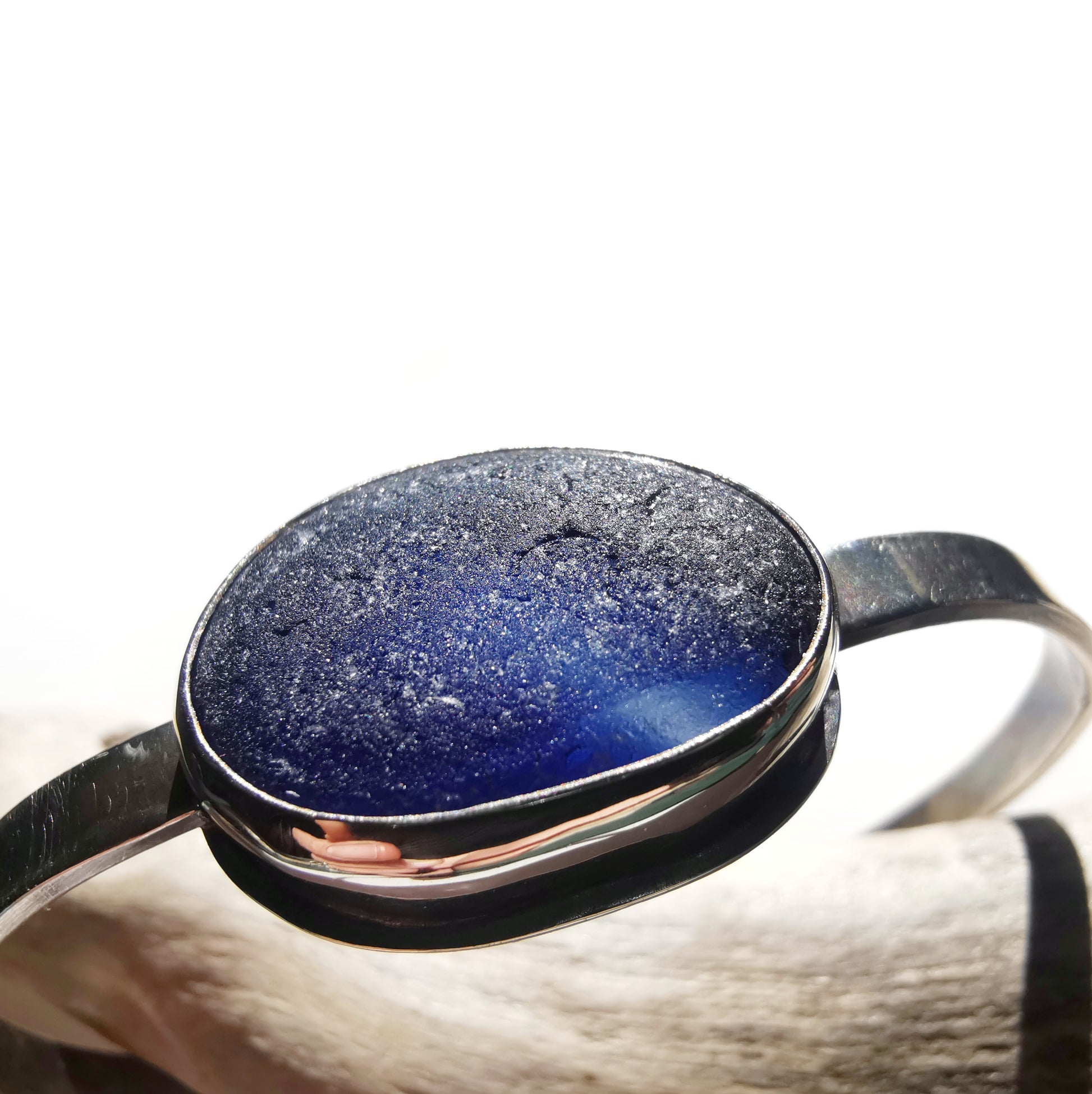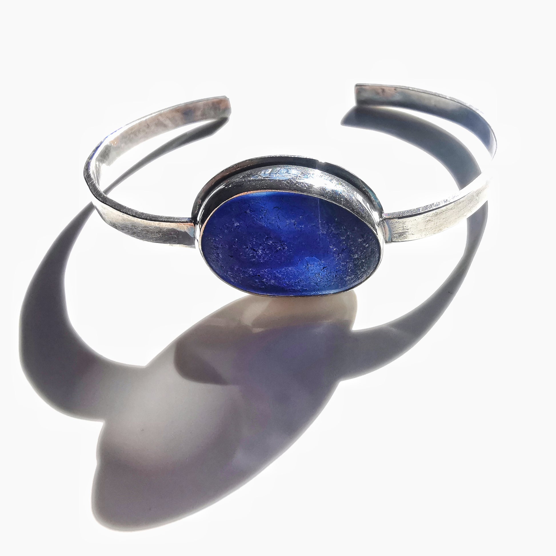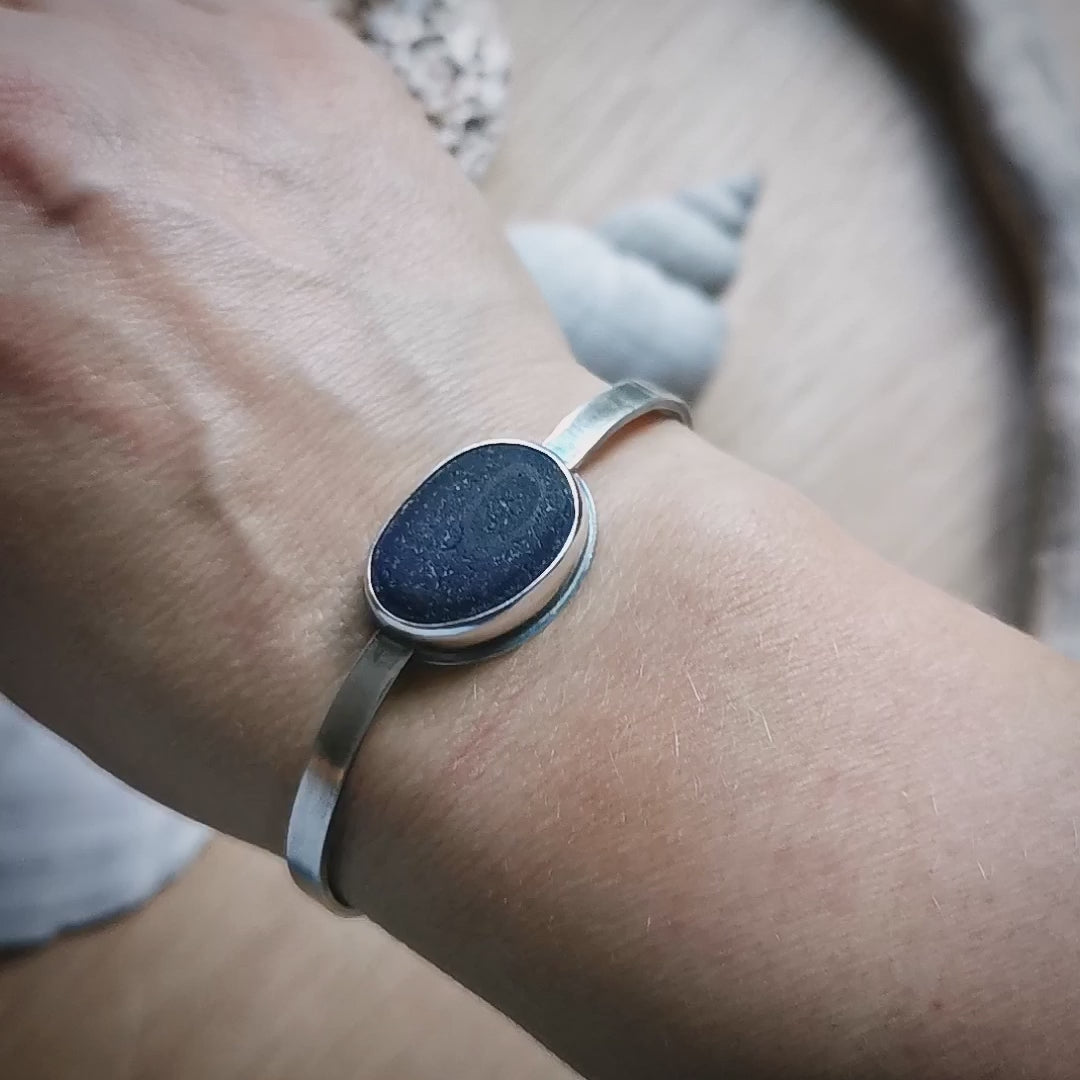 Seaham blue multi sea glass & sterling silver cuff bracelet.
