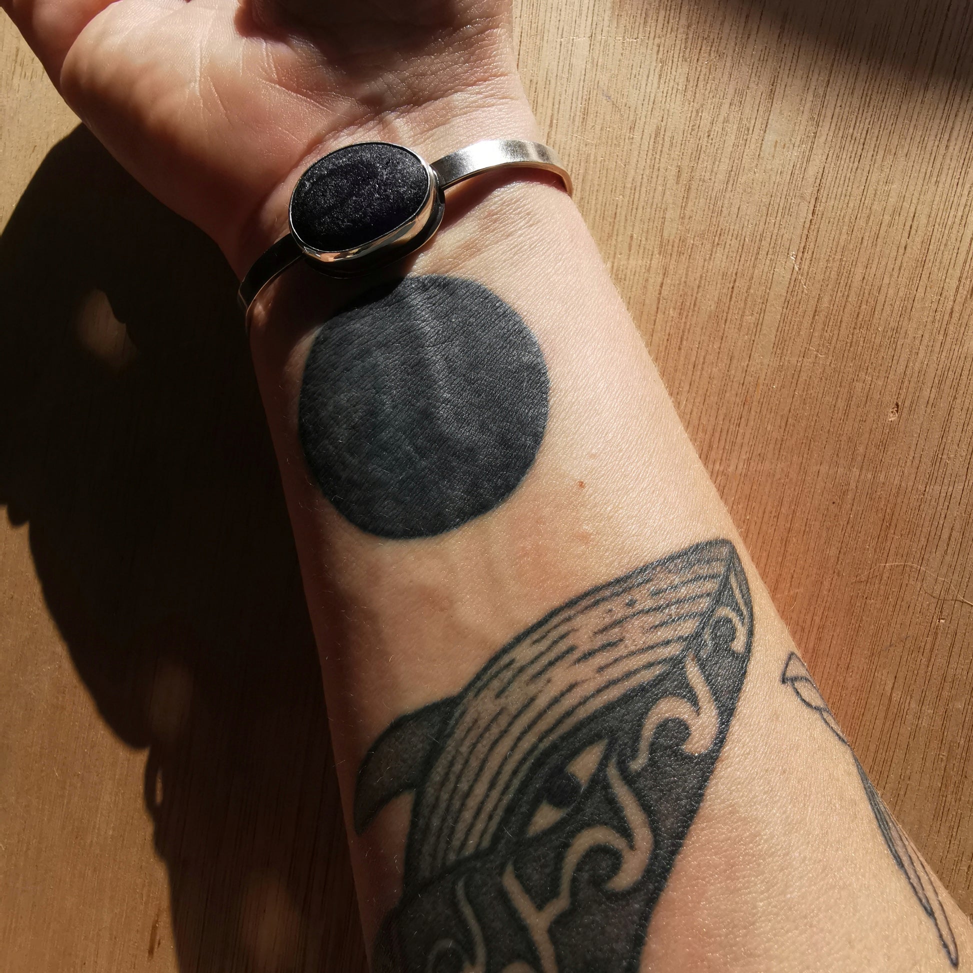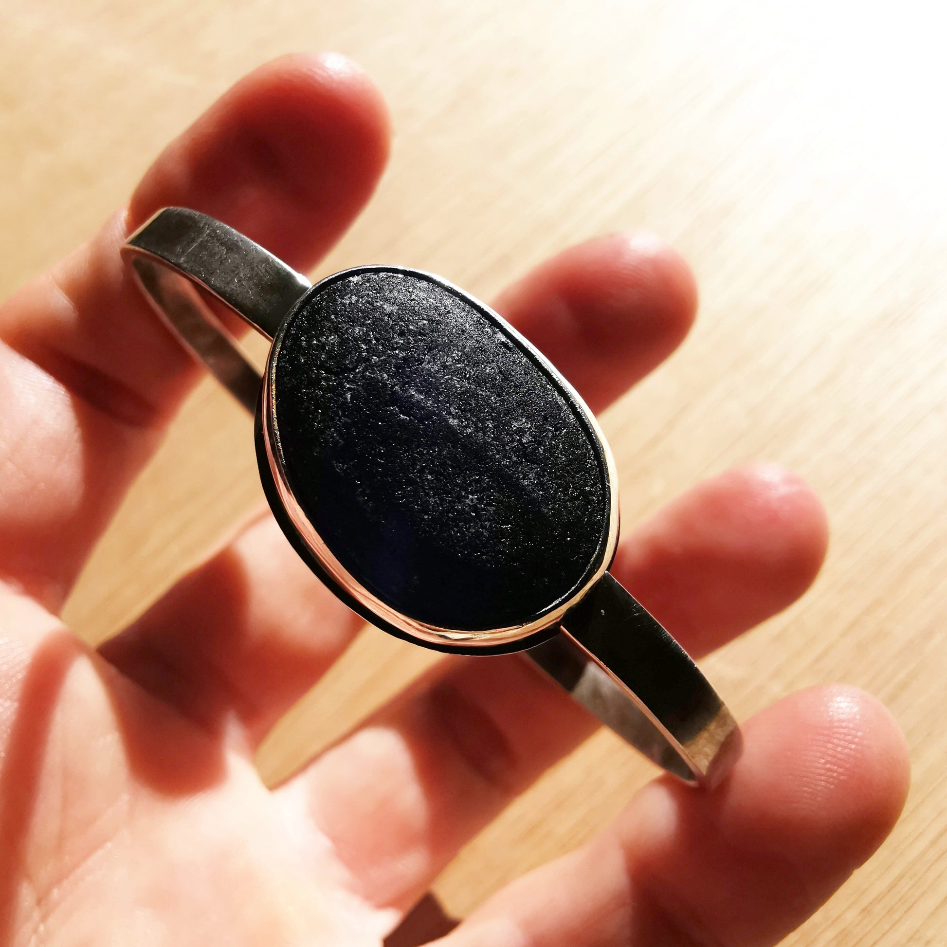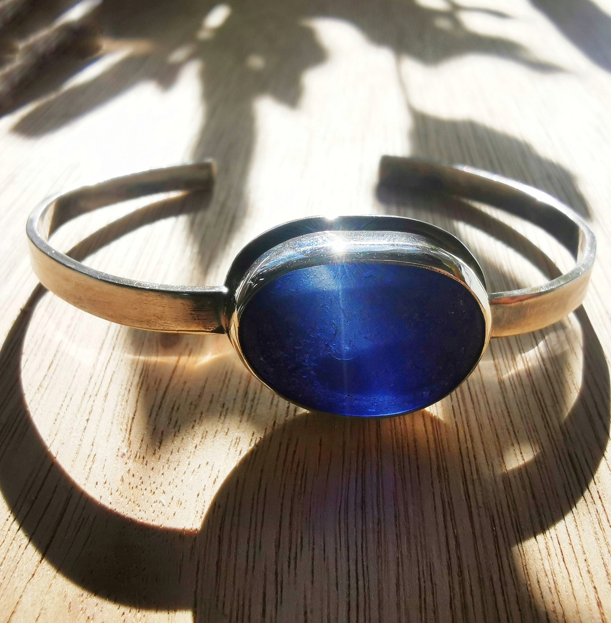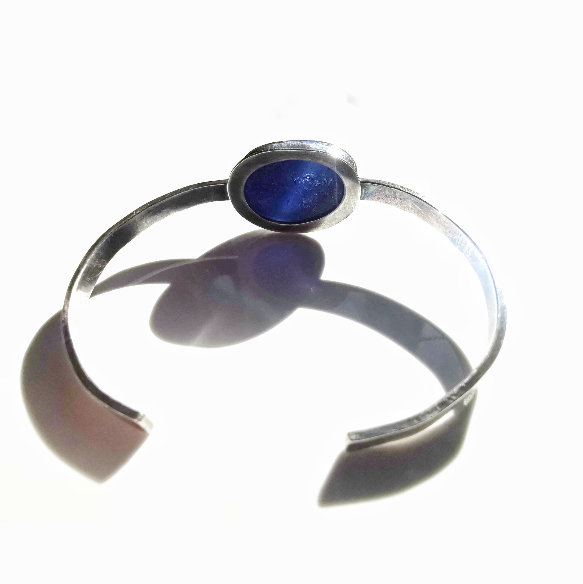 Seaham blue multi sea glass & sterling silver cuff bracelet.