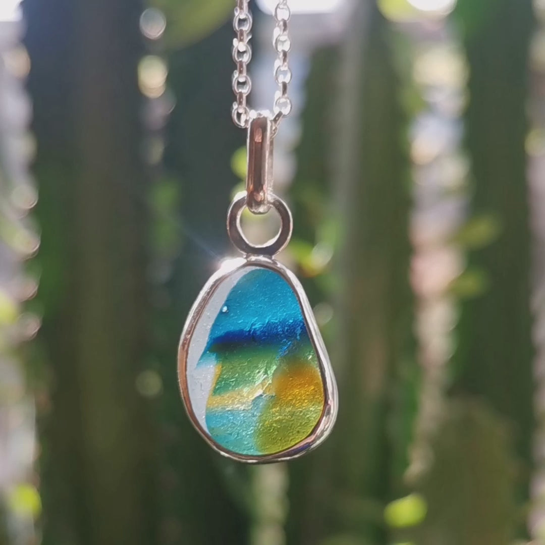 Seaham multi sea glass & sterling silver pendant.
