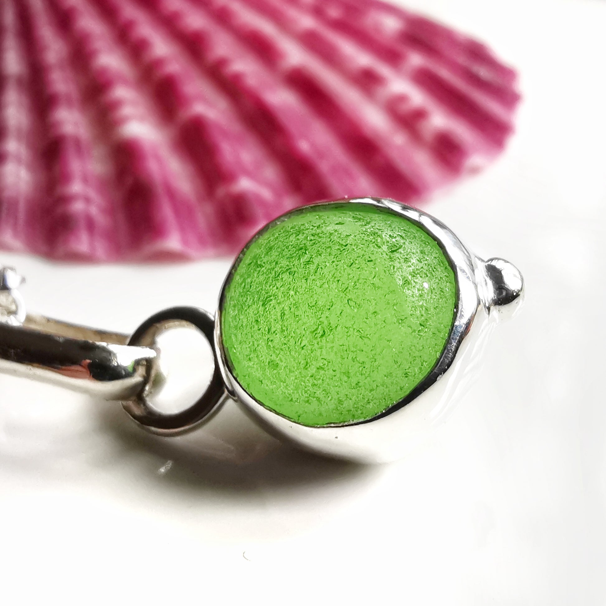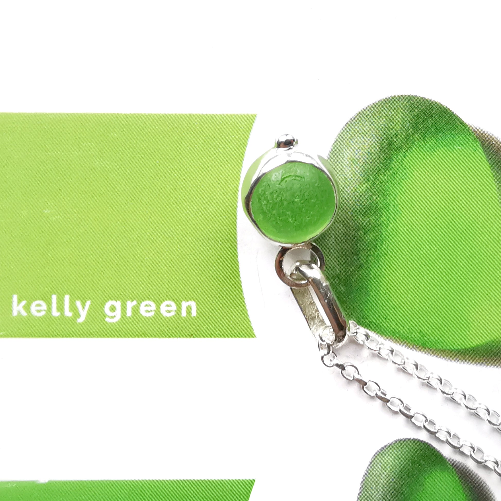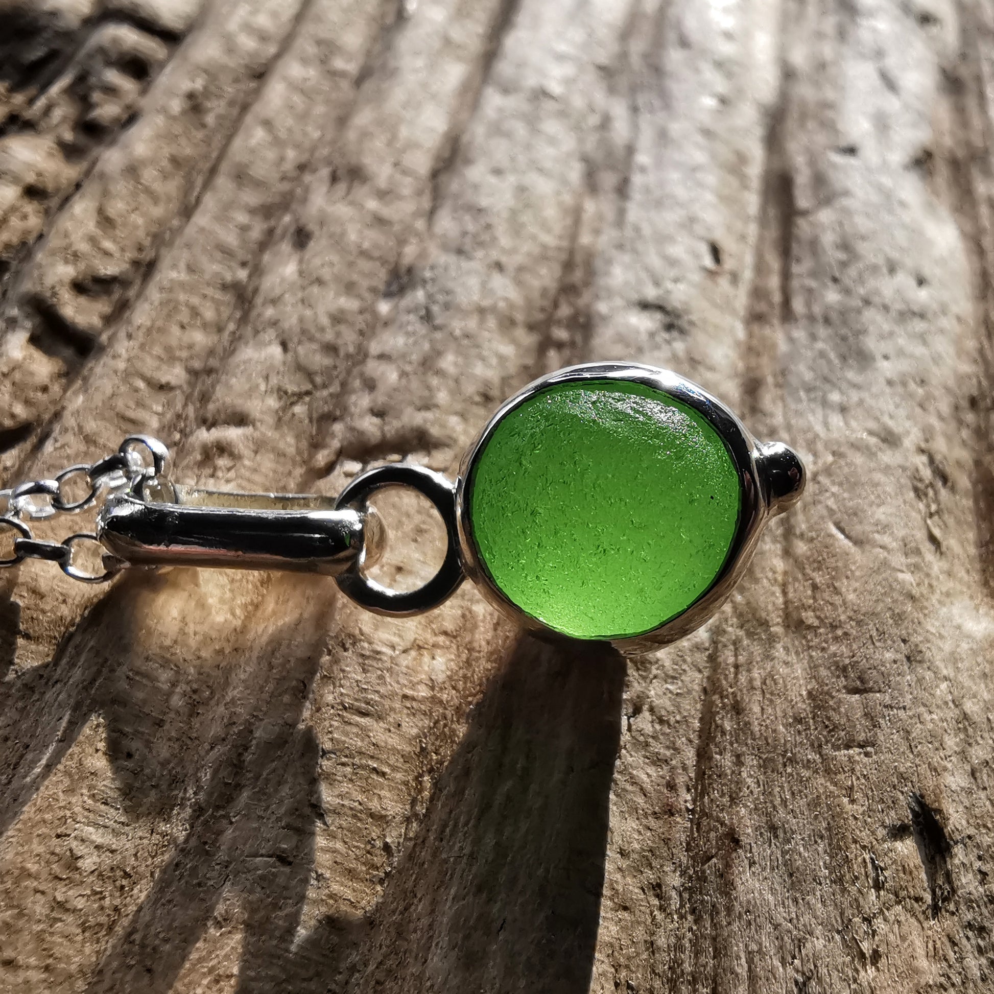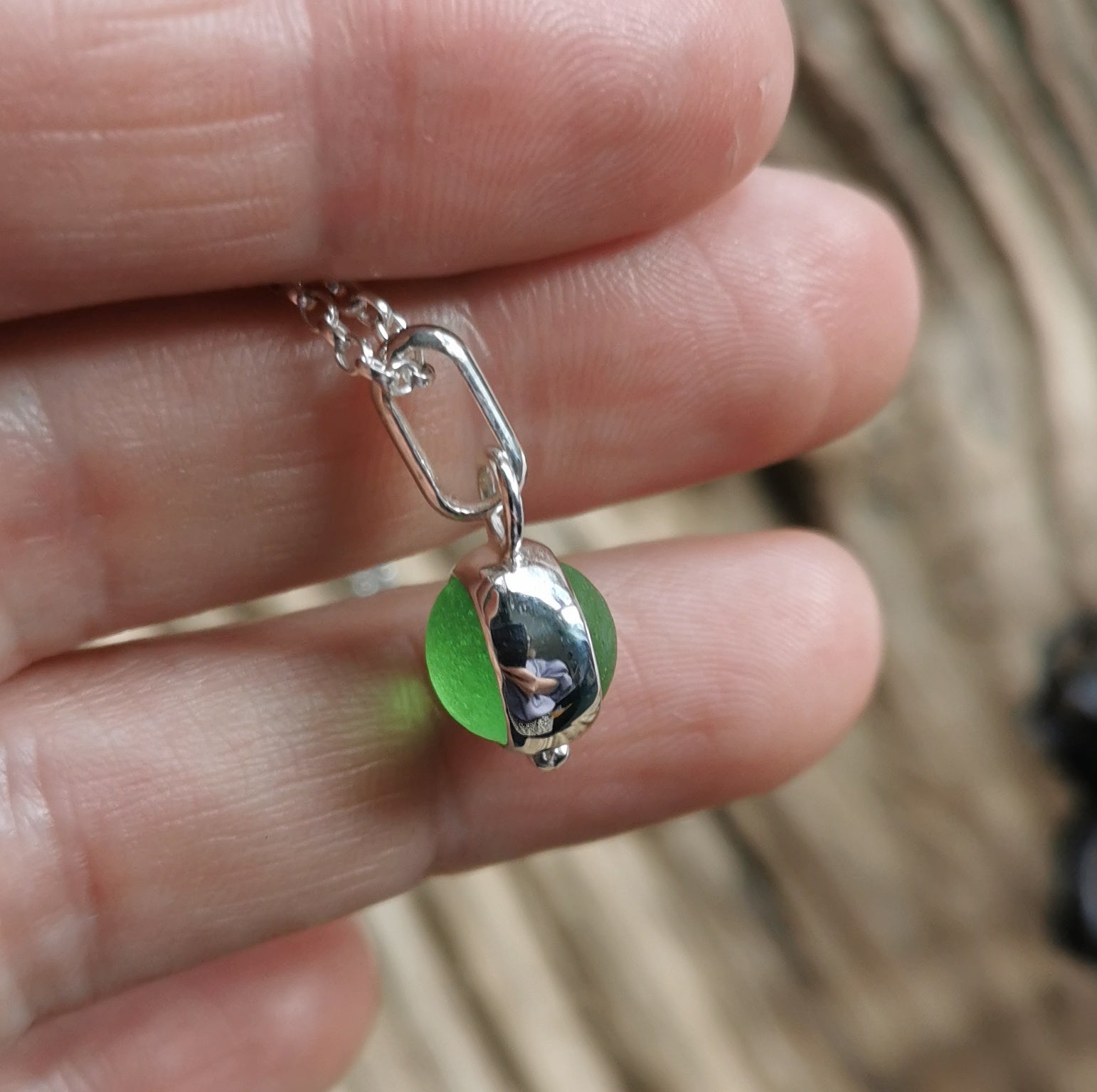 Tiny Scottish green sea glass marble & sterling silver pendant.