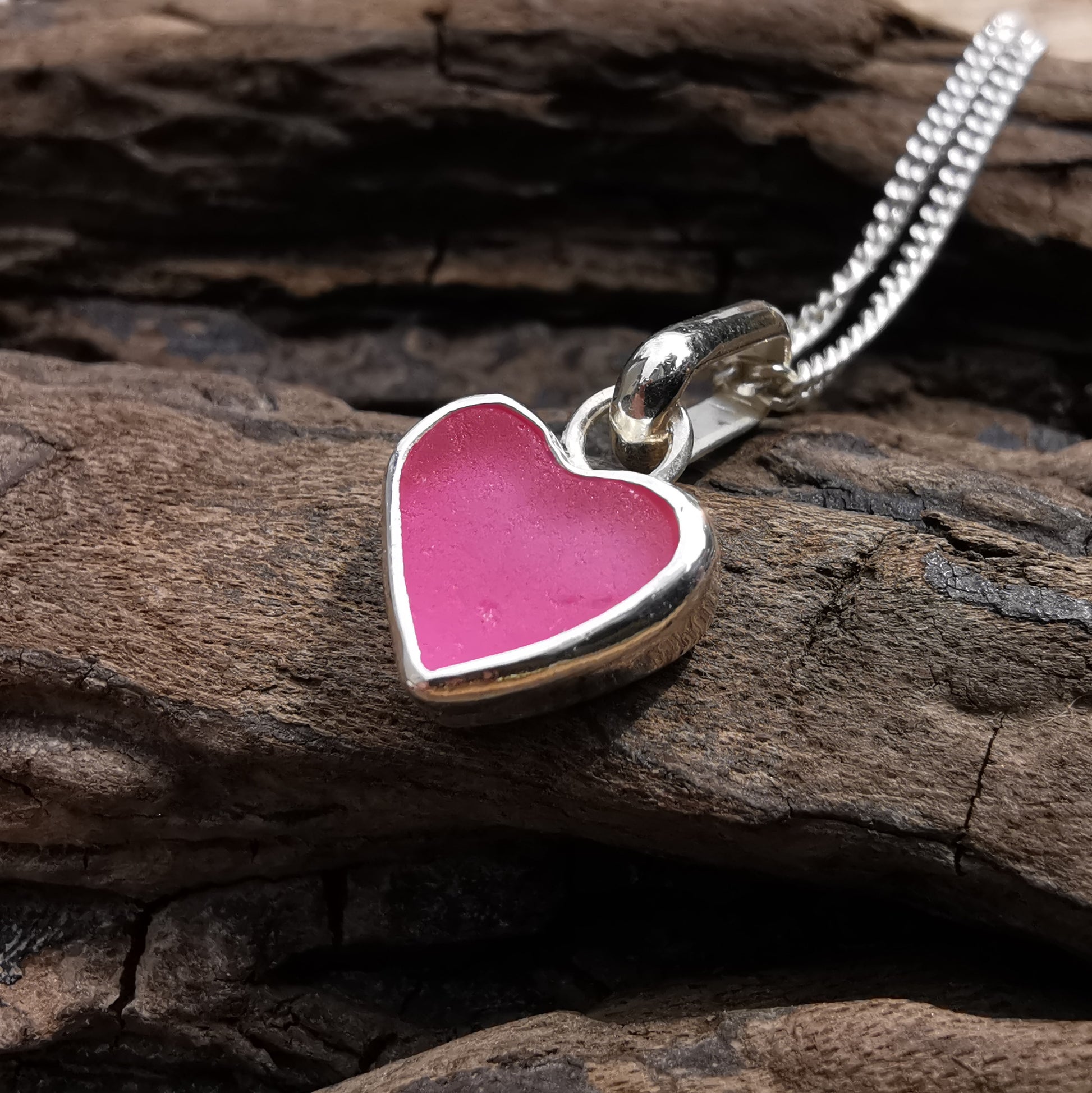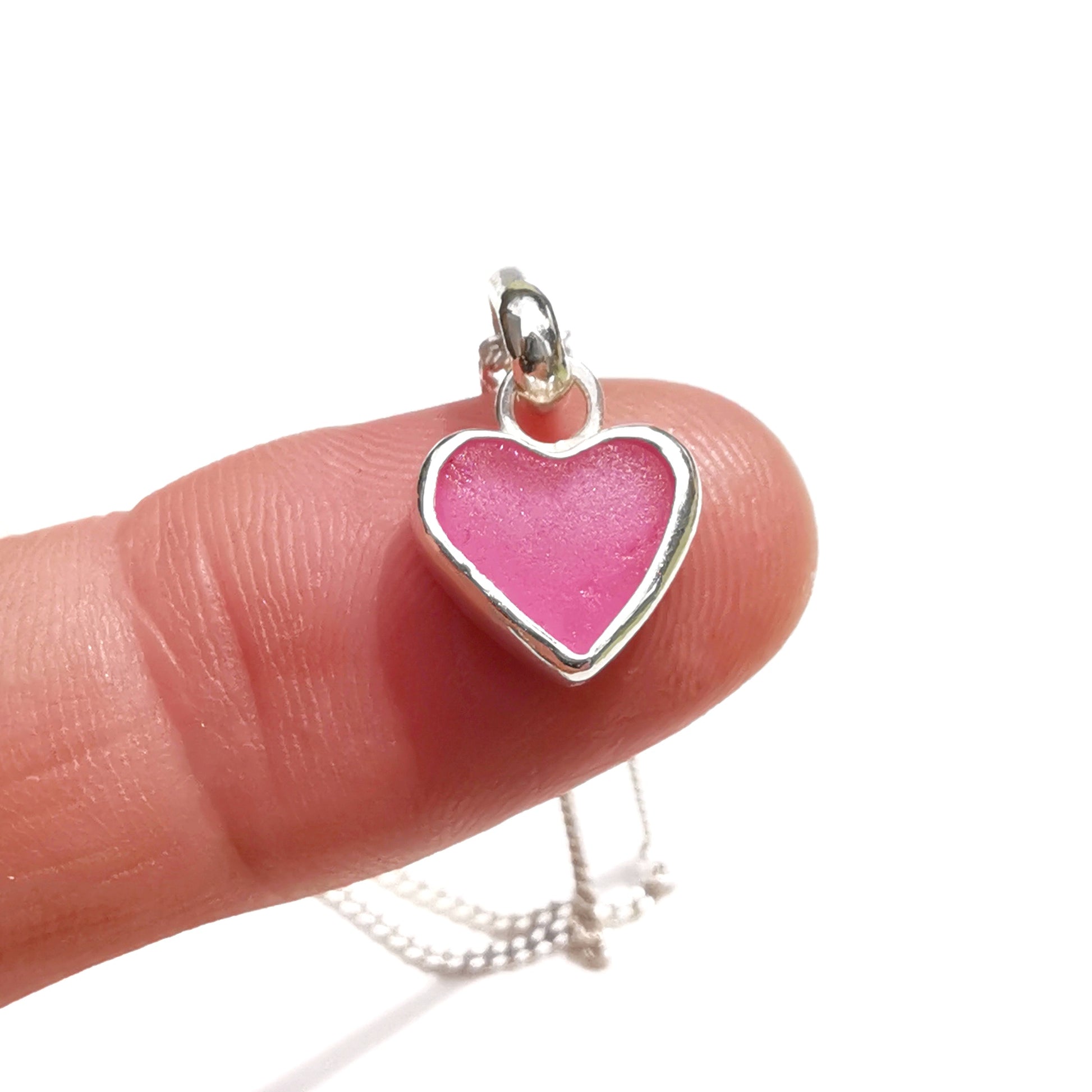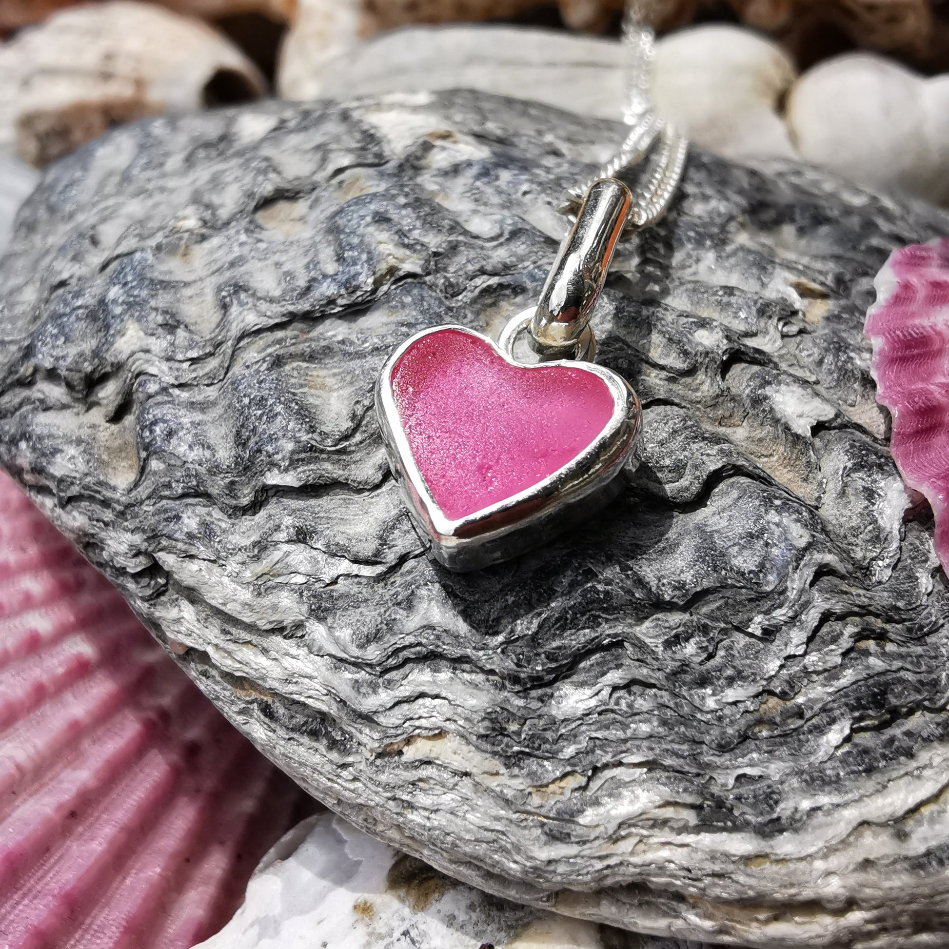 Tiny Scottish pink sea glass heart & sterling silver pendant.