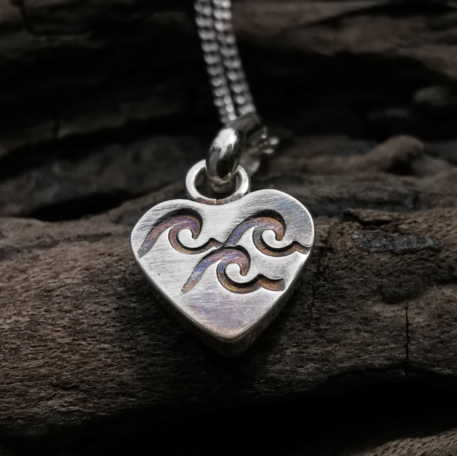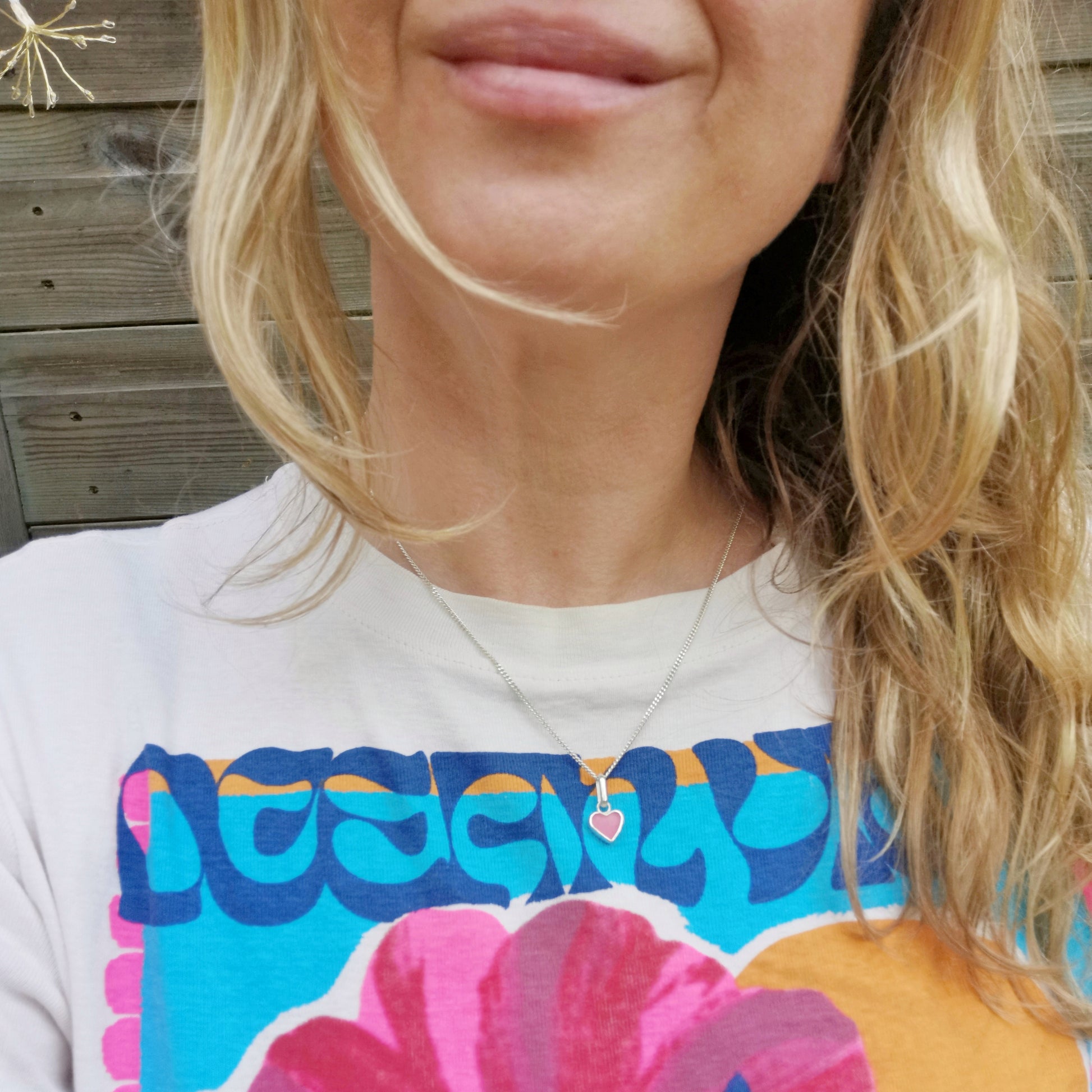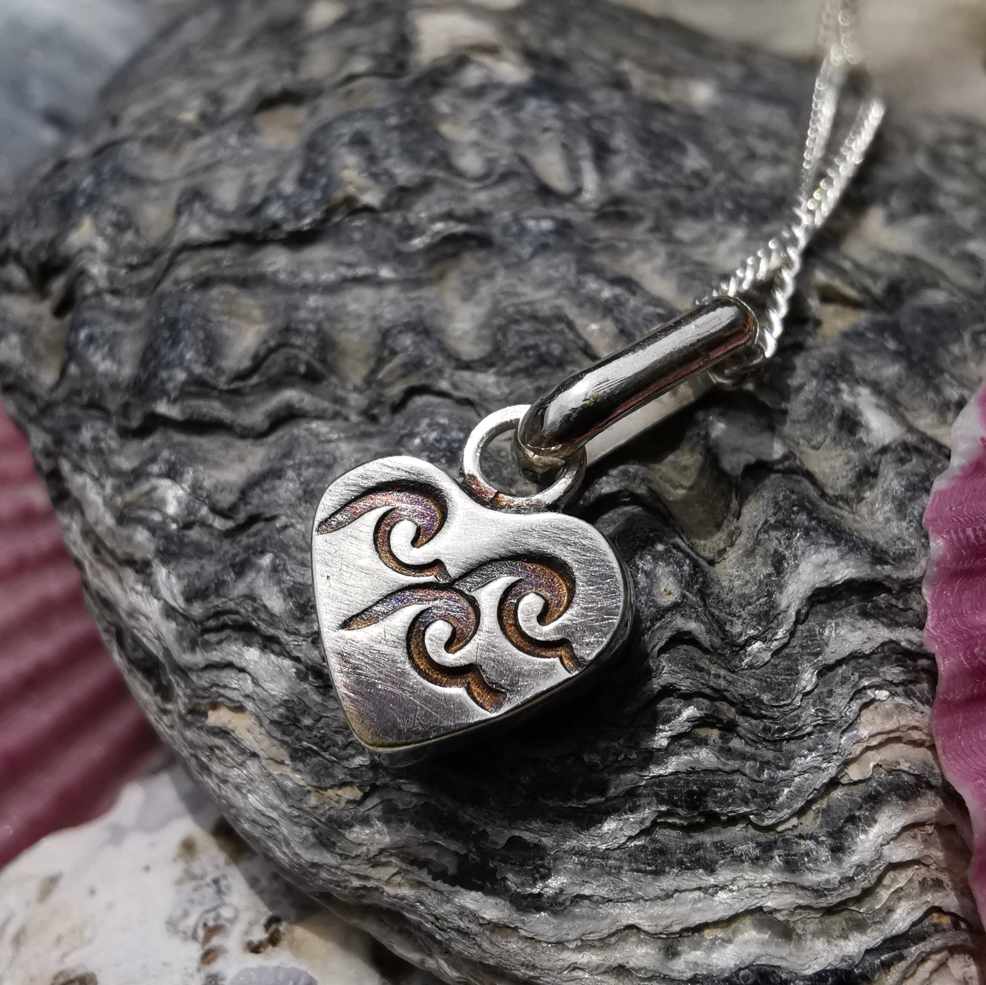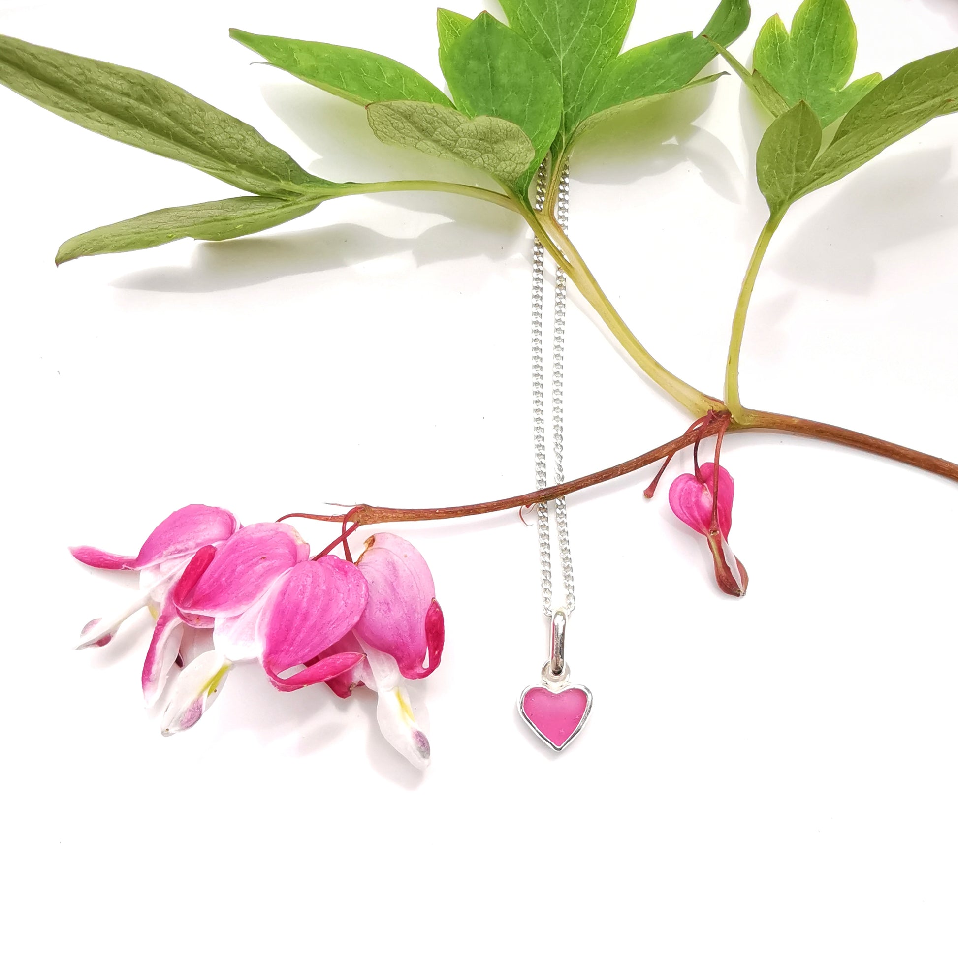 Tiny Scottish pink sea glass heart & sterling silver pendant.