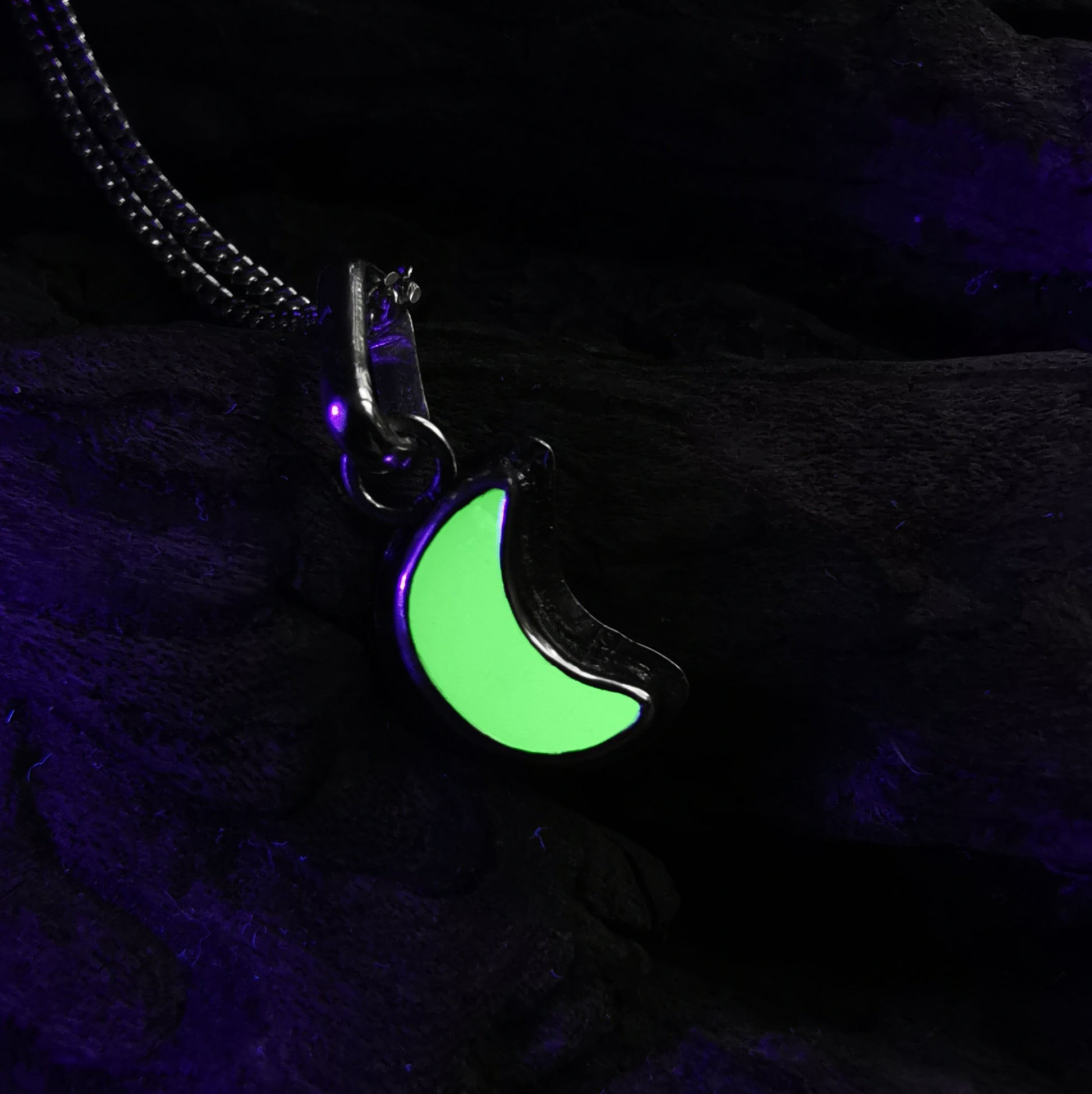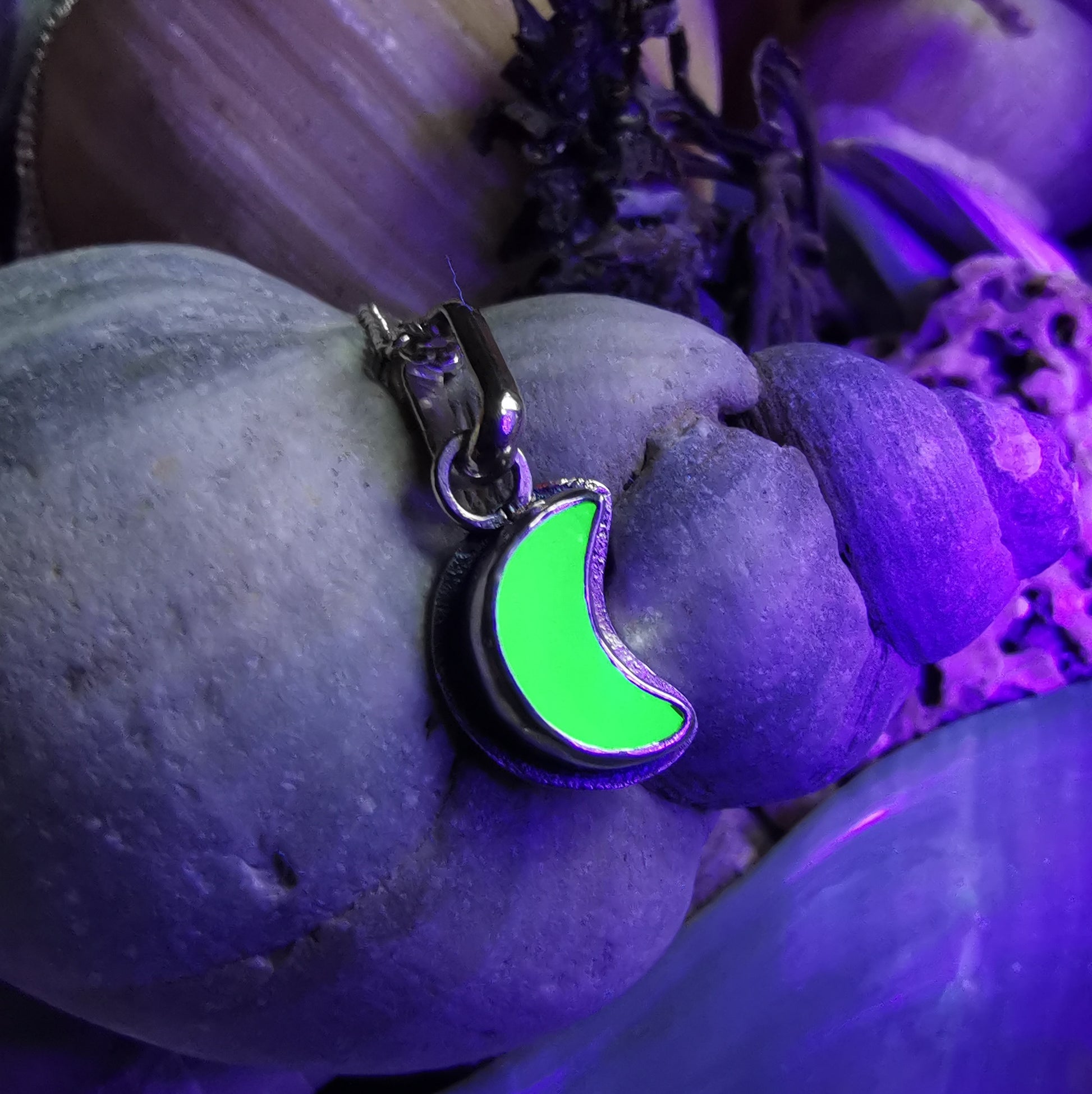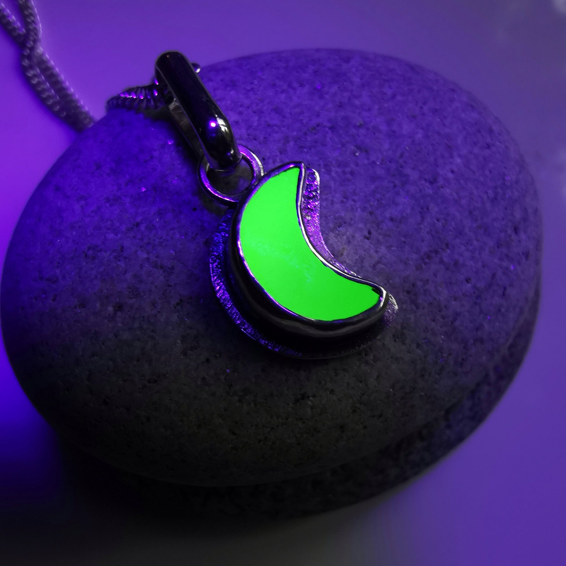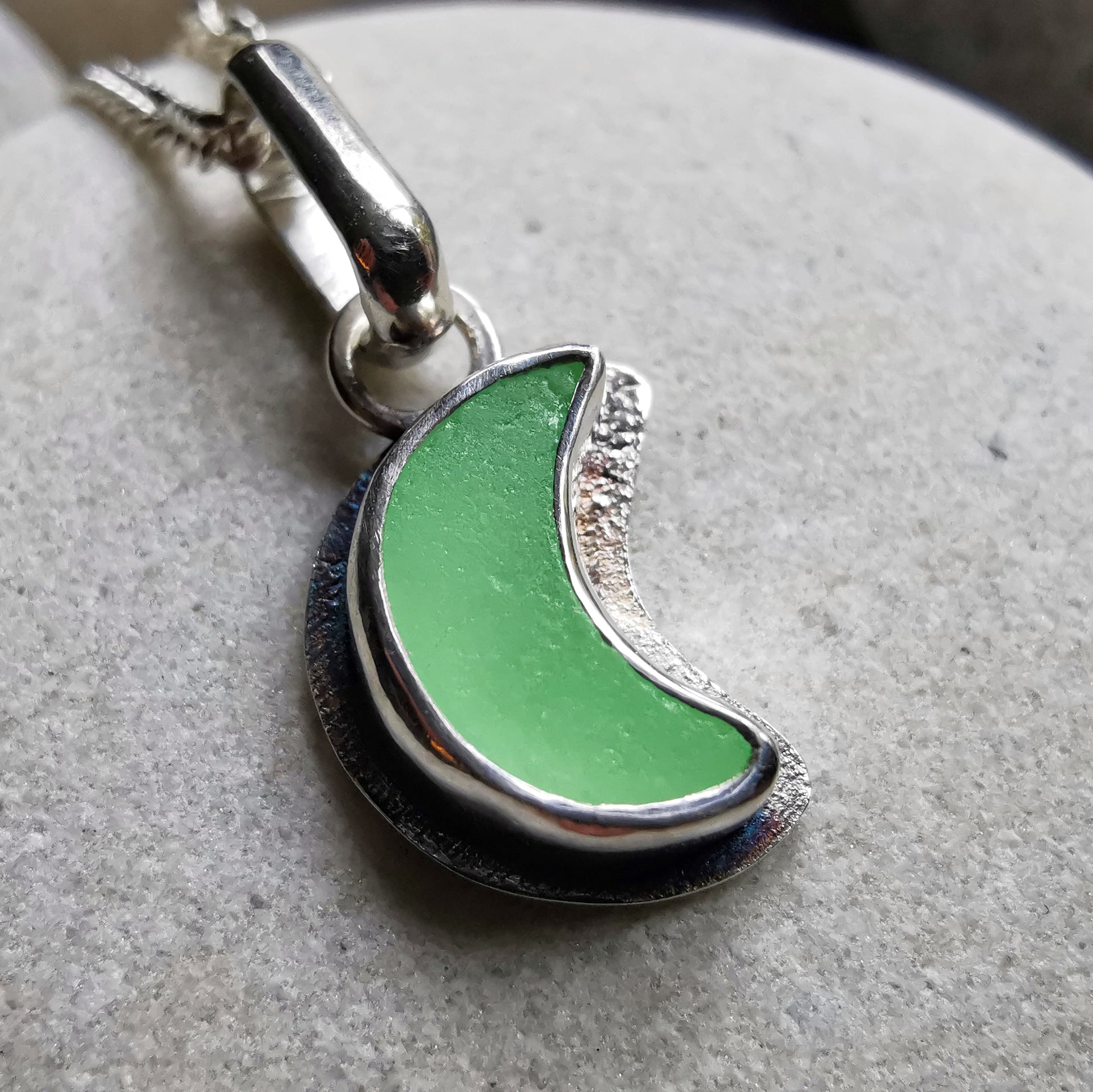 Reserved for Gatia.Tiny Scottish UV crescent moon sea glass & sterling silver pendant.
