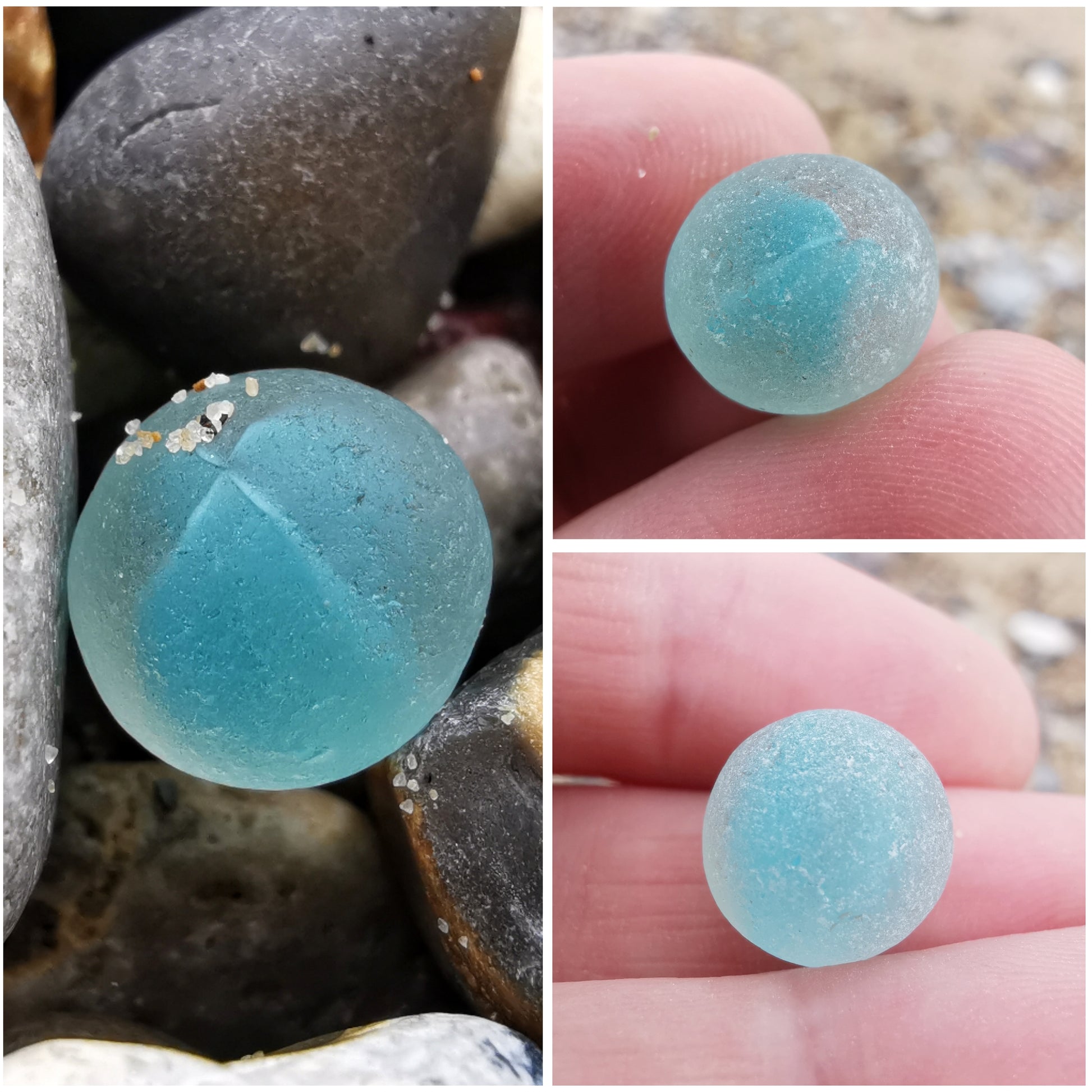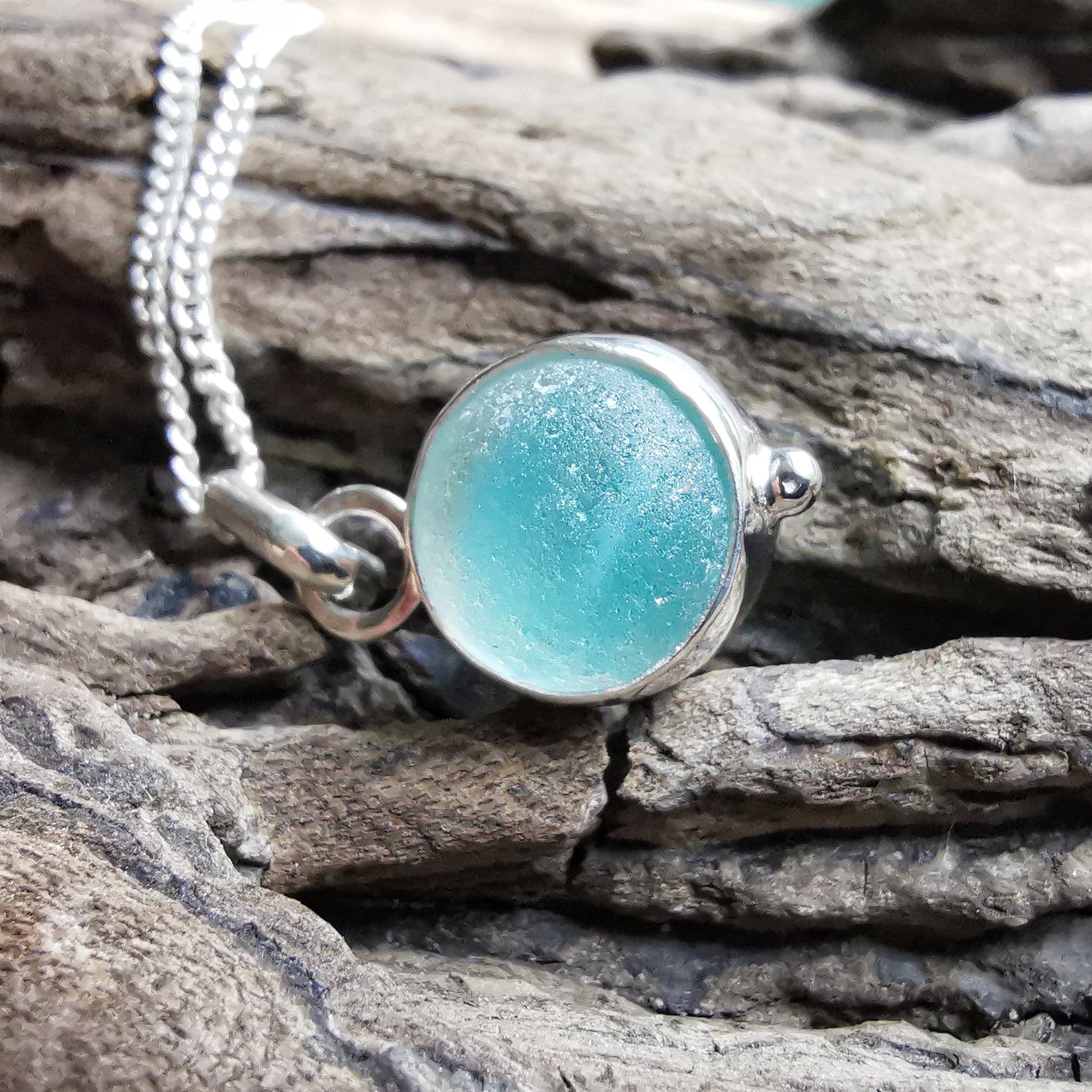 One of a kind pendant composed with genuine frosted tiny blue sea glass marble found by me in April 2024 in Seaham. The marble is set in fine silver bezel, the chain is sterling silver. The marble can spin in the bezel, this is normal and it is not a fault, marble is secure and won't fall of the bezel.